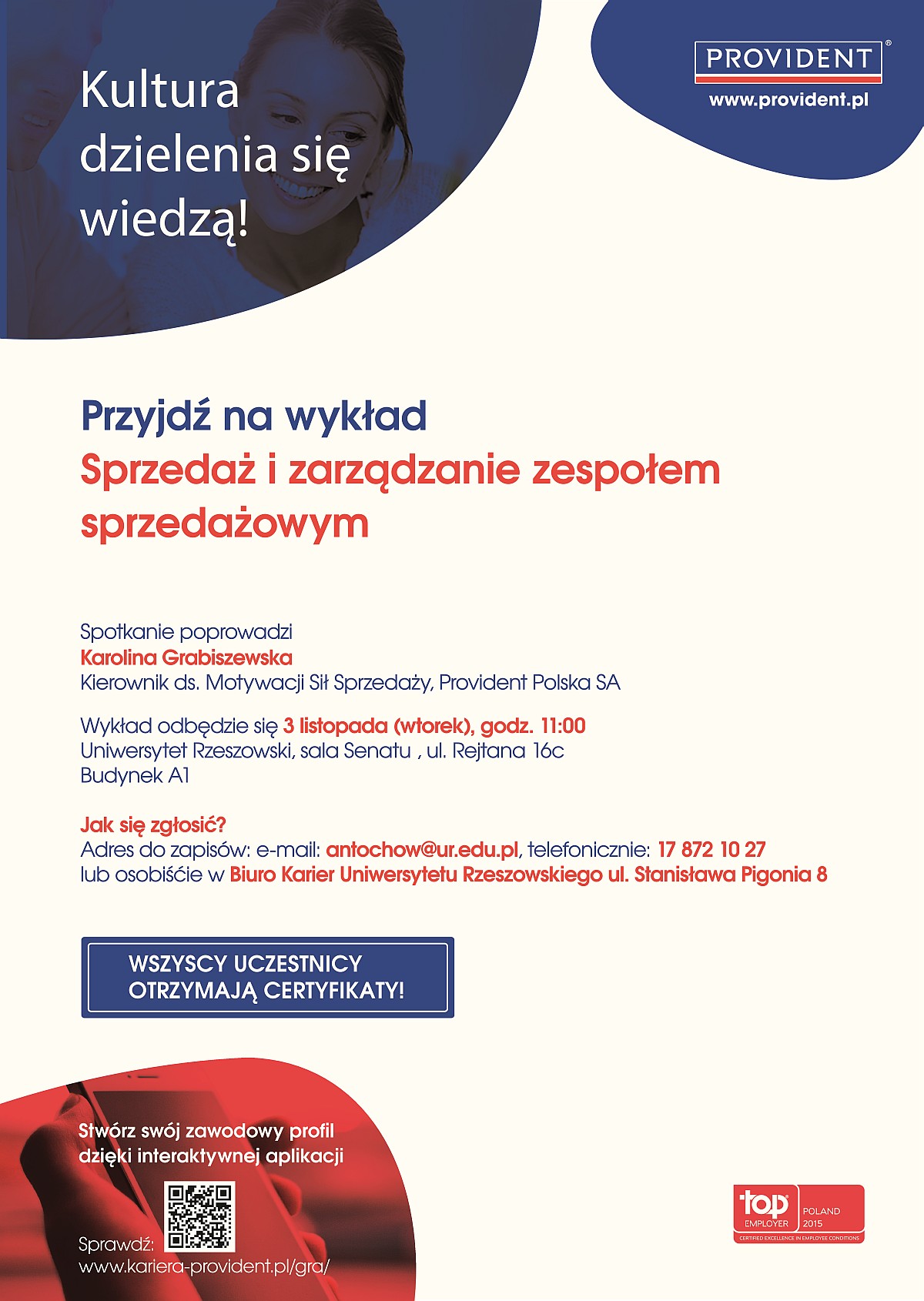 wysyłając zgłoszenie na e-maila: k.antochow@ur.edu.pl (prosimy o