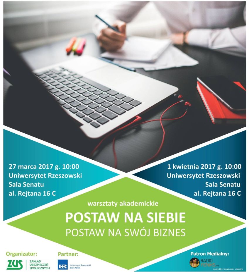 Zapraszamy studentów i absolwentów Uniwersytetu Rzeszowskiego na warsztaty „POSTAW NA SIEBIE - POSTAW NA SWÓJ BIZNES”