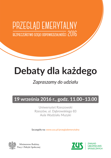 Rzeszowska debata o przyszłości systemu emerytalnego odbędzie się 19 września (poniedziałek) w godzinach od 11:00 do 13:00 w auli Wydziału Muzyki Uniwersytetu Rzeszowskiego, ul. Dąbrowskiego 83.
