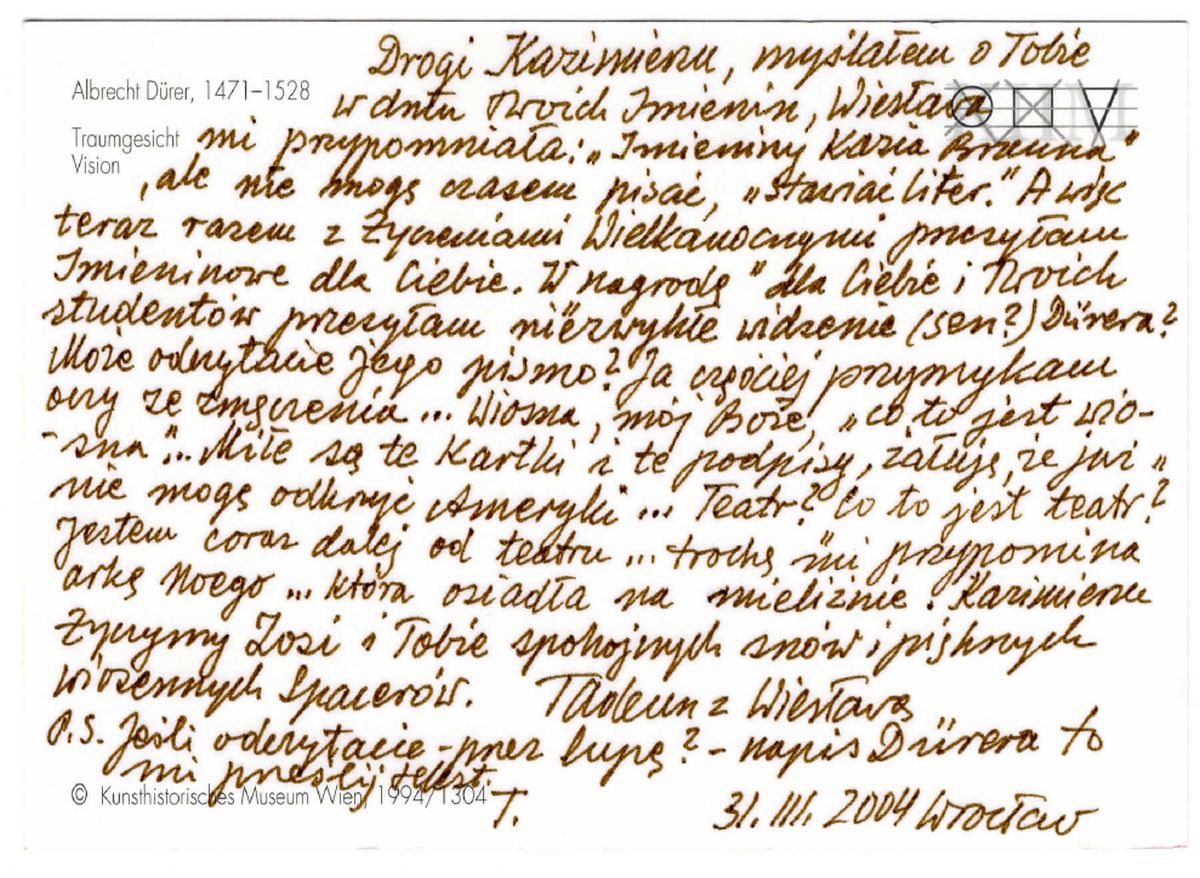 (Kartka pocztowa 2: Kartka pocztowa do Kazimierza Brauna (2004 rok))