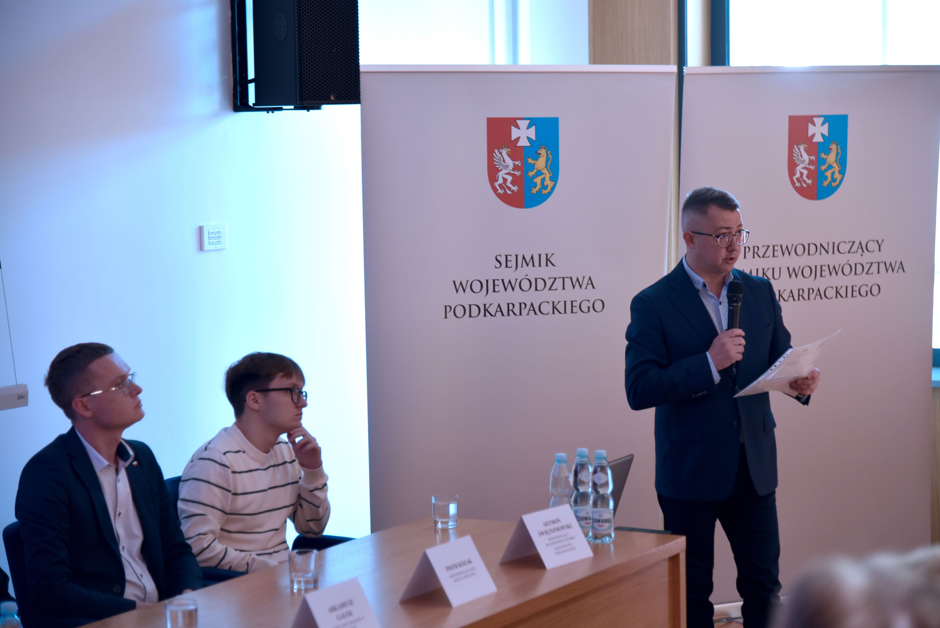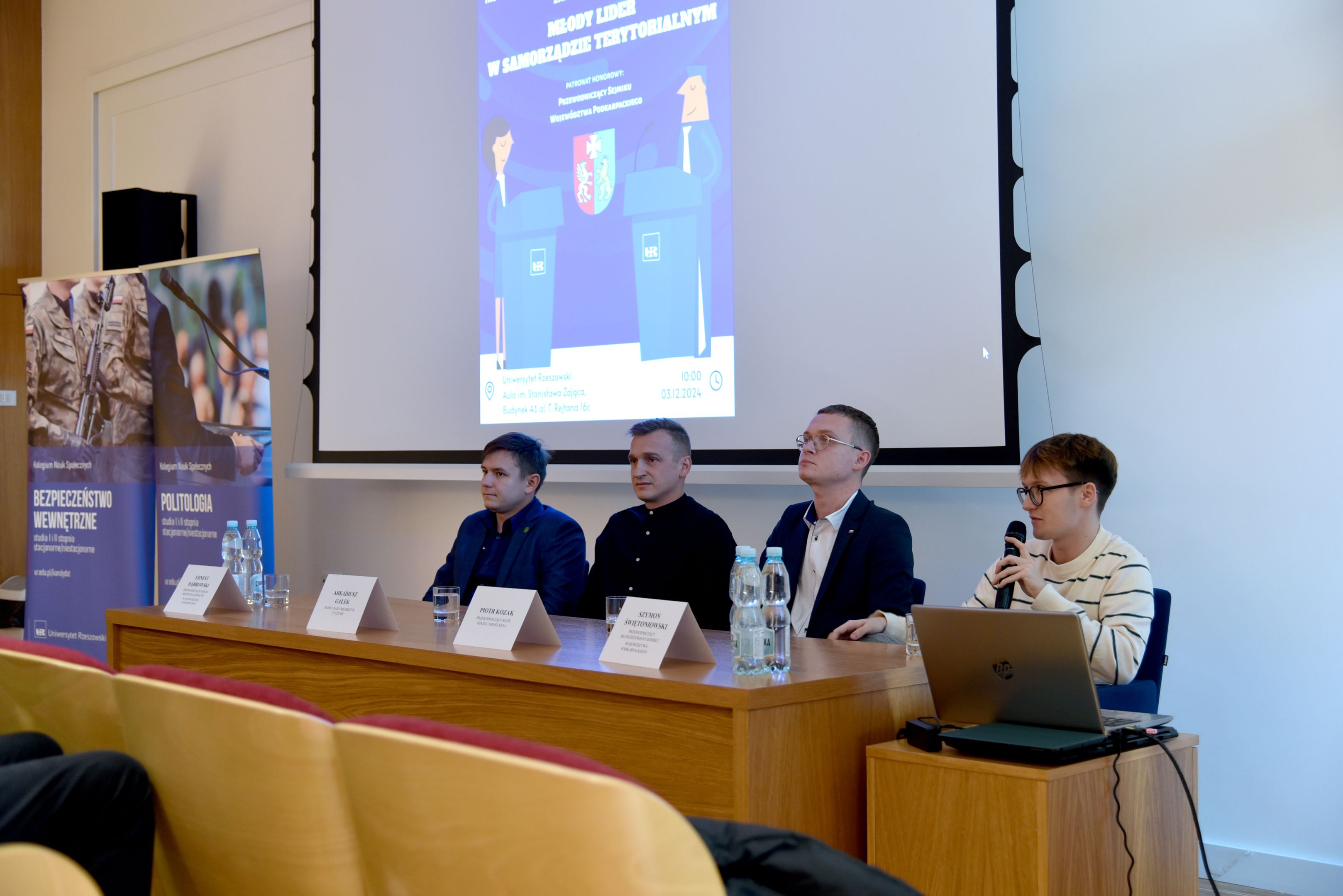 We wtorek 3 grudnia br. w Uniwersytecie Rzeszowskim odbyła się debata "Młody lider w samorządzie terytorialnym". Jej uczestnikami byli młodzi radni różnych szczebli samorządu terytorialnego, a także przedstawiciele organizacji młodzieżowych partii politycznych: Arkadiusz Gałek, radny Rady Miejskiej w Tyczynie; Piotr Kozak, przewodniczący Rady Miasta Jarosławia; Szymon Świętoniowski, przewodniczący Młodzieżowego Sejmiku Województwa Podkarpackiego oraz Ernest Dąbrowski, przewodniczący Forum Młodych Ludowców w województwie podkarpackim.