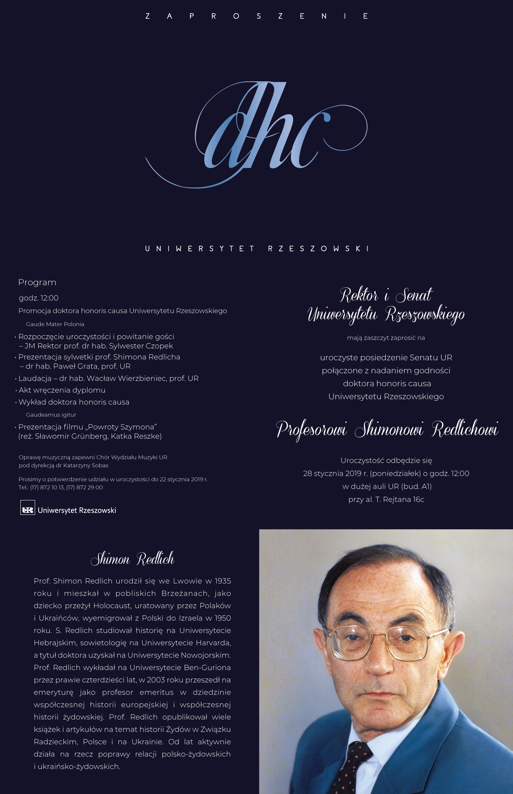 Doktorat Honoris Causa Uniwersytetu Rzeszowskiego dla prof. Shimona Redlicha (28/01/2019)