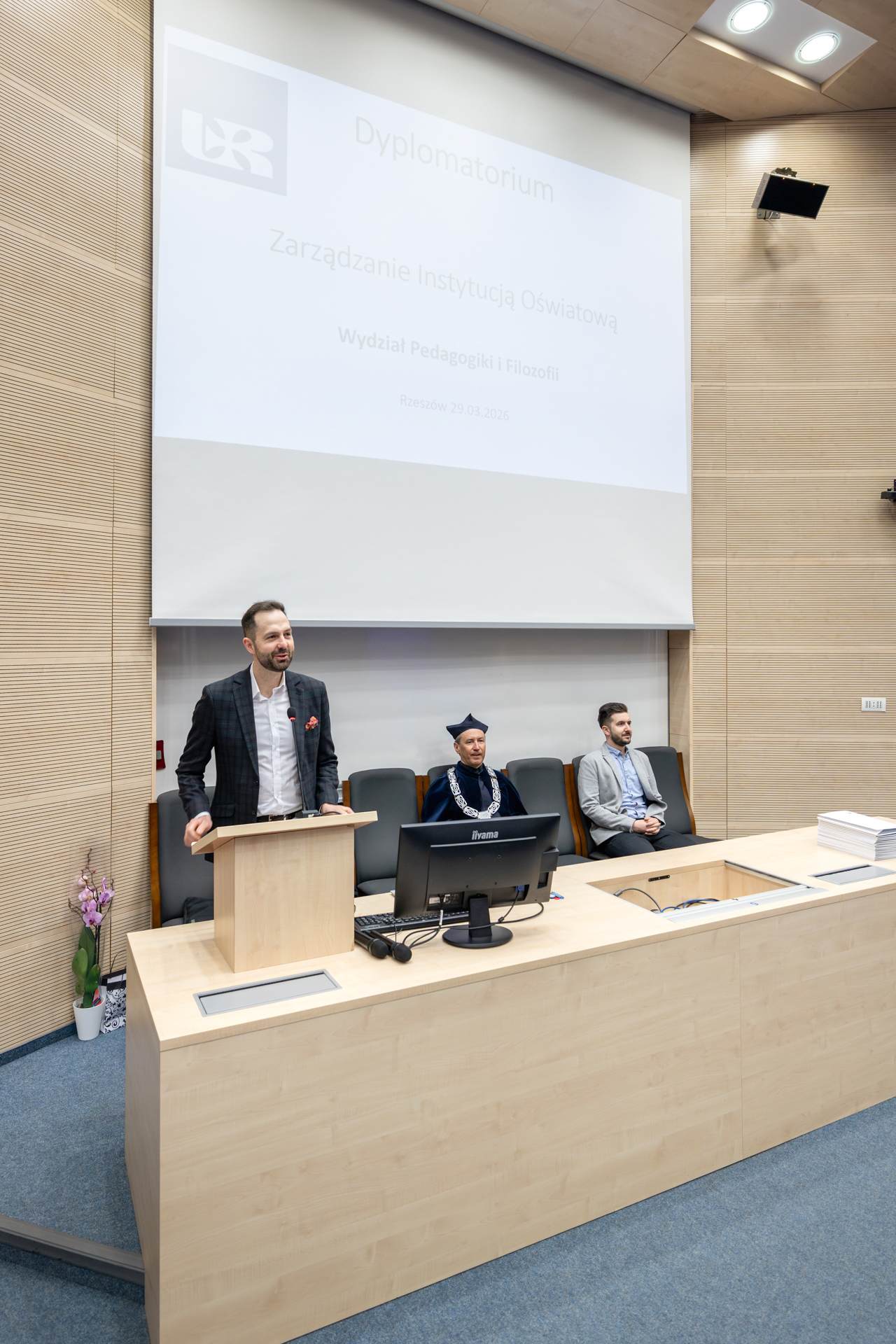 29 marca 2026 roku odbyło się uroczyste zakończenie studiów podyplomowych „Zarządzanie instytucją oświatową”, prowadzonych przez Wydział Pedagogiki i Filozofii Uniwersytetu Rzeszowskiego. Wydarzenie stanowiło ważny moment podsumowujący okres intensywnej nauki, zdobywania nowych doświadczeń oraz rozwijania kompetencji zawodowych przez słuchaczy.