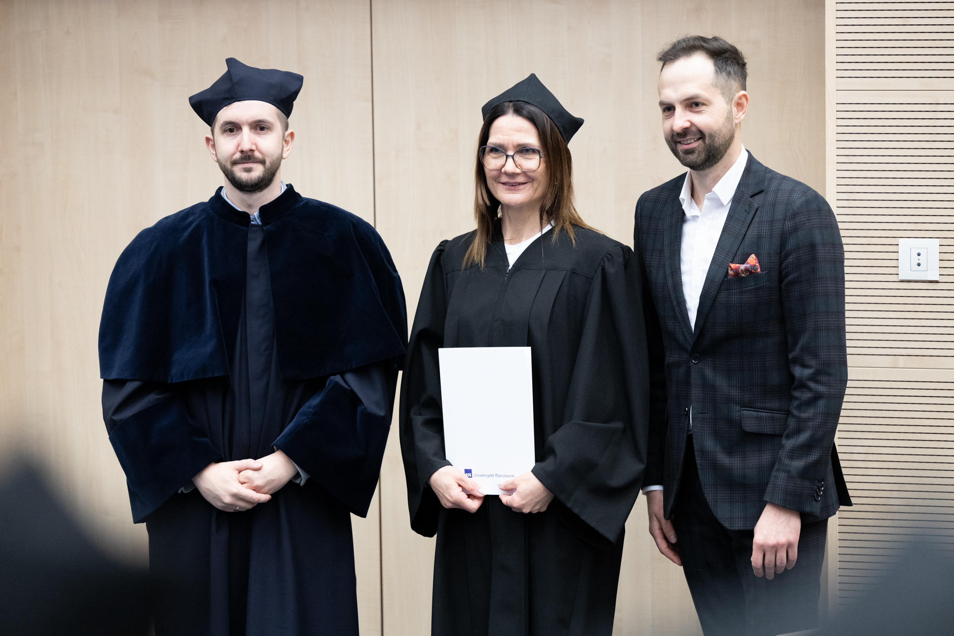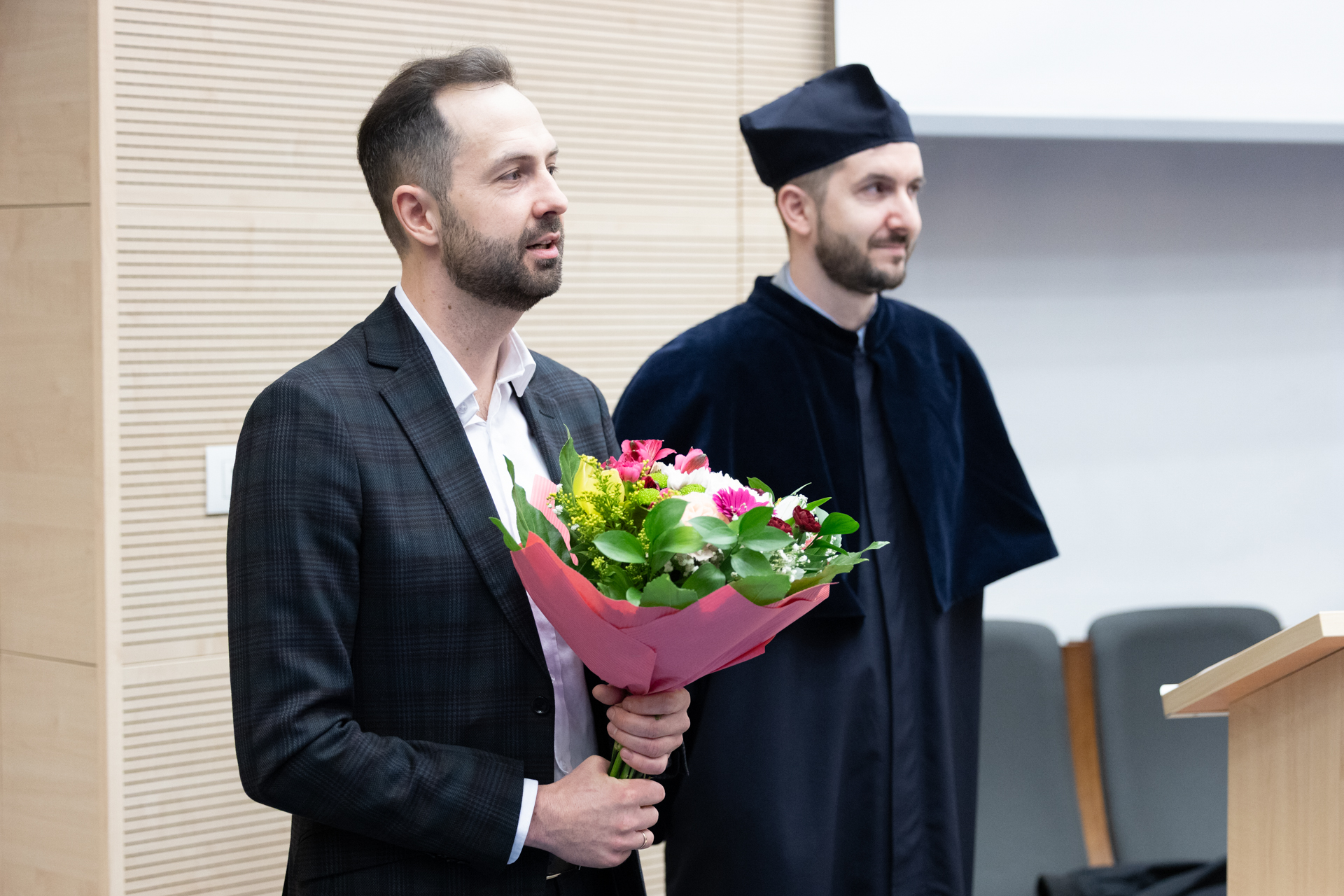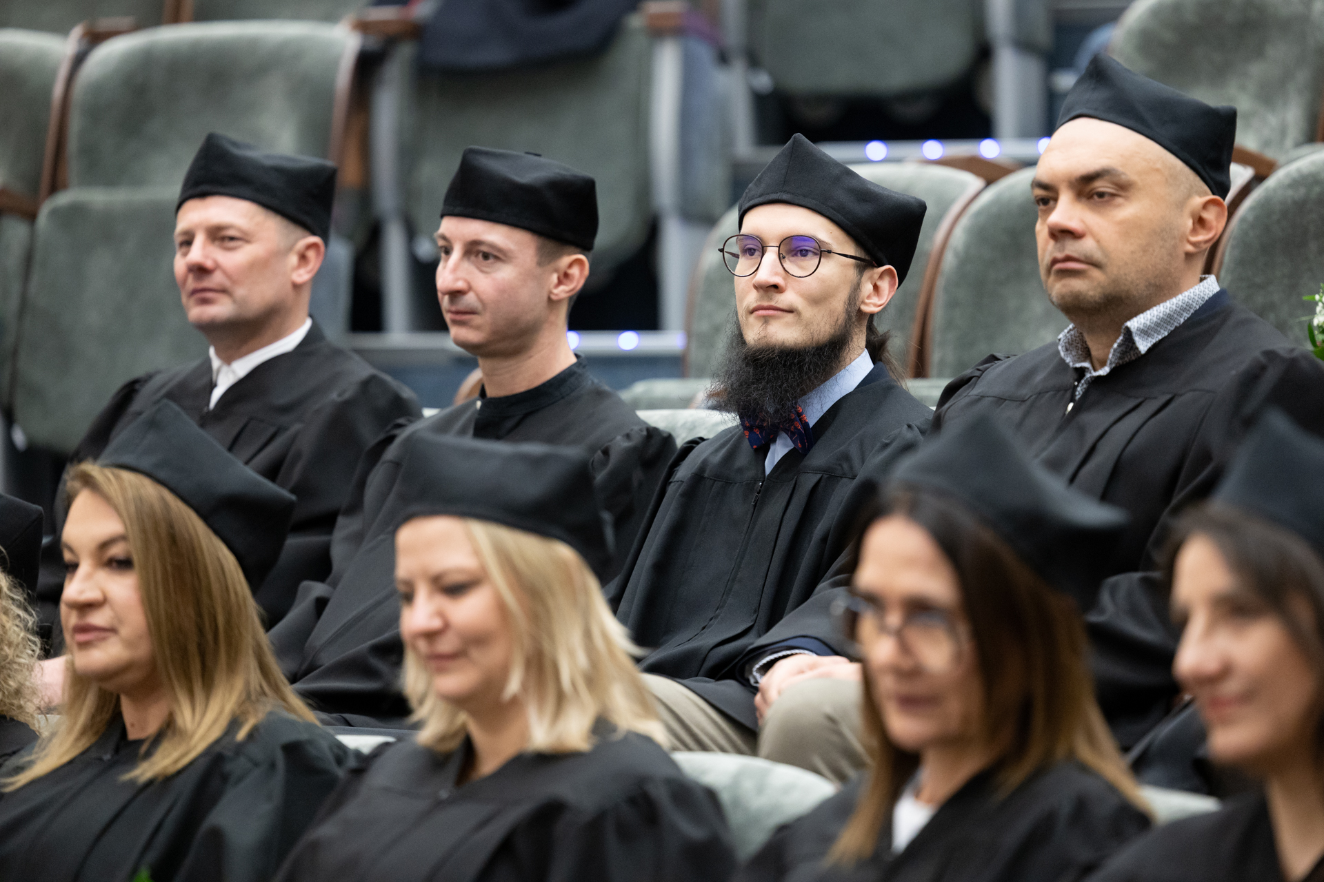 Istotnym punktem uroczystości był wykład dyplomatoryjny dr. Tomasza Warchoła pt. „Sztuczna inteligencja w edukacji — między wsparciem a transformacją uczenia się”. Wystąpienie stanowiło cenne odniesienie do współczesnych wyzwań i możliwości związanych z wykorzystaniem sztucznej inteligencji zarówno w procesie dydaktycznym, jak i w zarządzaniu instytucjami oświatowymi.