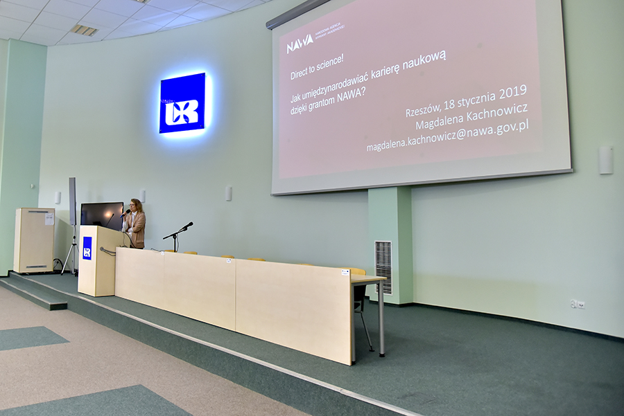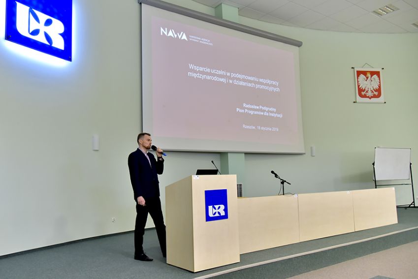 18 stycznia br. w Uniwersytecie Rzeszowskim odbyła się konferencja zorganizowana przez UR oraz NAWA pt. „Dzień z Narodową Agencją Wymiany Akademickiej w Rzeszowie”. Celem konferencji było poinformowanie środowiska akademickiego o możliwościach wyjazdów zagranicznych w ramach oferty stypendialnej NAWA. Ponadto zaprezentowano programy dla instytucji oraz możliwości promocji zagranicznej uczelni. W konferencji uczestniczyli m.in. Dyrektor NAWA P. Łukasz Wojdyga, J.M. Rektor Sylwester Czopek, Prorektorzy podkarpackich uczelni oraz pracownicy działów współpracy zagranicznej i nauczyciele akademiccy z Podkarpacia. Konferencja okazała się frekwencyjnym sukcesem w skali kraju uczestniczyło w niej 130 osób.