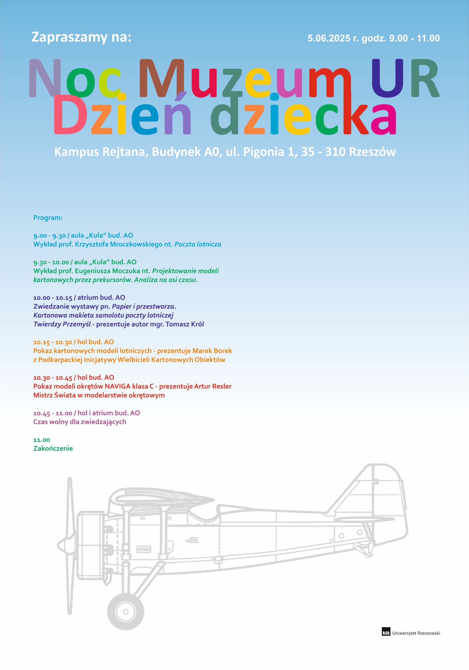 W czwartkowy poranek 5 czerwca 2025 r. w budynku AO Uniwersytetu Rzeszowskiego odbyło się wyjątkowe wydarzenie – Noc Muzeum UR połączona z Dniem Dziecka. Program obfitował w atrakcje zarówno dla młodszych, jak i starszych pasjonatów historii, modelarstwa oraz sztuki kartonowej.