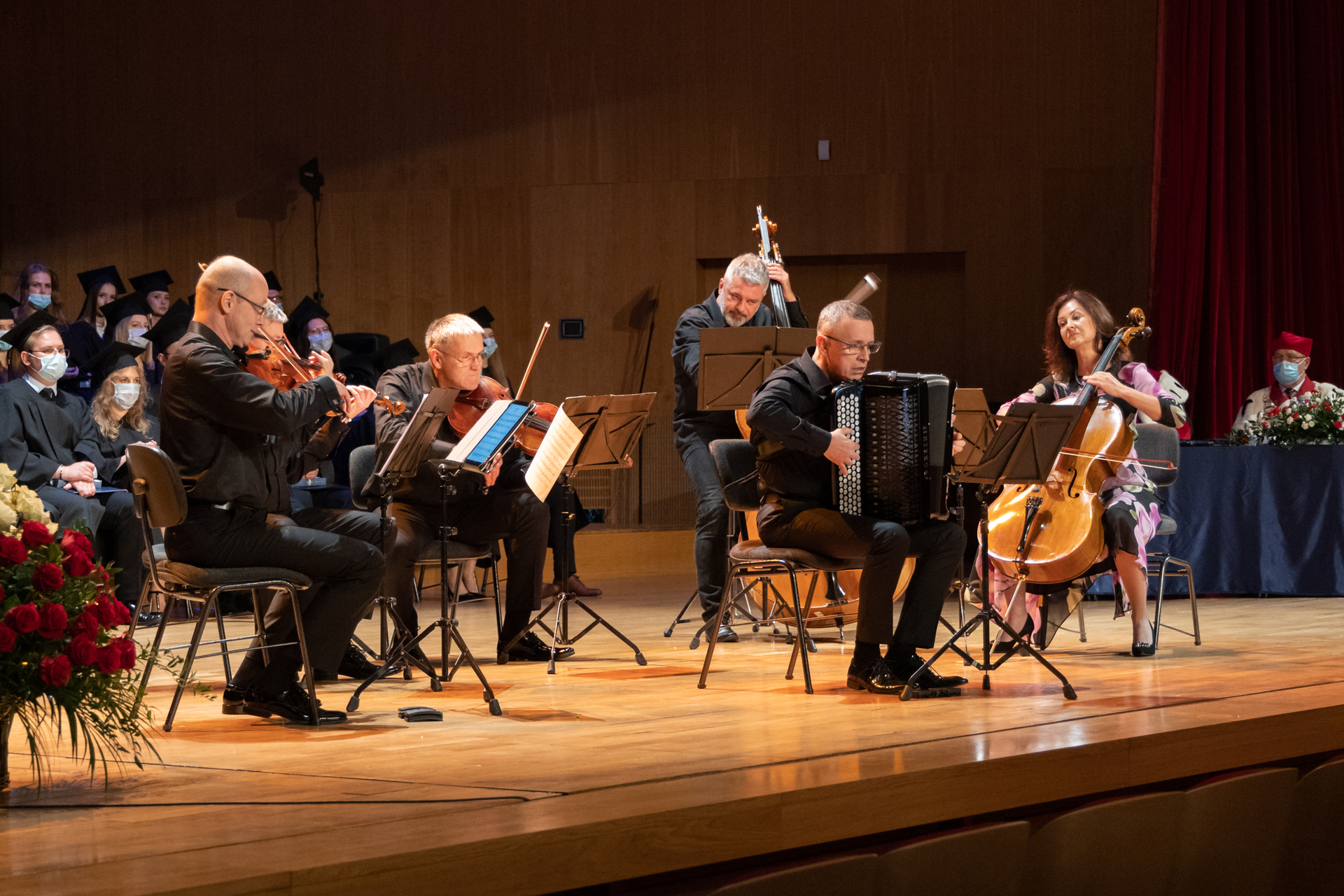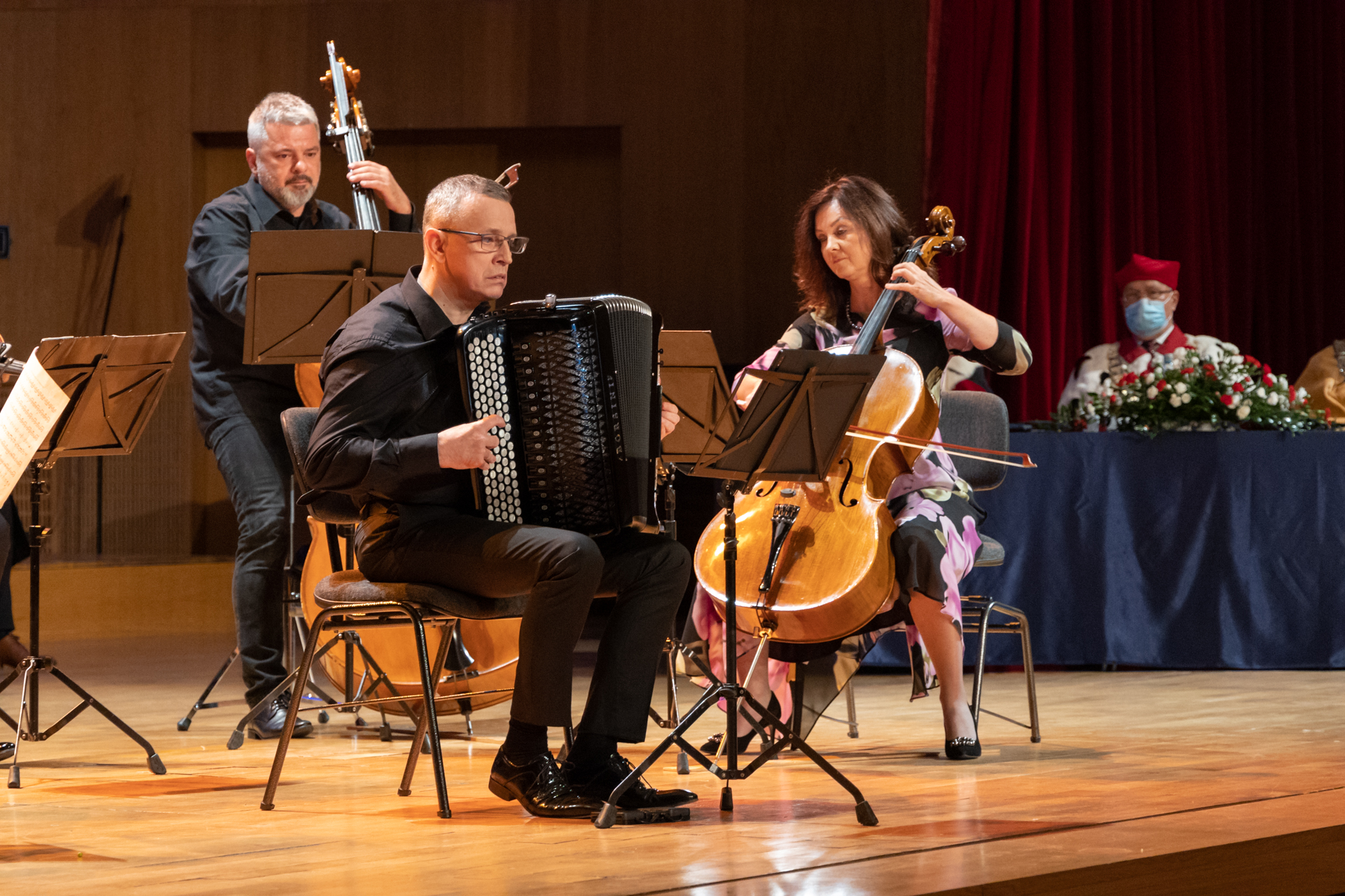 Uwieńczeniem całej uroczystości był koncert złożony ze stylizowanych tańców z różnych części świata. Obecni na sali usłyszeli żywiołową suitę tańców bałkańskich, wiązankę „Pod dachami Paryża” złożoną z romantycznych francuskich walców, stylizowane tanga Astora Piazzoli ze słynnym Libertango, nostalgiczne polskie przedwojenne tanga i fokstroty oraz amerykańskie ragtime’y.