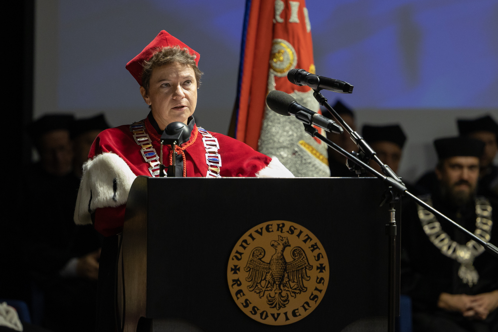 Prof. Elżbieta Rokosz, Prorektor do spraw Studenckich i Kształcenia poprowadziła ceremonię Immatrykulacji. Uroczystość wprowadziła do grona akademickiej społeczności studentów pierwszego roku. Przedstawiciele poszczególnych kolegiów, studenci I roku, złożyli ślubowanie i otrzymali listy gratulacyjne, tym samym dołączając do społeczności Uniwersytetu Rzeszowskiego.