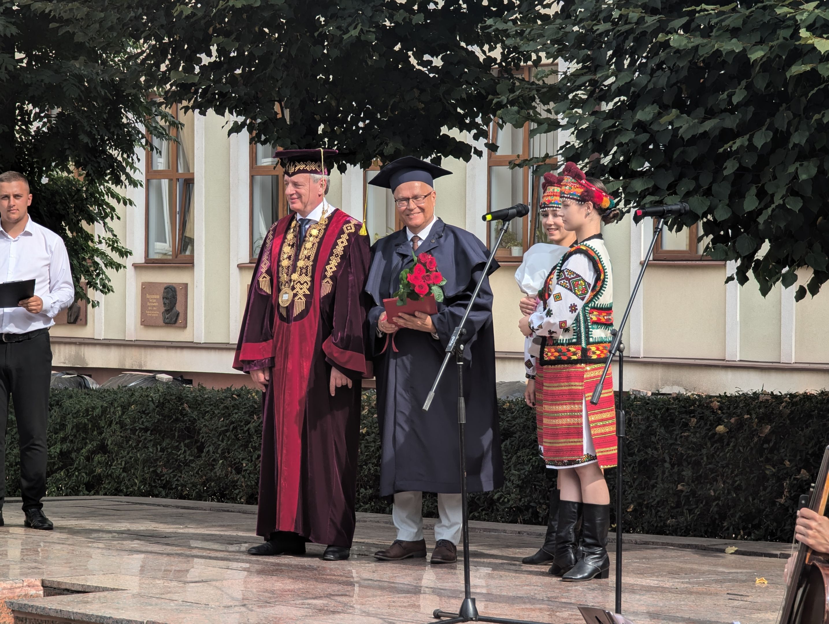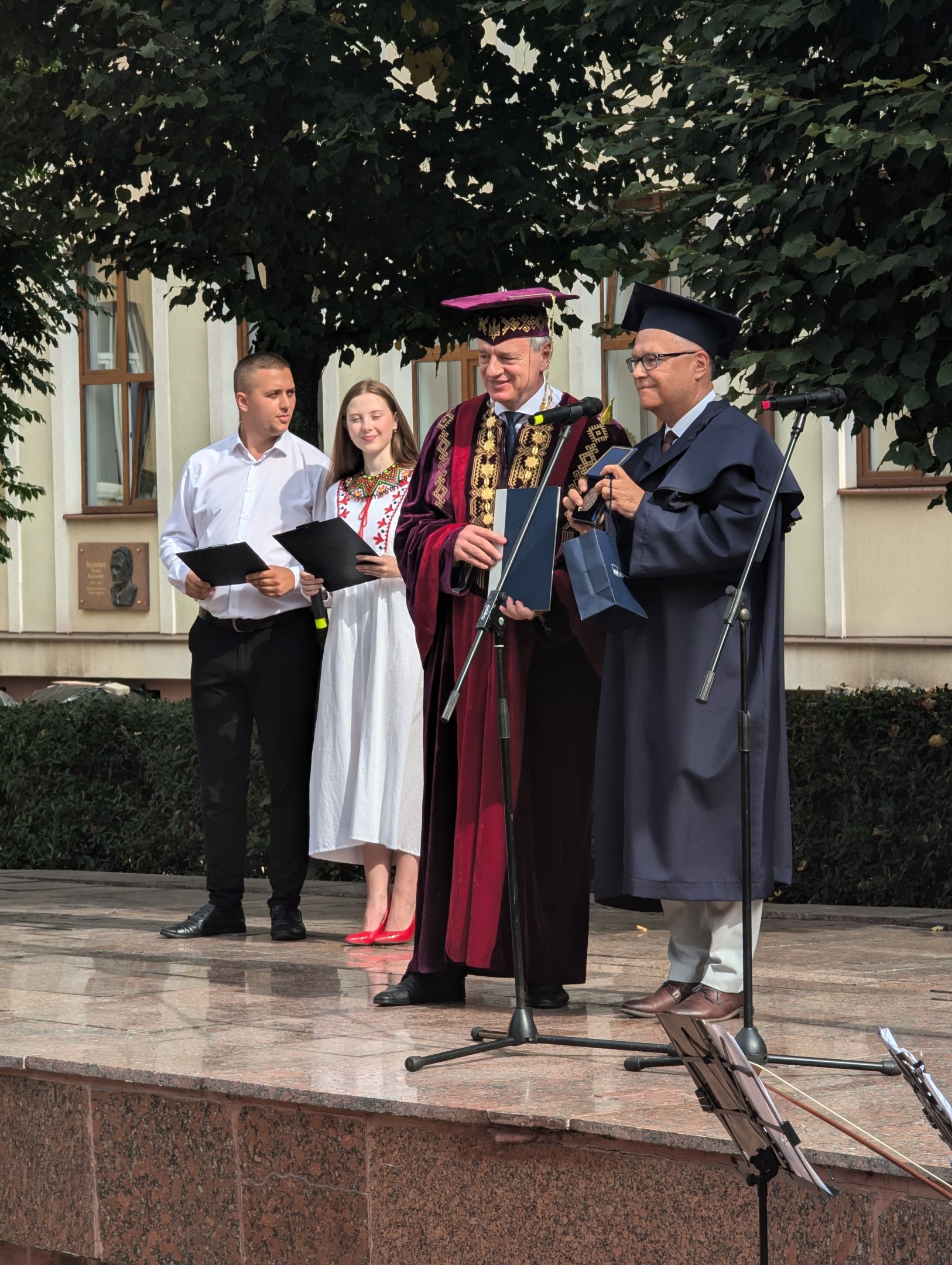 Uroczysta ceremonia wręczenia dyplomu Doctora Honoris Causa odbyła się 1 września w Ivano-Frankivsku podczas inauguracji roku akademickiego w Przykarpackim Uniwersytecie Narodowym im. Wasyla Syefanyka.