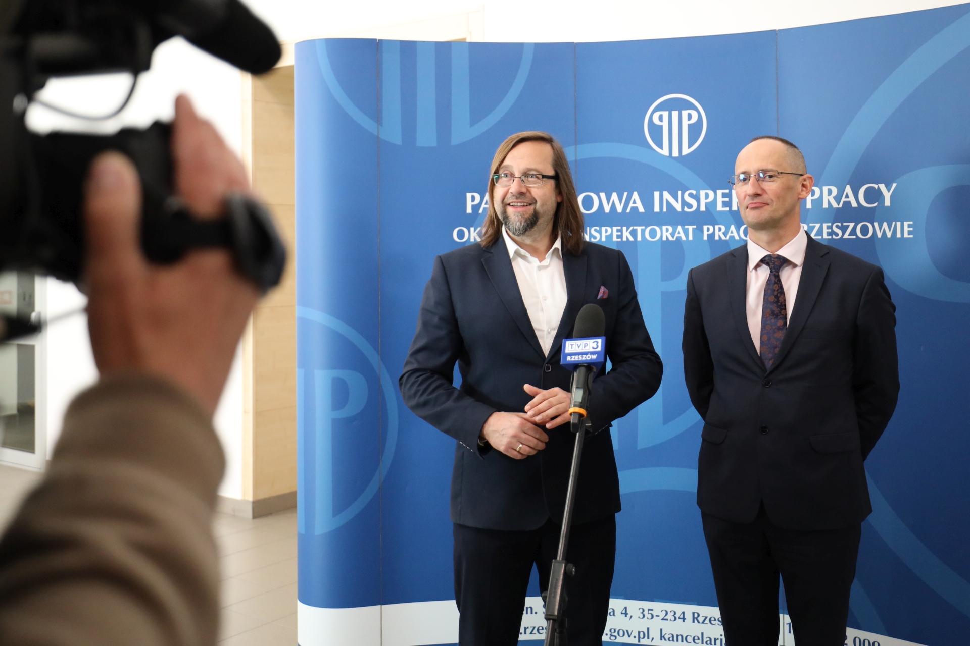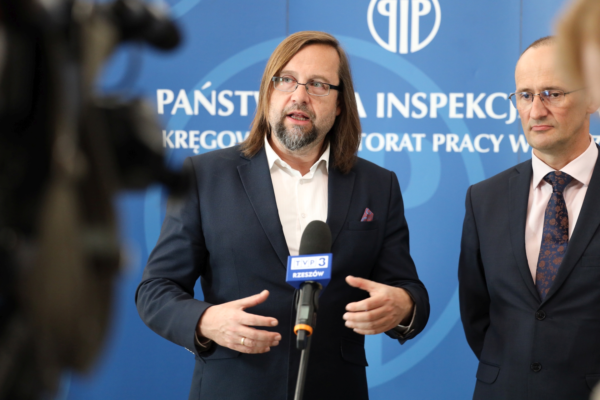 Podczas konferencji z udziałem Głównego Inspektora Pracy Marcina Staneckiego, omawiane są m.in. nowe rozwiązania legislacyjne, pozwalające okręgowemu inspektorowi pracy na wydanie decyzji o przekształceniu umowy zlecenia, umowy o dzieło lub kontraktu B2B w umowę o pracę.