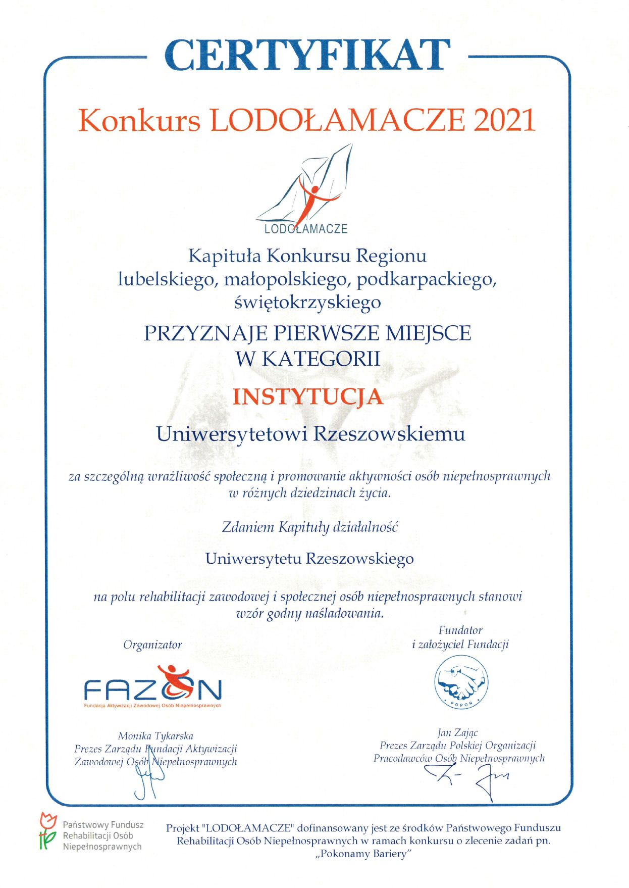 Miło nam poinformować że Biuro ds. Osób Niepełnosprawnych reprezentujące Uniwersytet Rzeszowski zostało zgłoszone przez Państwowy Fundusz Rehabilitacji Osób Niepełnosprawnych Oddział Podkarpacki  do wzięcia udziału w XVI edycji konkursu Lodołamacze.