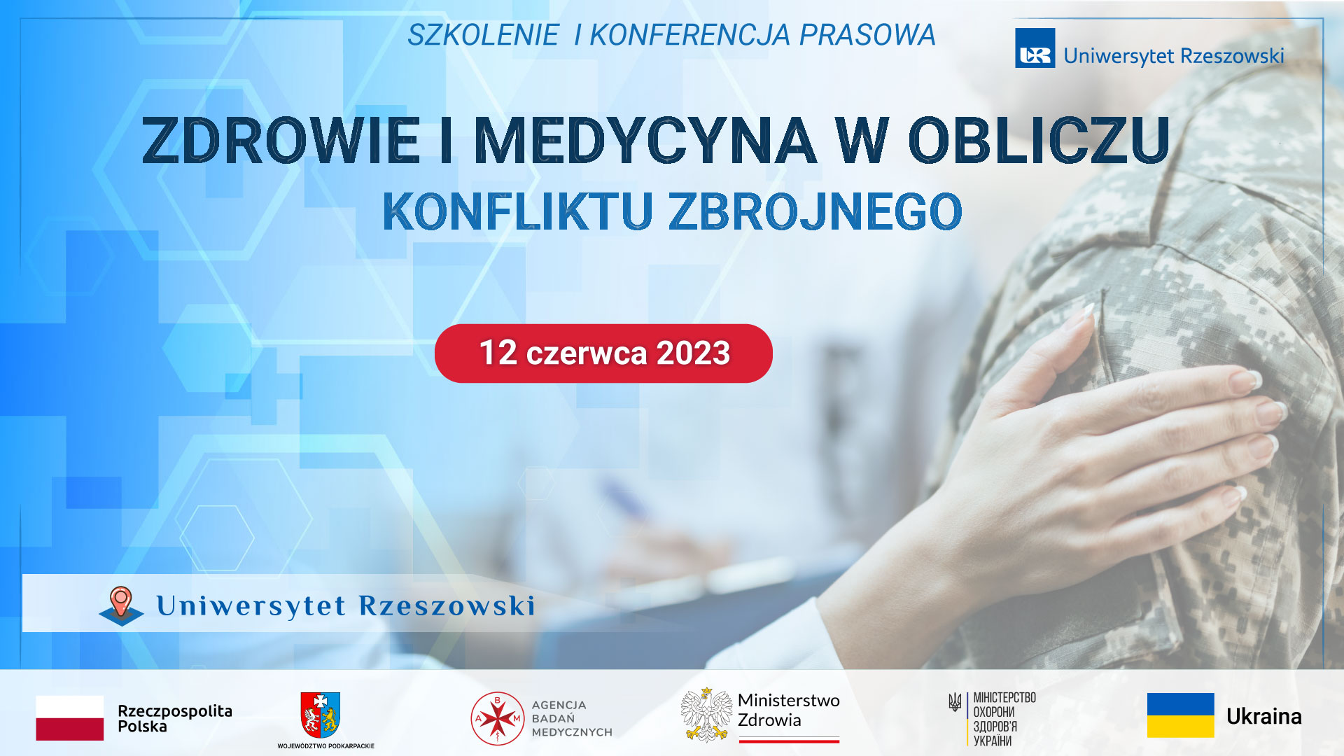 Kolegium Nauk Medycznych Uniwersytetu Rzeszowskiego we współpracy z Agencją Badań Medycznych zaprasza do udziału w międzynarodowej konferencji pn. „Zdrowie i Medycyna w Obliczu Konfliktu Zbrojnego”, która odbędzie się w dniach 12-13 czerwca 2023 roku. Patronat nad wydarzeniem objęli: Ministerstwo Zdrowia oraz Marszałek Województwa Podkarpackiego.