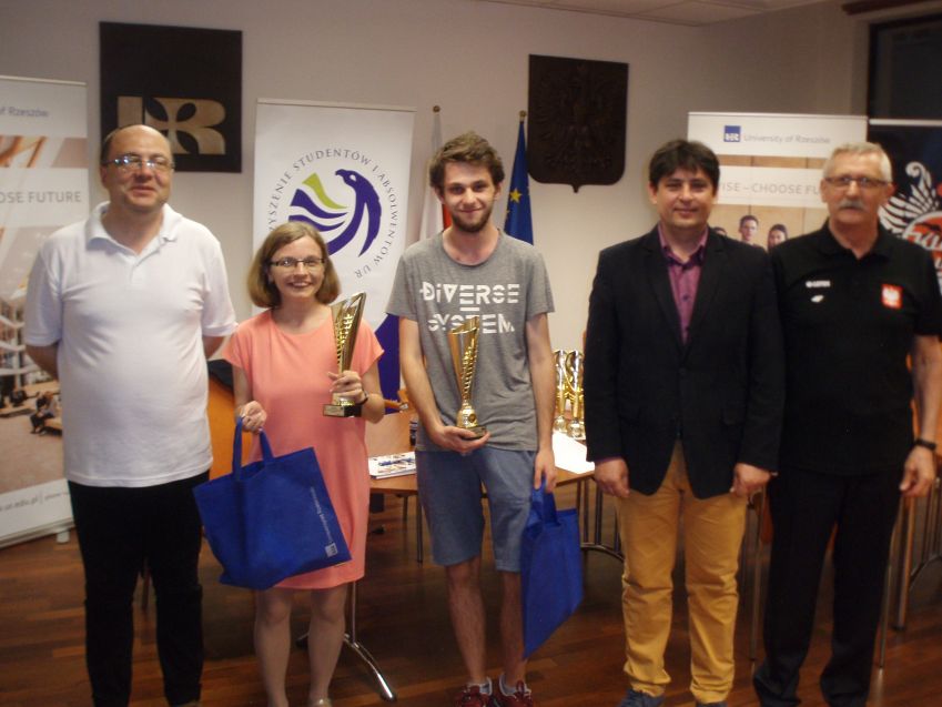Zwycięskie pary otrzymały puchary ufundowane przez Pana Rektora prof. dr hab Sylwestra Czopka i upominki z Działu Informacji i Promocji UR, Samorządu Studentów UR i Stowarzyszenia Studentów i Absolwentów UR.