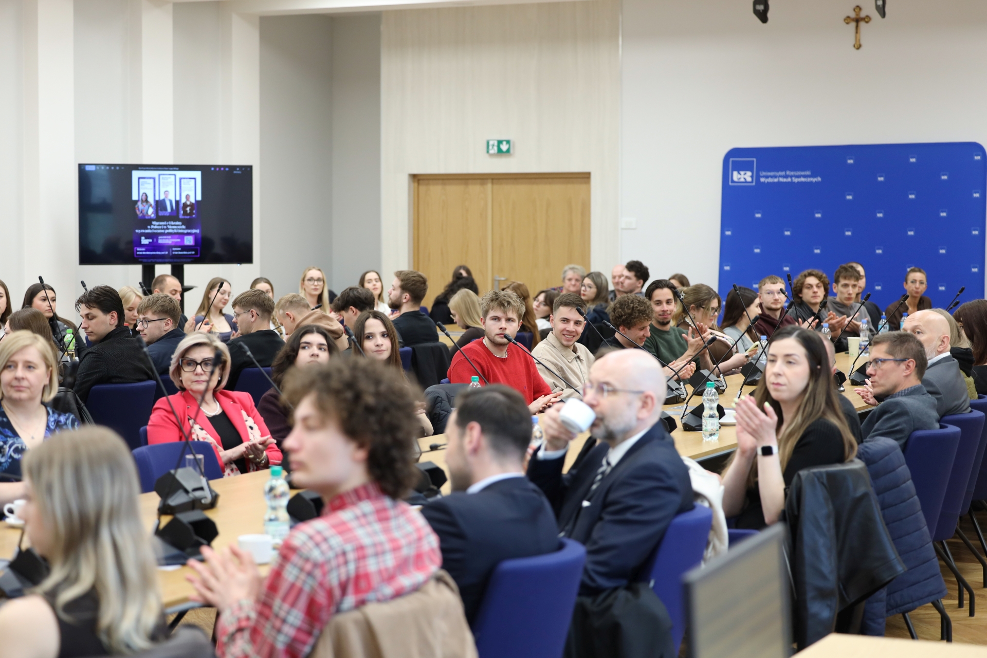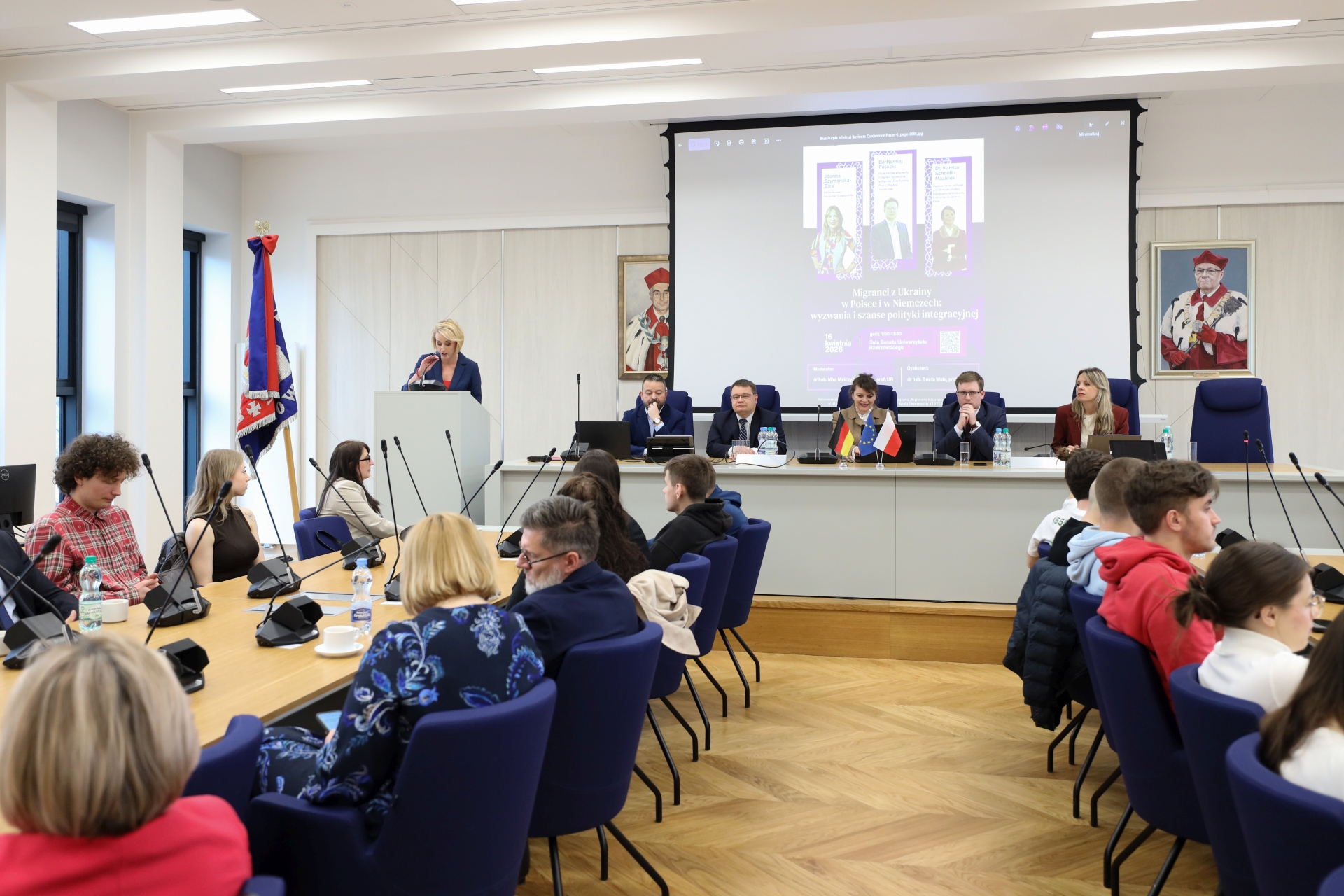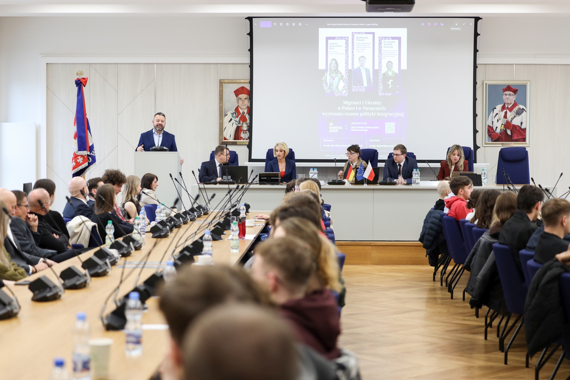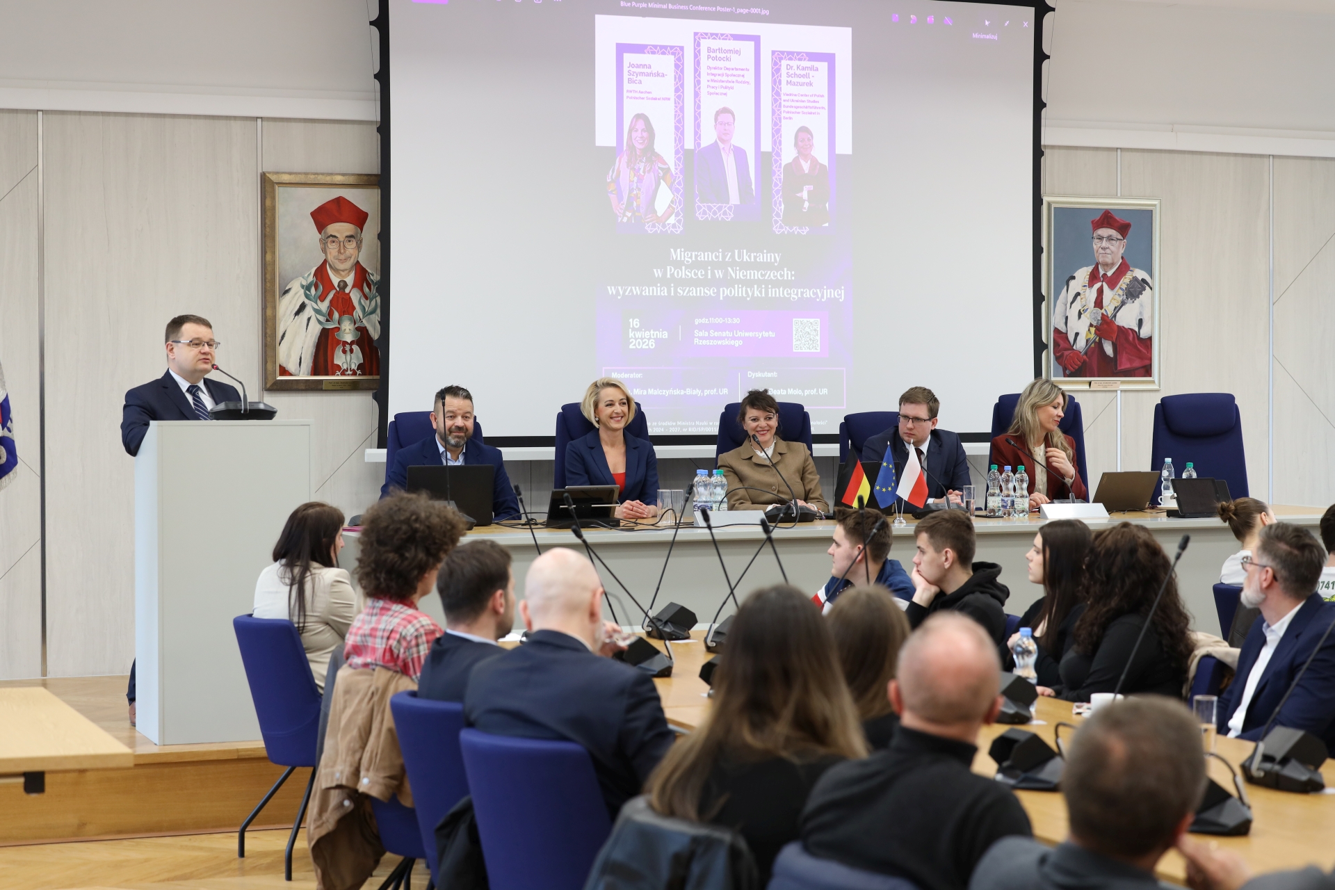 16 kwietnia 2026 roku w Sali Senatu Uniwersytetu Rzeszowskiego odbyło się seminarium naukowe pt. „Migranci z Ukrainy w Polsce i w Niemczech: wyzwania i szanse polityki integracyjnej”, zorganizowane w ramach projektu Regionalna Inicjatywa Doskonałości „Migranci z Ukrainy w województwie podkarpackim. Implikacje społeczno-gospodarcze”.