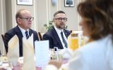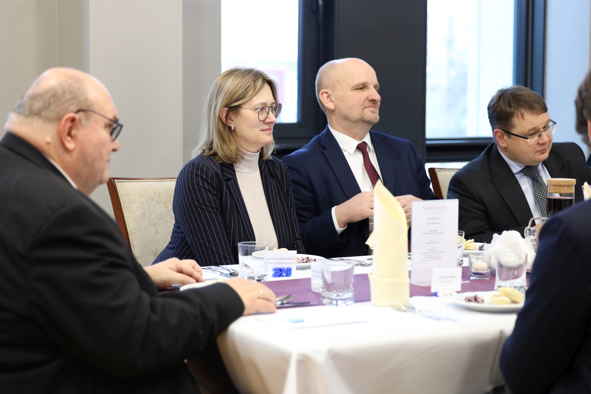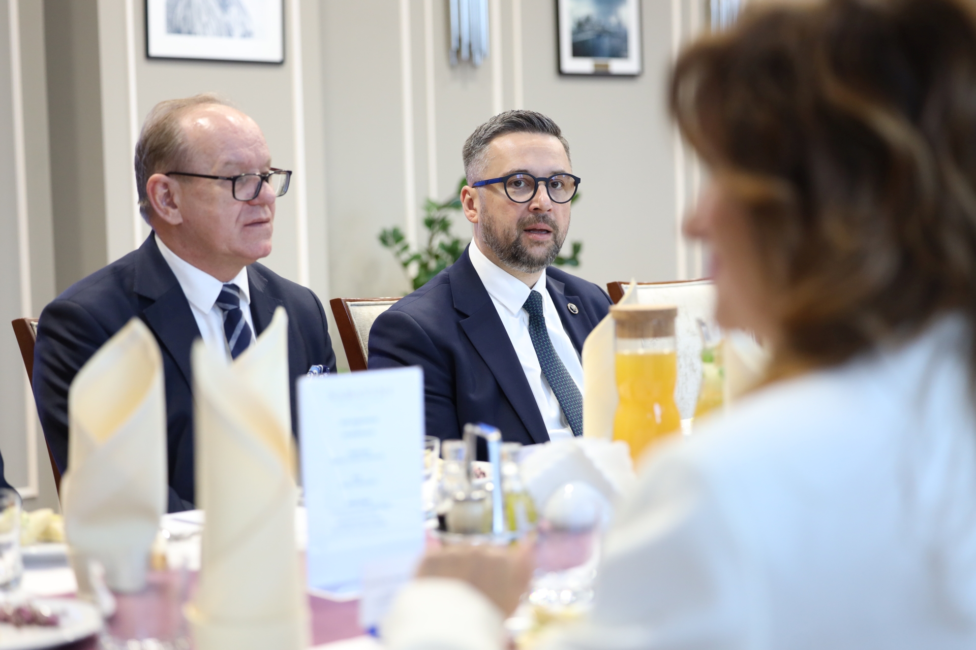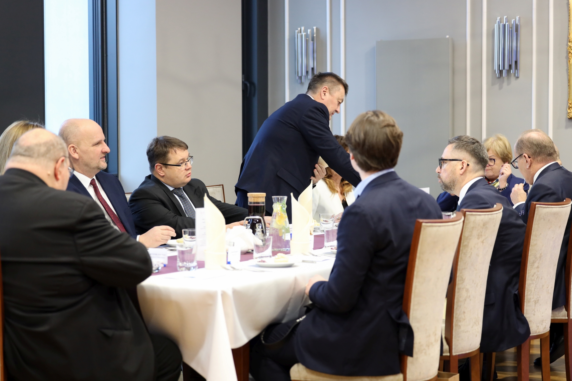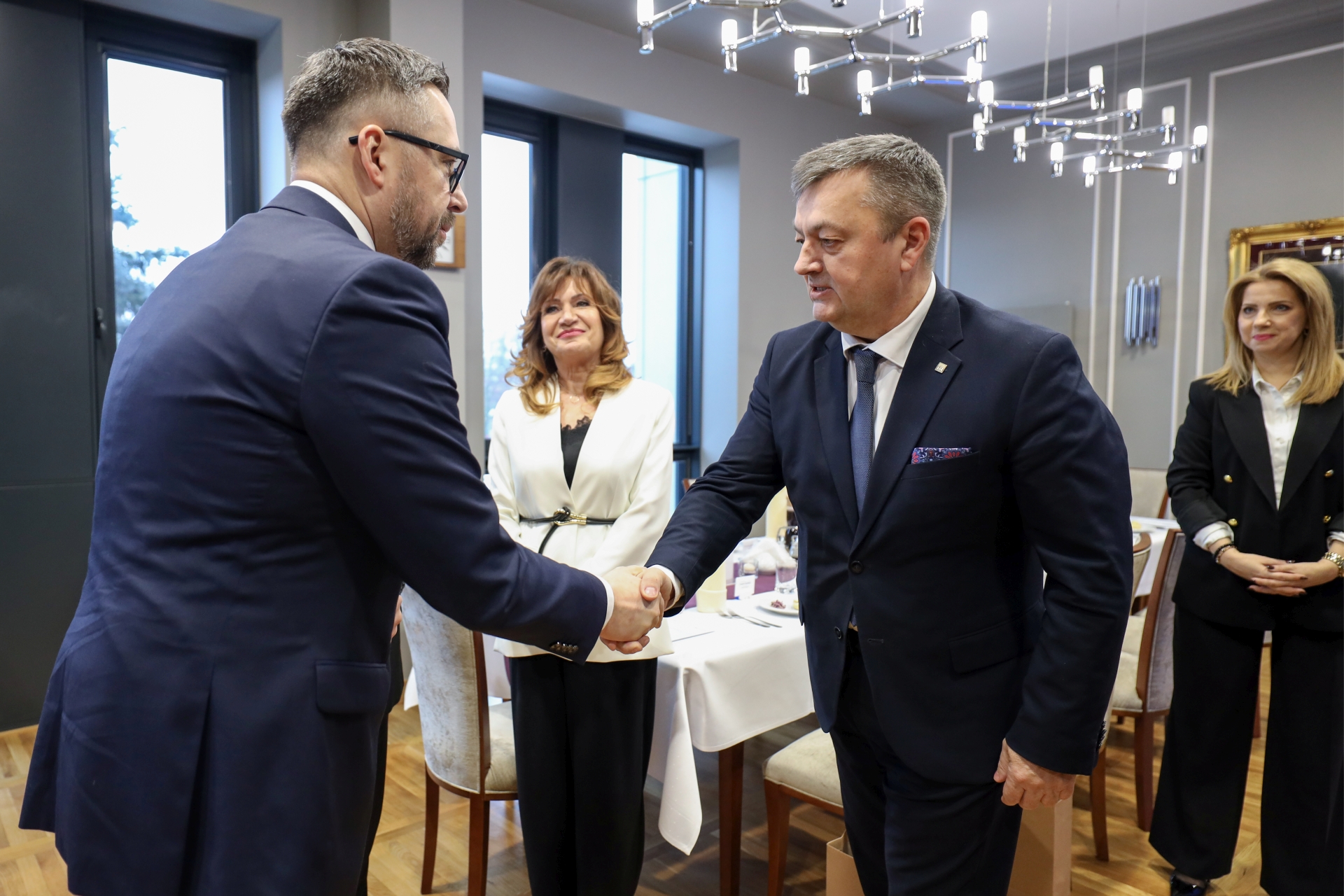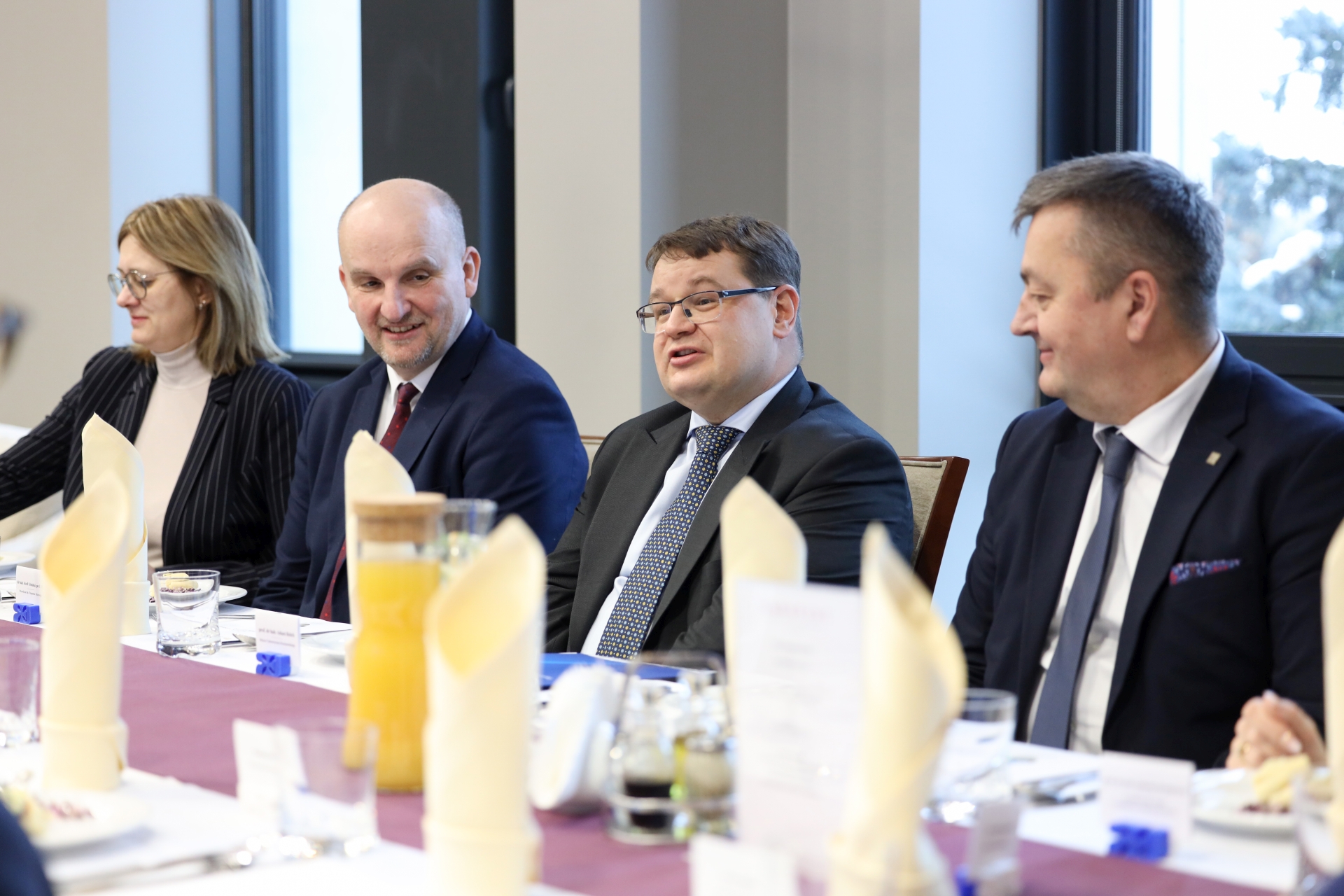 Wizyta Ministra była rownież okazją do spotkania się z Władzami Uniwersytetu Rzeszowskiego. Rozmowy dotyczyły kluczowych zagadnień związanych z rozwojem nauki i szkolnictwa wyższego, w tym m.in. działań wspierających potencjał badawczy Uczelni, wzmacniania jakości kształcenia oraz tworzenia warunków sprzyjających rozwojowi młodej kadry naukowej. Poruszono również kwestie związane z rolą uniwersytetów regionalnych w budowaniu nowoczesnej gospodarki opartej na wiedzy, a także znaczenia współpracy z otoczeniem społeczno-gospodarczym.