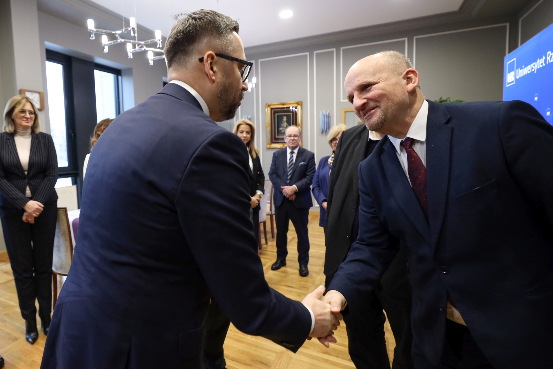 Wizyta Ministra Nauki i Szkolnictwa Wyższego na Uniwersytecie Rzeszowskim była okazją do podsumowania dotychczasowych działań, zaprezentowania najważniejszych inicjatyw Uczelni oraz rozmów na temat perspektyw rozwoju nauki, dydaktyki i infrastruktury akademickiej w regionie.