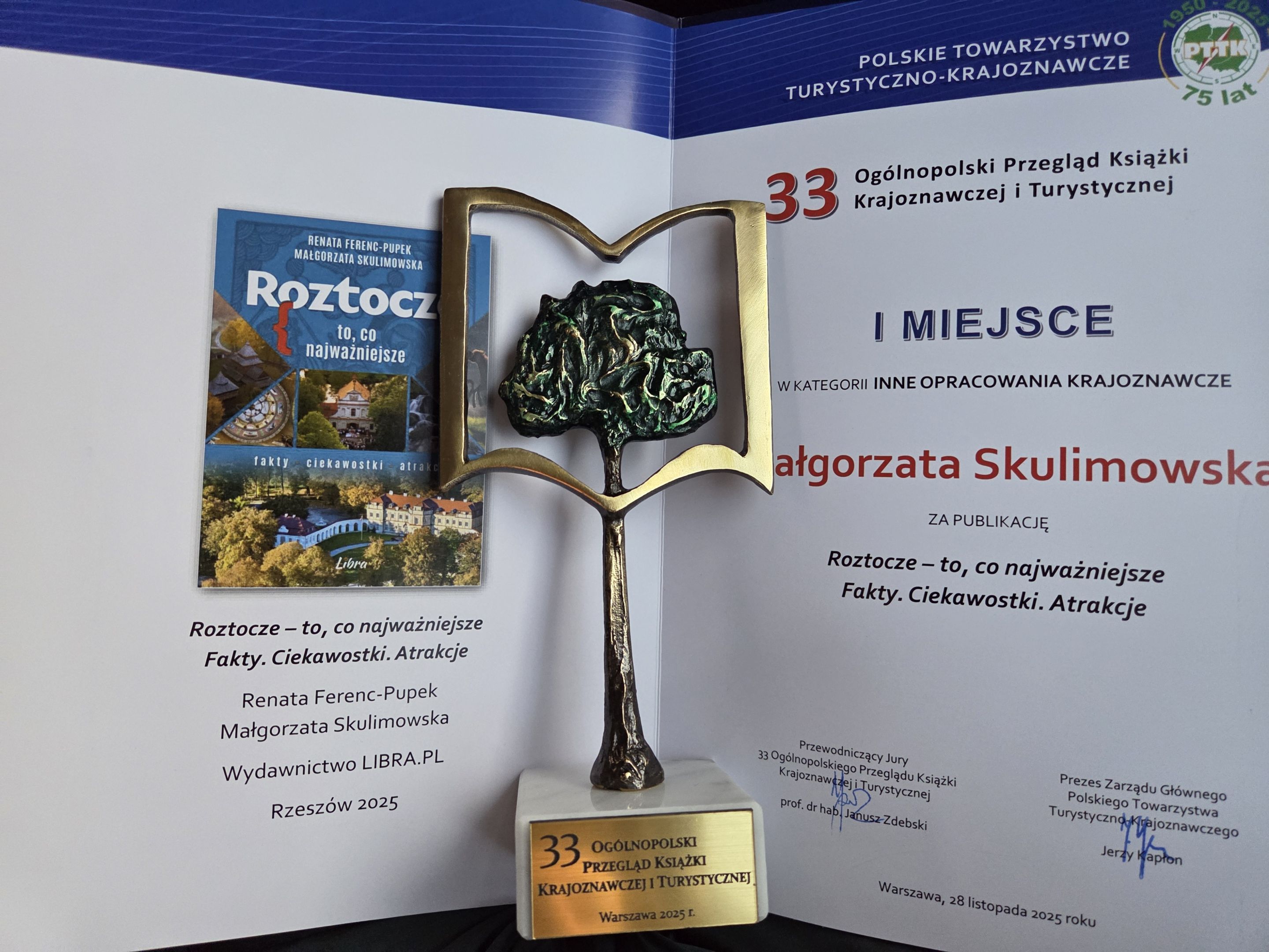 Nagroda dla dr Małgorzaty Skulimowskiej w ogólnopolskim konkursie wydawniczym za publikację pn.„Roztocze – to, co najważniejsze. Fakty. Ciekawostki. Atrakcje”