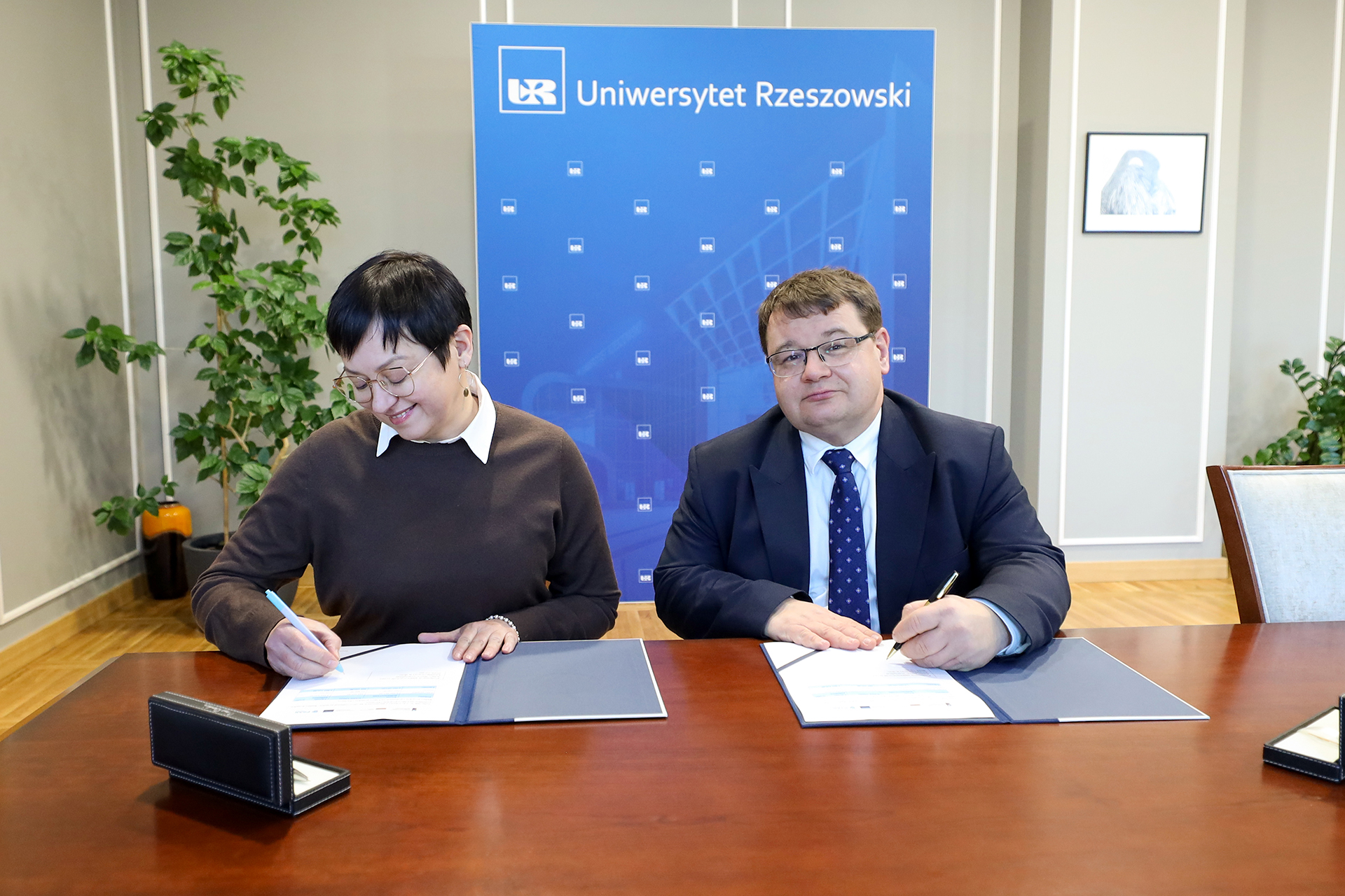 20 stycznia 2026 r. w siedzibie Uniwersytetu Rzeszowskiego odbyło się spotkanie JM Rektora UR, prof. dra hab. Adama Reicha, z prezeską Podkarpackiego Stowarzyszenia dla Aktywnych Rodzin, panią Moniką Marković. Podczas spotkania podpisano Umowę o partnerstwie na rzecz realizacji projektu pn. „Integracja OPT na Podkarpaciu: Globalne rozwiązania, lokalne korzyści”.