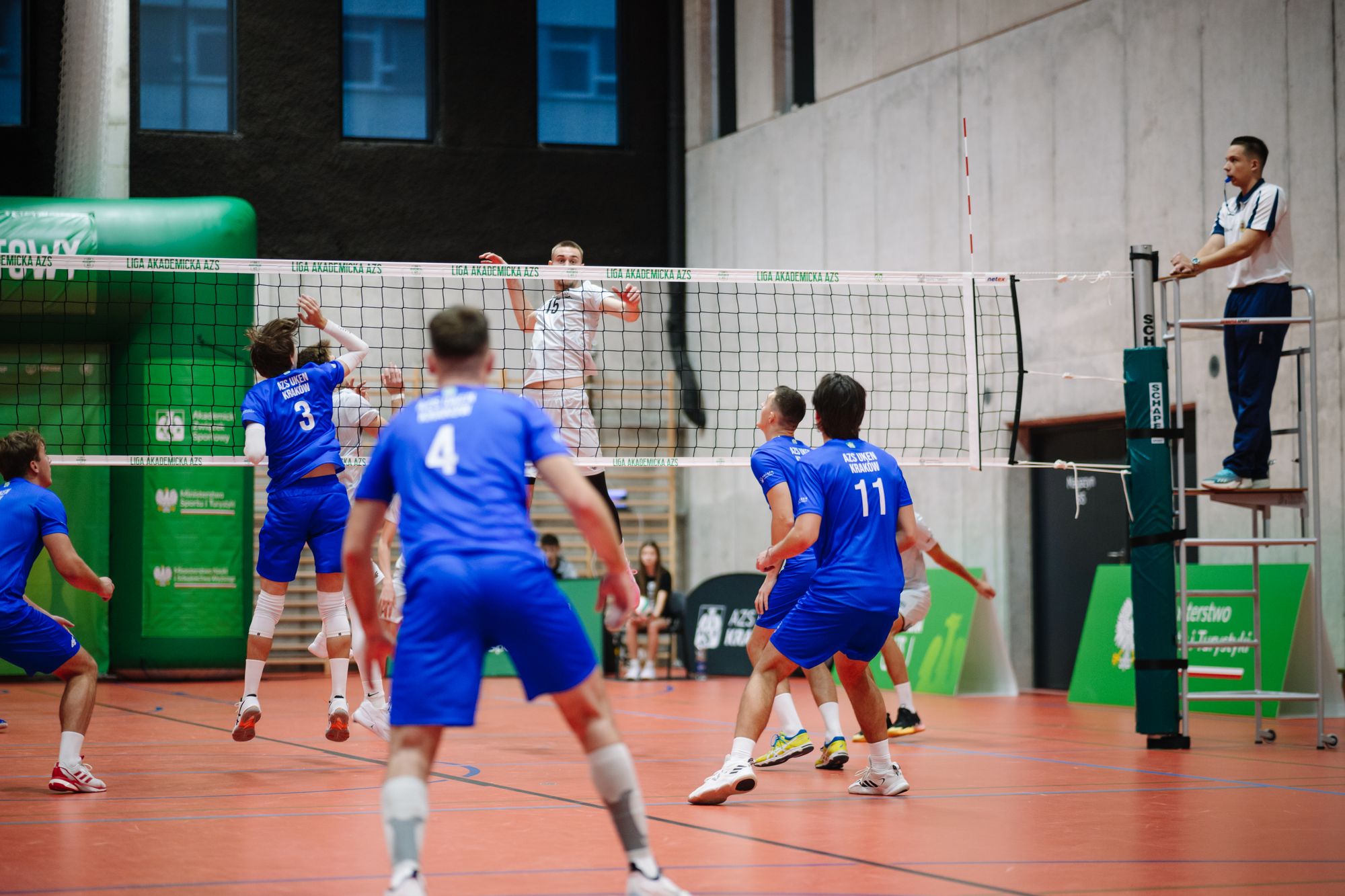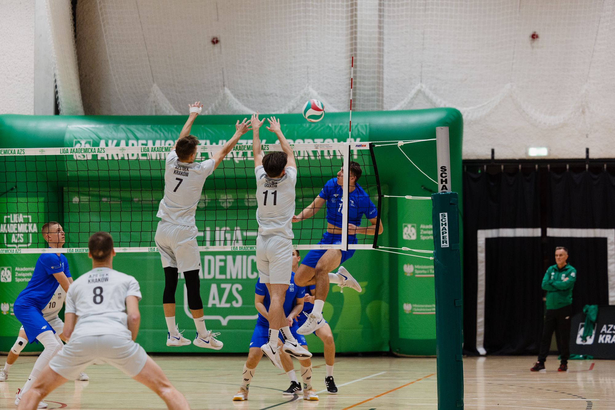 Nasza drużyna ponownie zaprezentowała się z bardzo dobrej strony podczas drugiego turnieju eliminacyjnego Akademickiej Ligi AZS w piłce siatkowej mężczyzn, który odbył się w dniach 29.11 - 1.12.2024 na terenie campusu Akademii Górniczo-Hutniczej w Krakowie. Zespół wygrał 4 mecze, a jedyną porażkę poniósł w starciu z drużyną AZS AGH Kraków, przegrywając 1:2 po wyrównanym pojedynku. Przeciwnik, regularnie występujący w 1. lidze PLS, okazał się jednak zbyt wymagającym rywalem.
