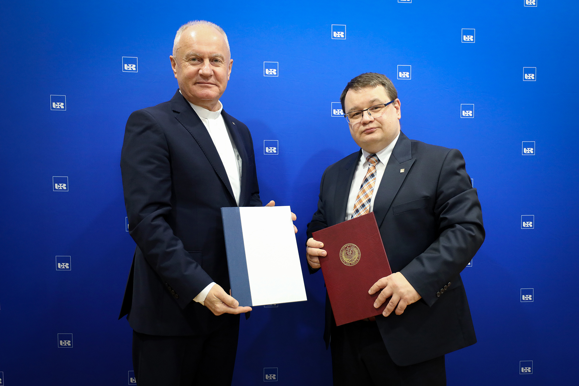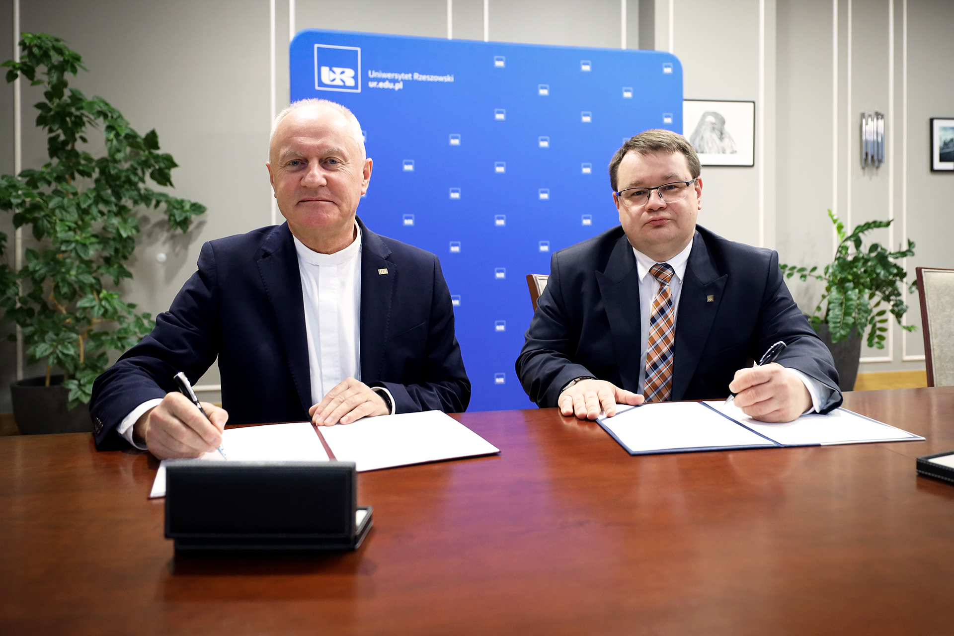 Porozumienie o współpracy zostało podpisane 14 lutego 2025 r., przez JM Rektora Uniwersytetu Rzeszowskiego prof. dra n. med. Adama Reicha i ks. prof. dra hab. Mirosława Kalinowskiego, Rektora KUL.