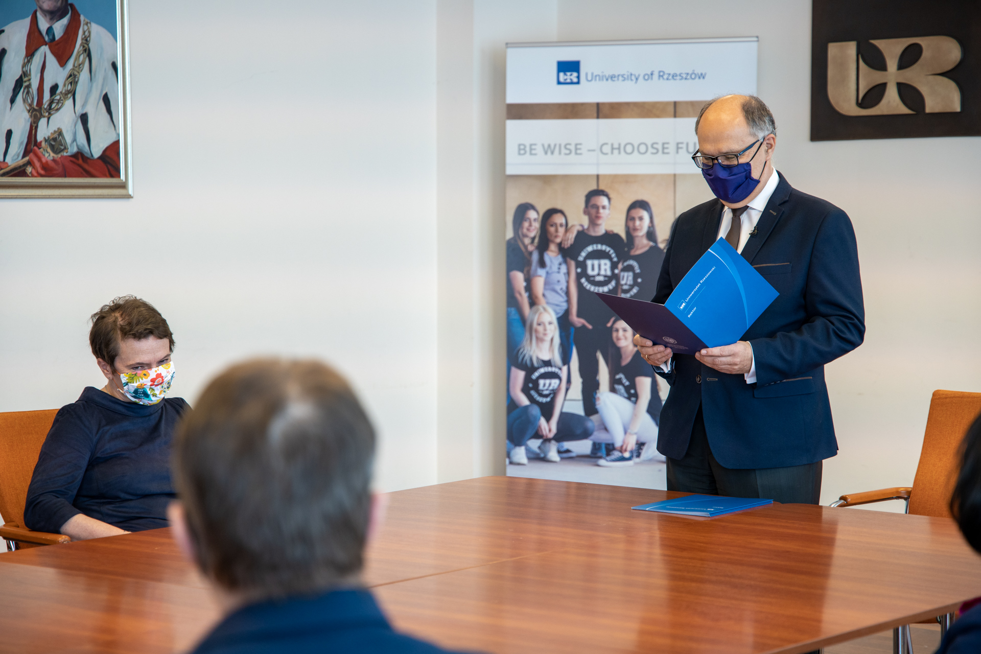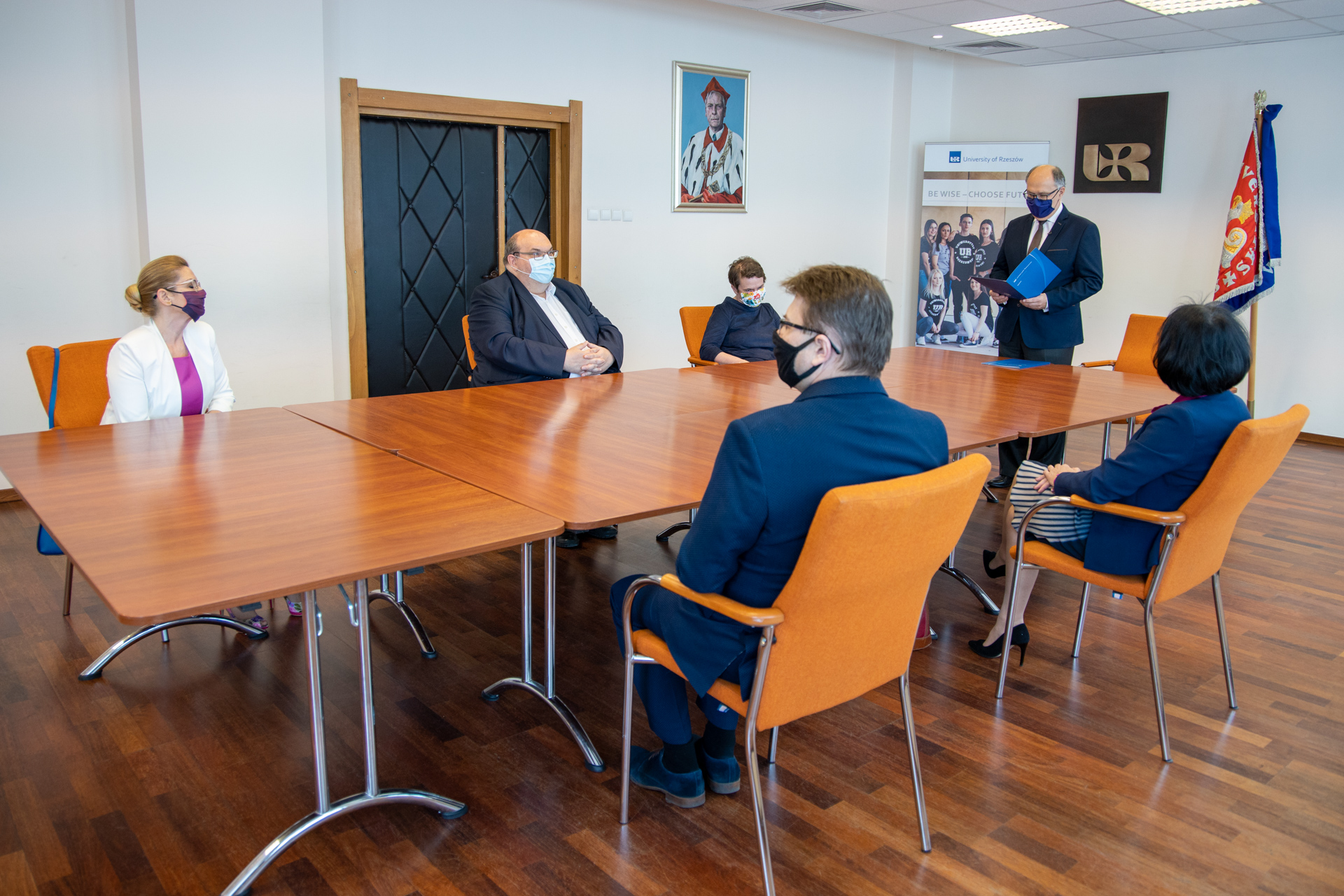 Po zakończeniu procedury wskazywania kandydatów na Prorektorów na kadencję 2020-2024, Rektor elekt, prof. dr hab. Sylwester Czopek zatwierdził ich formalnie. Spotkanie z nowymi Prorektorami odbyło się 20 maja 2020 r. w Sali Senatu Uniwersytetu Rzeszowskiego.