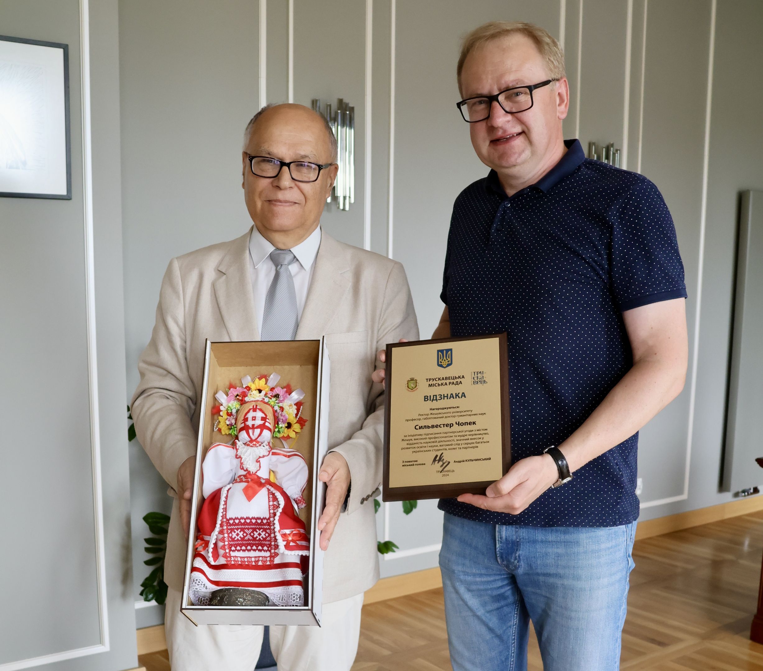 Z przyjemnością informujemy, że Rada Miasta Truskawiec uhonorowała JM prof. dra hab. Sylwestra Czopka, Rektora Uniwersytetu Rzeszowskiego, za jego osiągnięcia w dziedzinie edukacji i nauki, a także za inicjatywę podpisania umowy współpracy z Miastem Rzeszów.