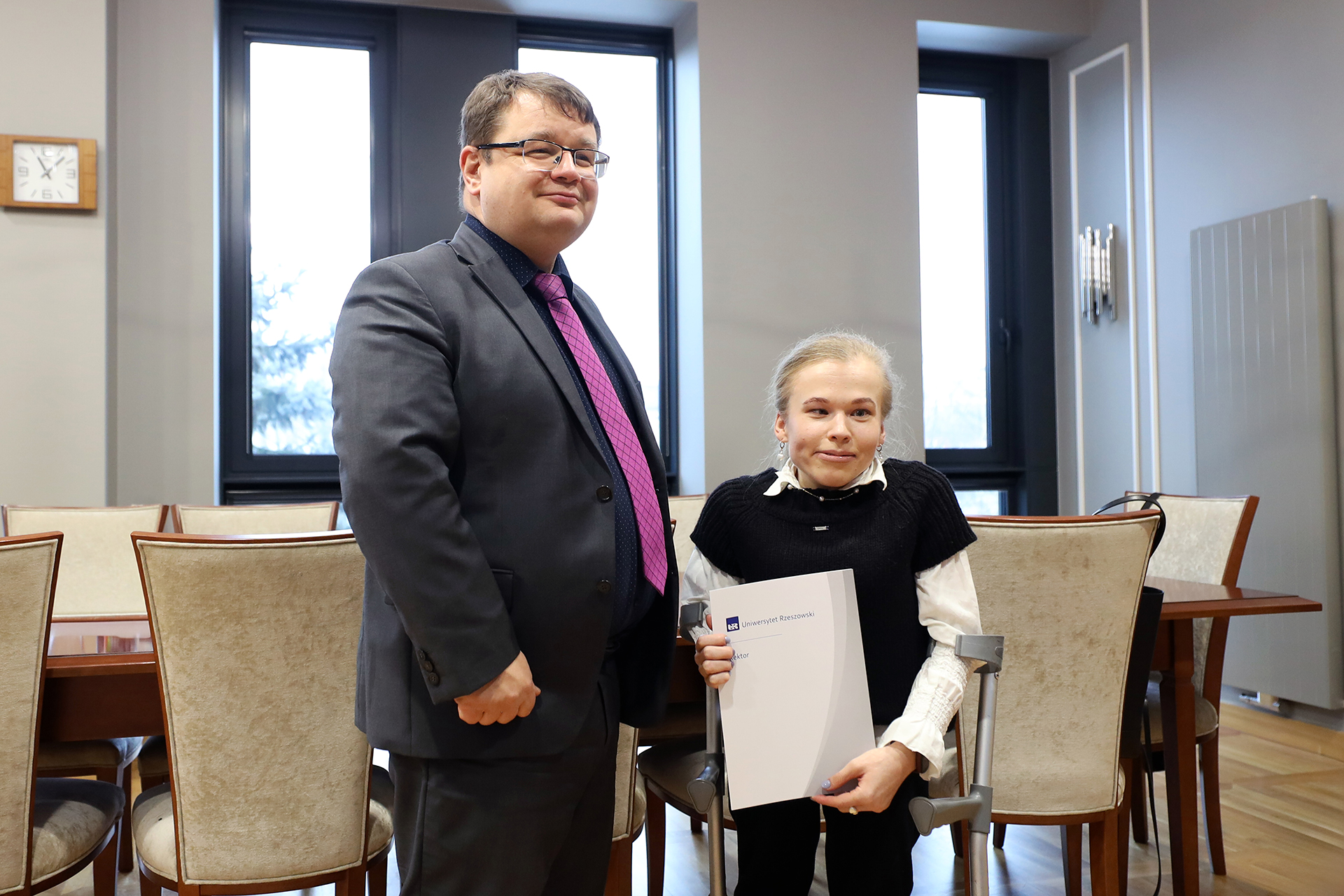 W dniu 5 lutego 2026 r. Rektor Uniwersytetu Rzeszowskiego, prof. dr hab. Adam Reich, wręczył listy gratulacyjne studentom objętym wsparciem Biura ds. Osób z Niepełnosprawnościami Uniwersytetu Rzeszowskiego (BON), którzy odnieśli znaczące sukcesy sportowe na arenie ogólnopolskiej.