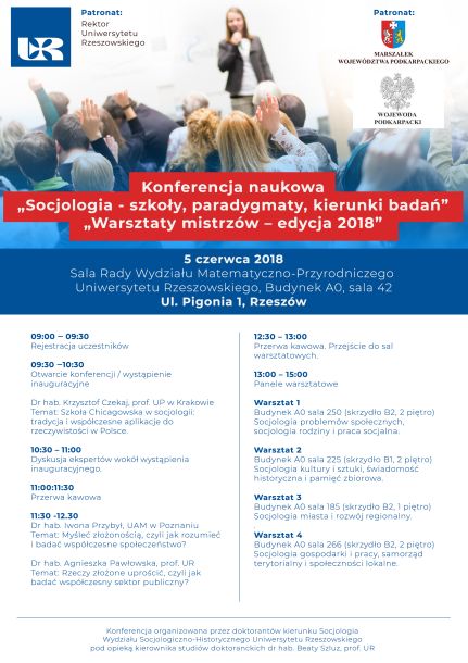 Konferencja organizowana przez doktorantów kierunku Socjologia Wydziału Socjologiczno-Historycznego Uniwersytetu Rzeszowskiego pod opieką kierownika studiów doktoranckich dr hab. Beaty Szluz, prof. UR