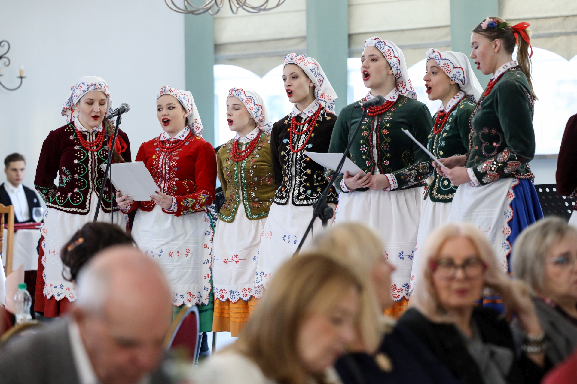 Uczestnicy wydarzenia zasiedli do wspólnego posiłku, a uroczystość uświetniły występy artystyczne Zespołu Pieśni i Tańca Resovia Saltans.