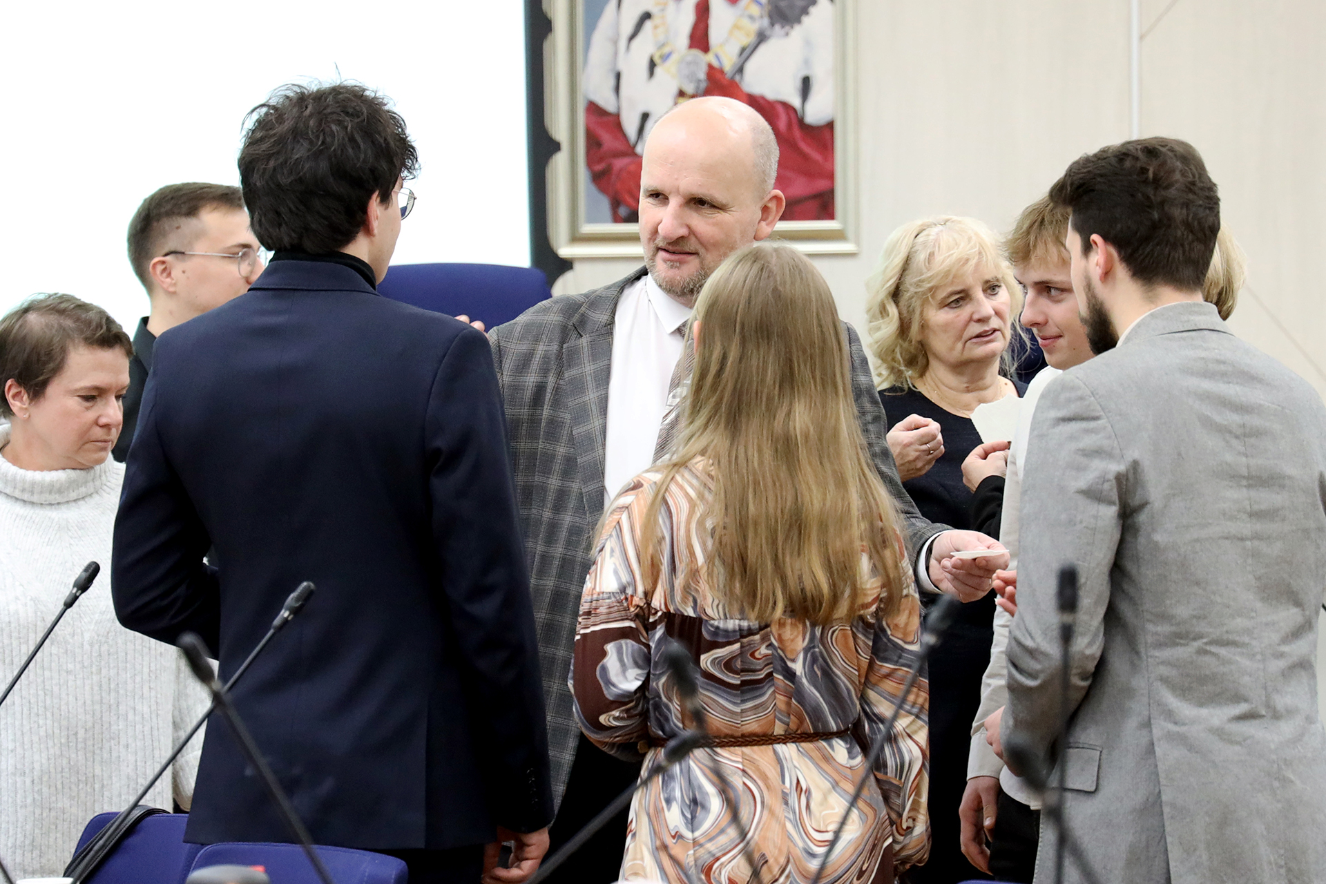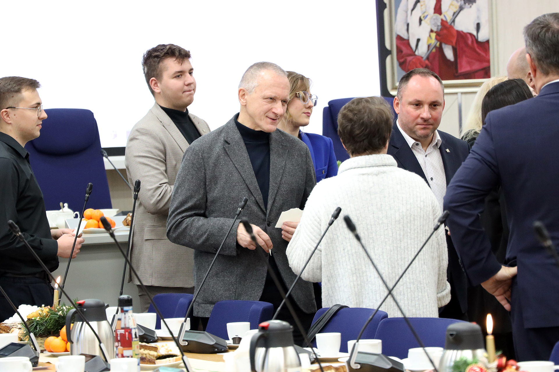 JM Rektor Uniwersytetu Rzeszowskiego prof. Adam Reich złożył świąteczne życzenia wszystkim członkom Senatu. Spotkanie opłatkowe było okazją do wymiany życzeń świątecznych oraz refleksji nad mijającym rokiem w serdecznej atmosferze wspólnoty akademickiej.