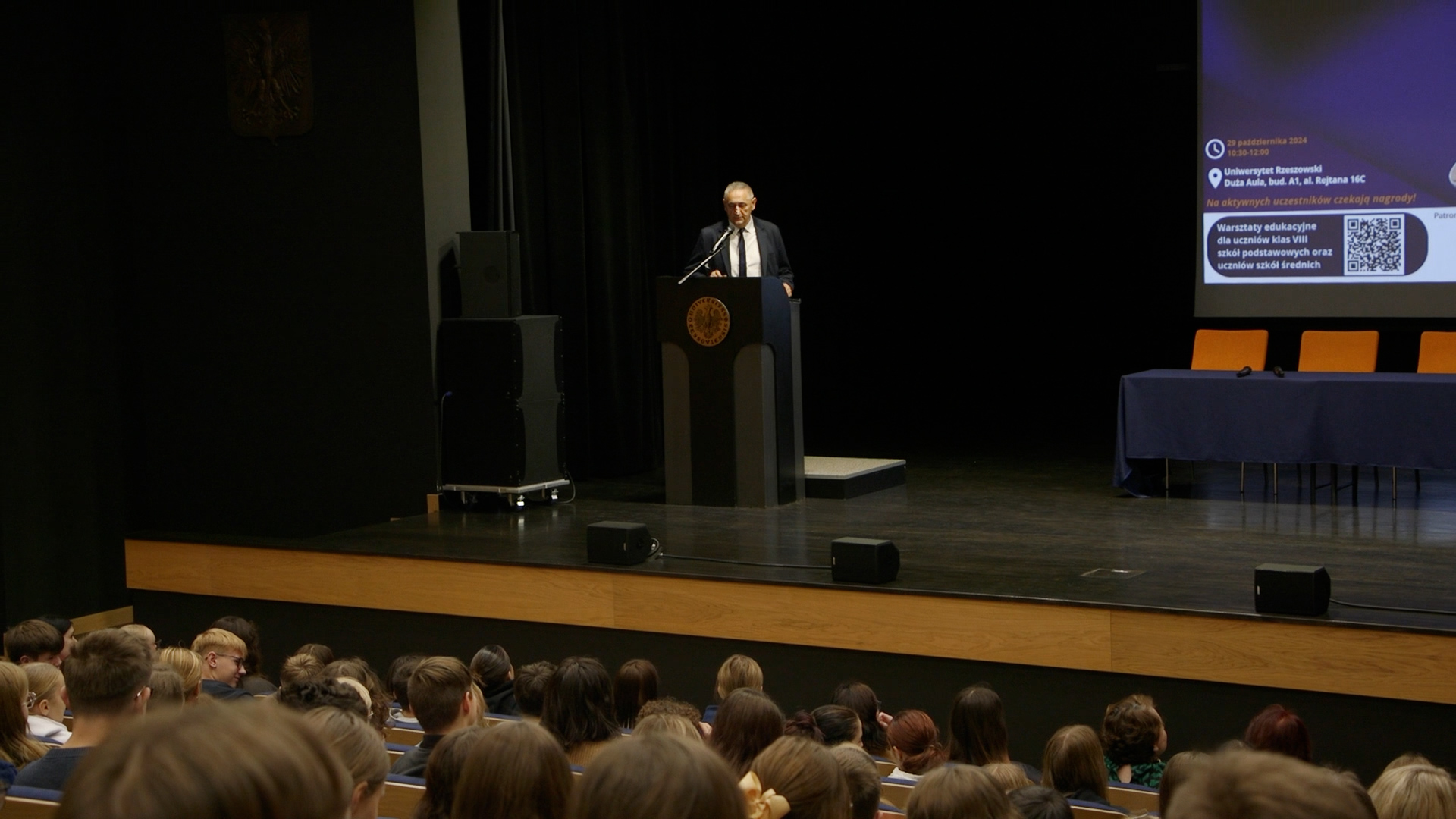 29 października 2024 r. w Dużej Auli Uniwersytetu Rzeszowskiego miało miejsce kolejne – już piąte – spotkanie z cyklu Wtorki z Panem Cogito, czyli warsztaty edukacyjne dla uczniów klas VIII szkół podstawowych i uczniów szkół średnich. Swoją obecnością zaszczyciło nas blisko 350 osób, w tym młodzież szkolna wraz z nauczycielami oraz przedstawiciele różnych instytucji edukacyjnych.