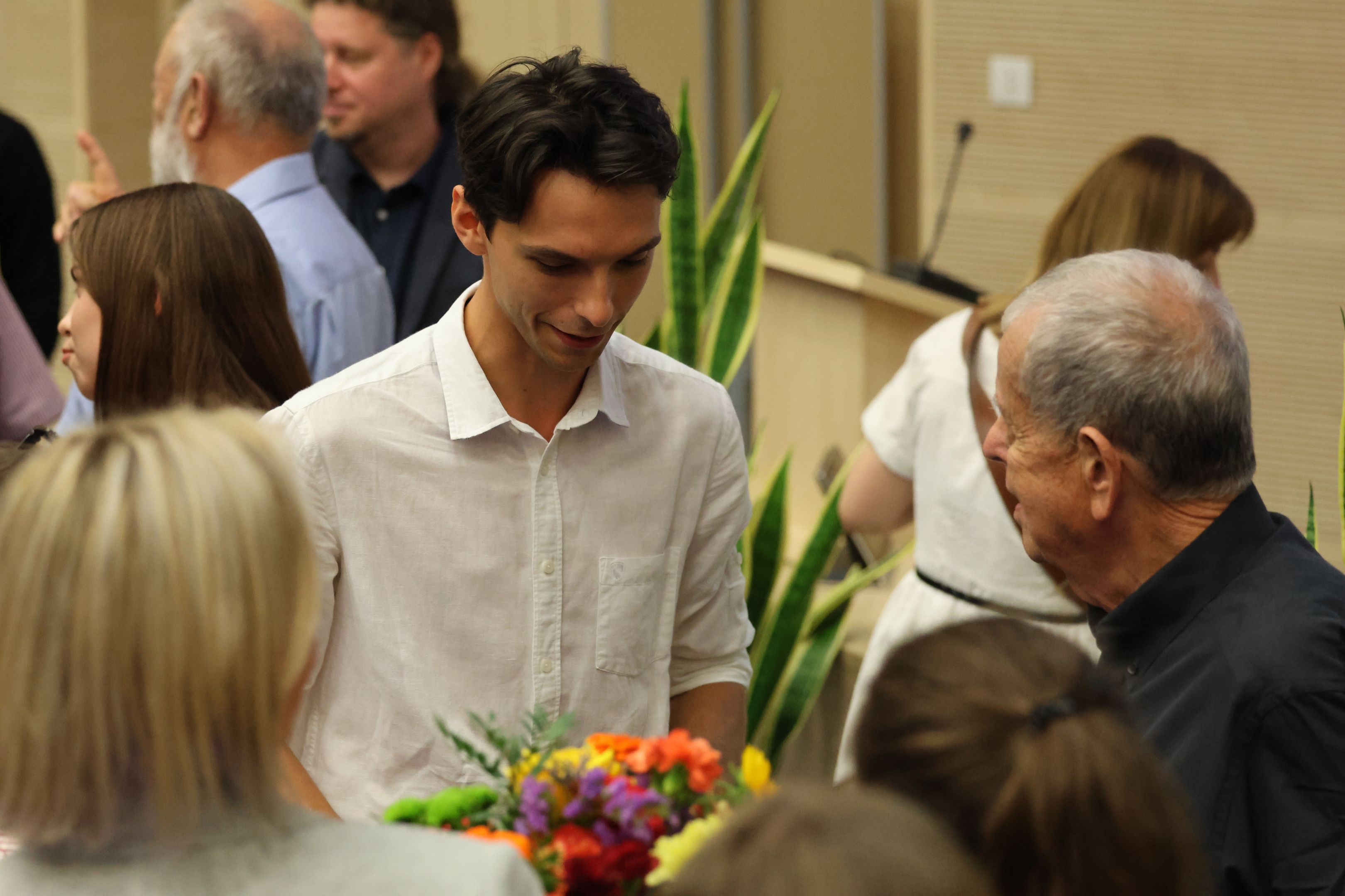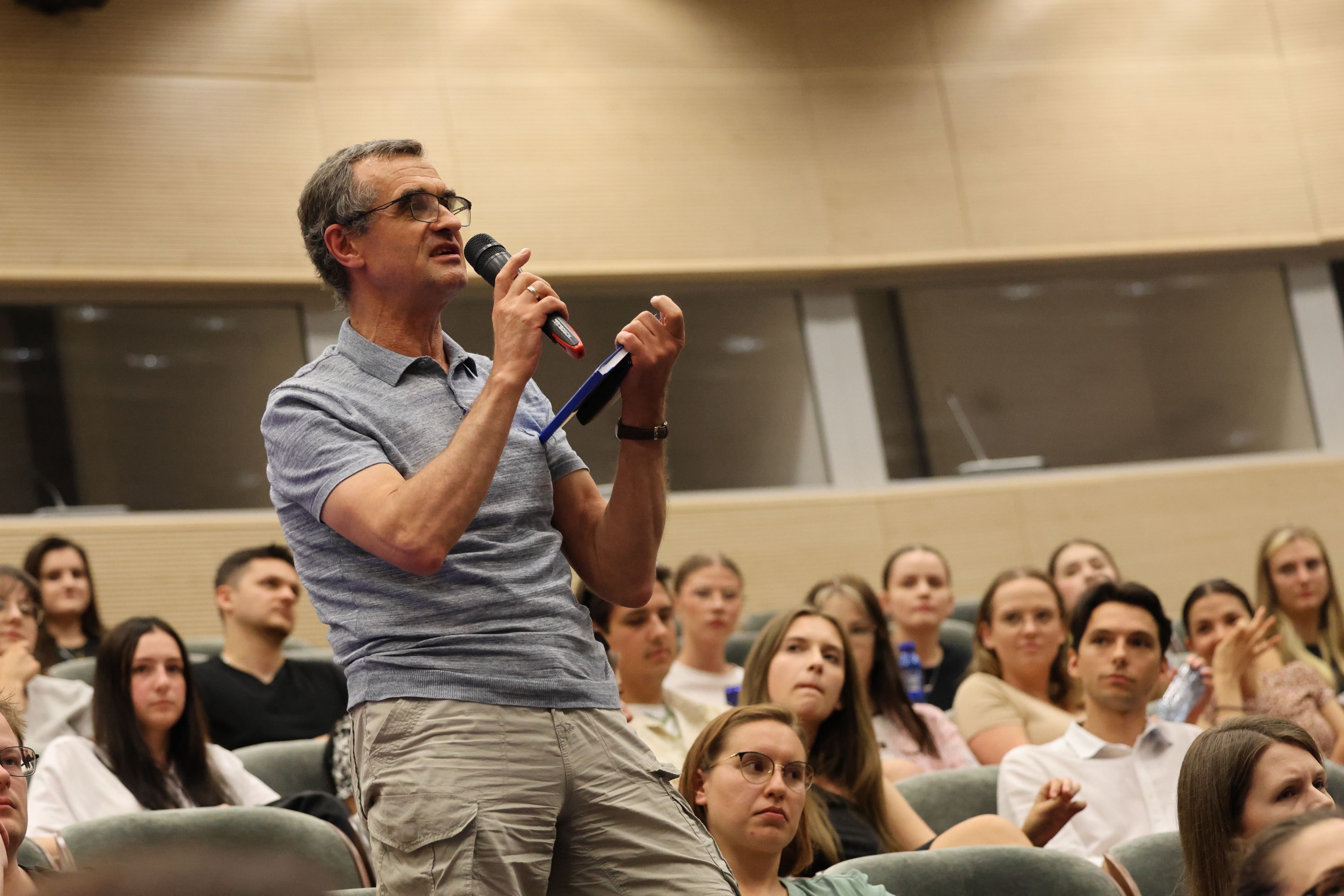 Następnie prof. dr hab. Andriy Sybirnyy przybliżył zgromadzonym sylwetkę noblisty. W spotkaniu wzięli udział studenci i naukowcy z Uniwersytetu Rzeszowskiego. Zaproszony noblista wygłosił wykład, w którym przybliżył zgromadzonym tajniki zgłębiania nauki w wykładzie pn. My science journey.