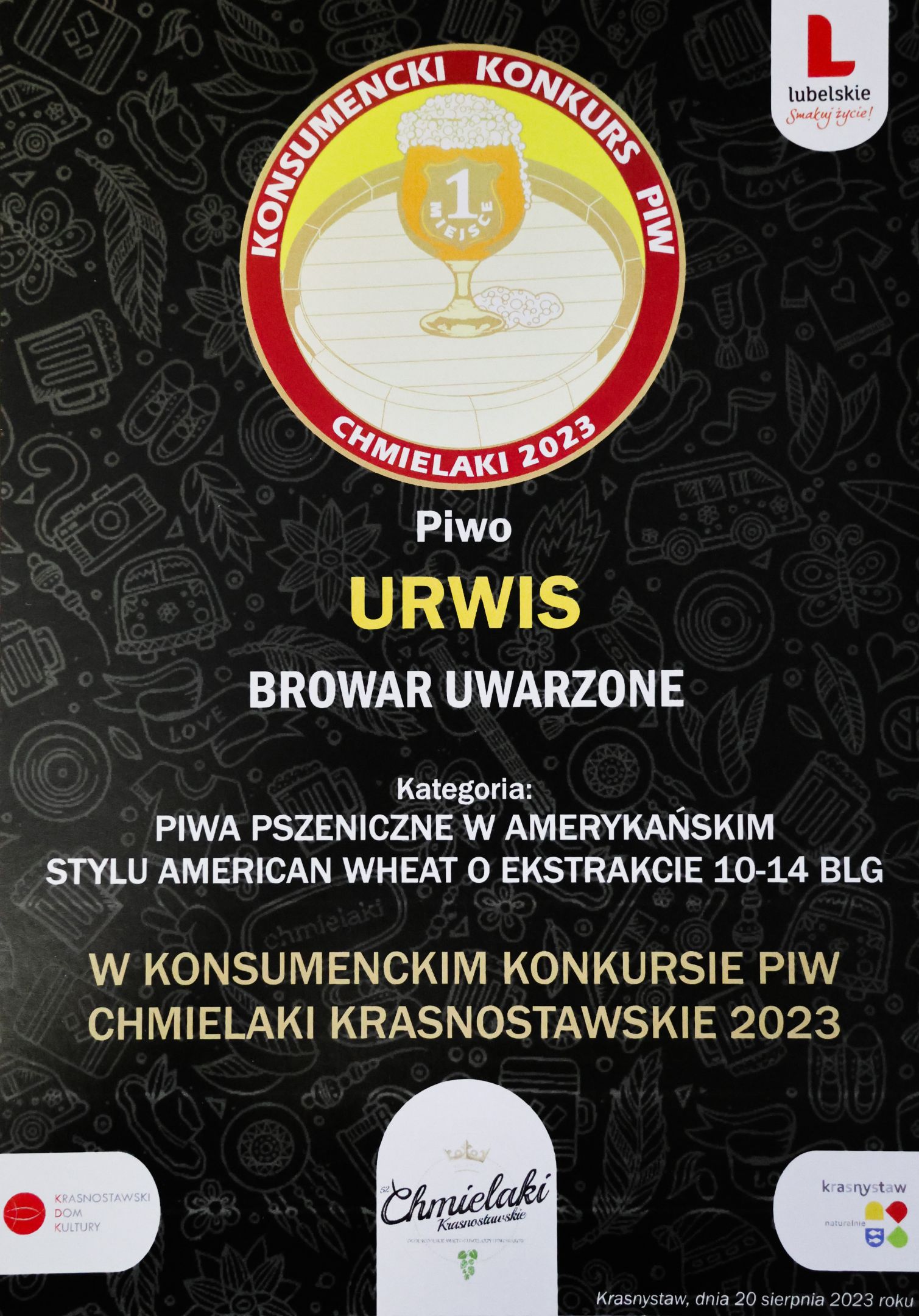 URwis zwyciężył w kategorii 11, obejmującej piwa pszeniczne w stylu amerykańskim - American Wheat, o ekstrakcie 10-14 podczas 52. Chmielaków Krasnostawskich.