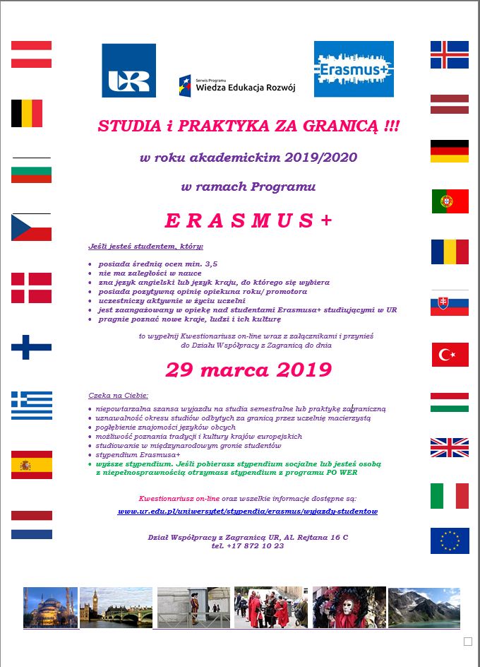 Studia i praktyka za granicą - ERASMUS+