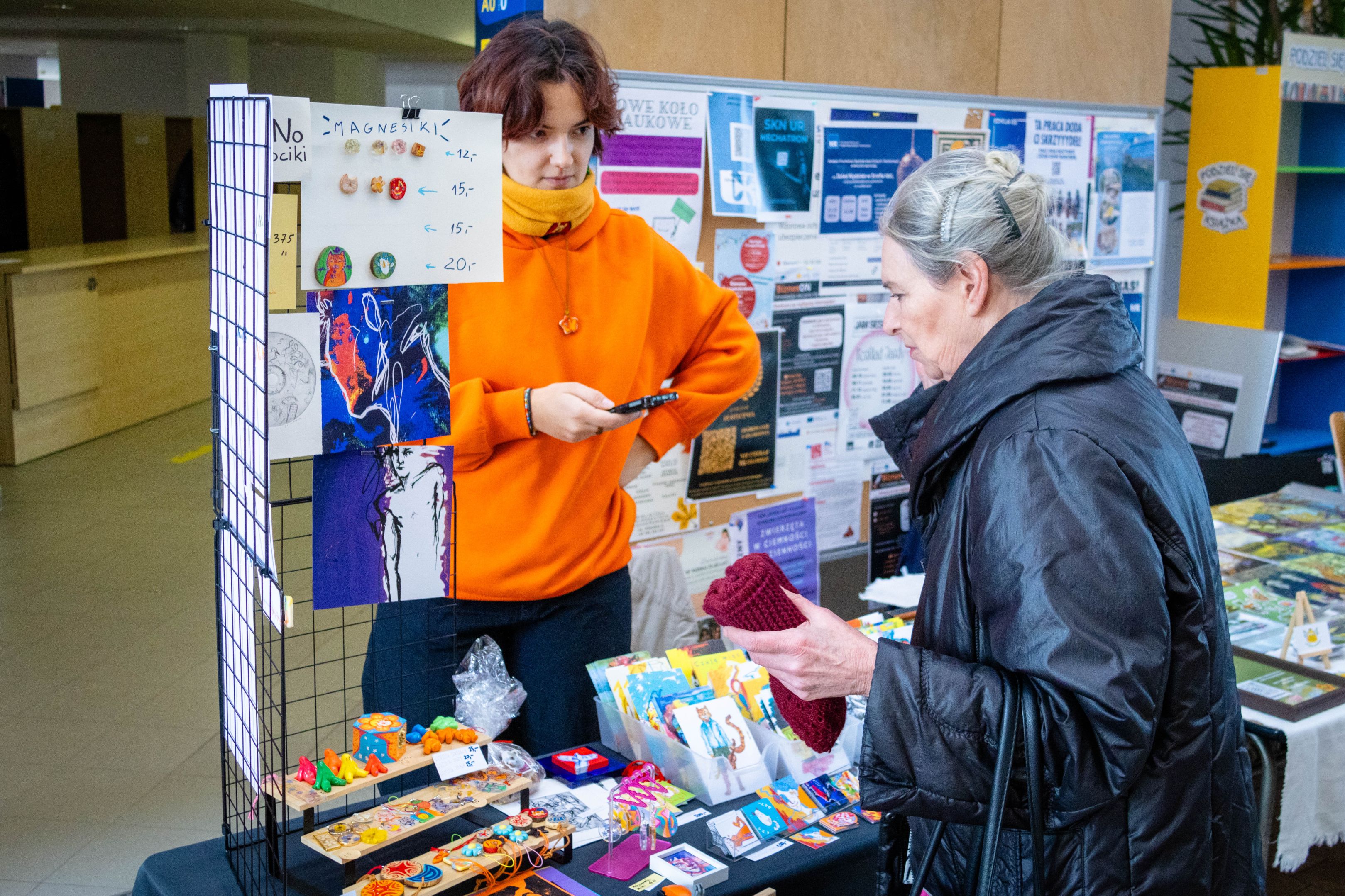 Wydarzenie miało także wymiar integracyjny – uczestnicy chętnie zatrzymywali się, by porozmawiać, wymienić się doświadczeniami i wspólnie poczuć klimat zbliżających się Świąt. Świąteczny Kiermasz był doskonałym przykładem studenckiej inicjatywy, która łączyła troskę o środowisko, wspólnotowość oraz radość płynącą z przedświątecznego czasu.