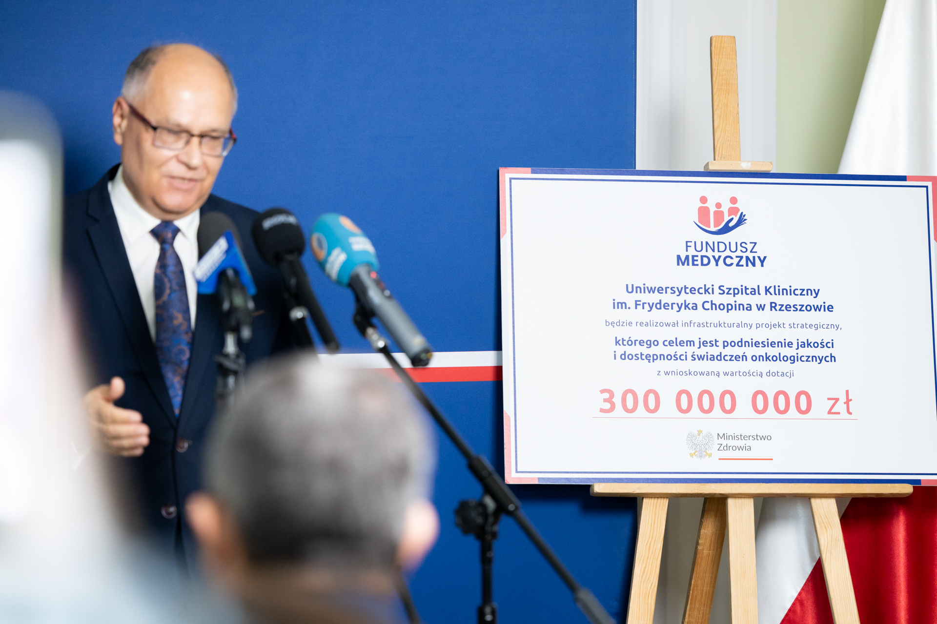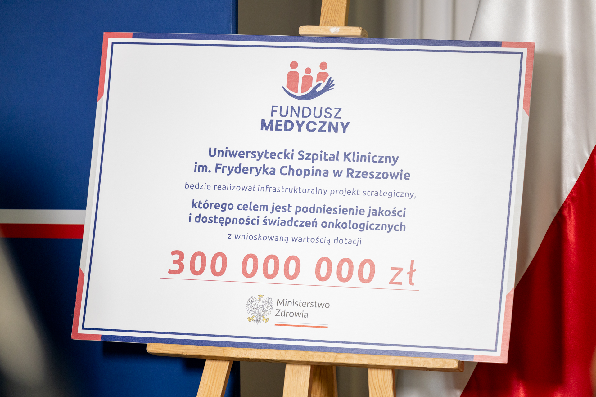 Minister Zdrowia dokonał rozstrzygnięcia konkursu w ramach rozdysponowania środków z Funduszu Medycznego. Uniwersytecki Szpital Kliniczny im. Fryderyka Chopina w Rzeszowie, którego organem prowadzącym jest Uniwersytet Rzeszowski otrzymał 300 000 000 zł. Pieniądze zostaną przeznaczone na realizację projektu „Rozbudowa Uniwersyteckiego Szpitala Klinicznego im. Fryderyka Chopina w Rzeszowie w zakresie onkologii” w Świlczy.