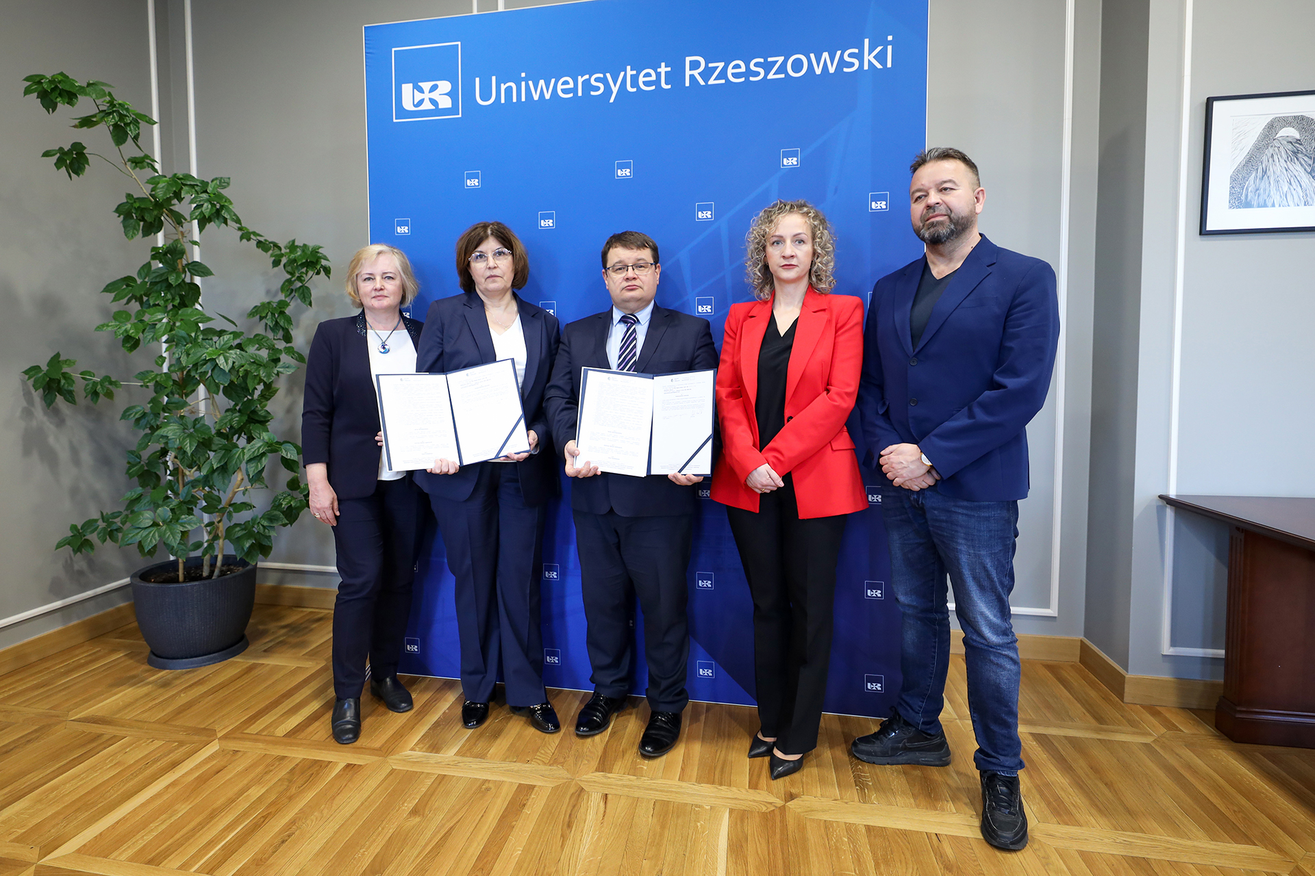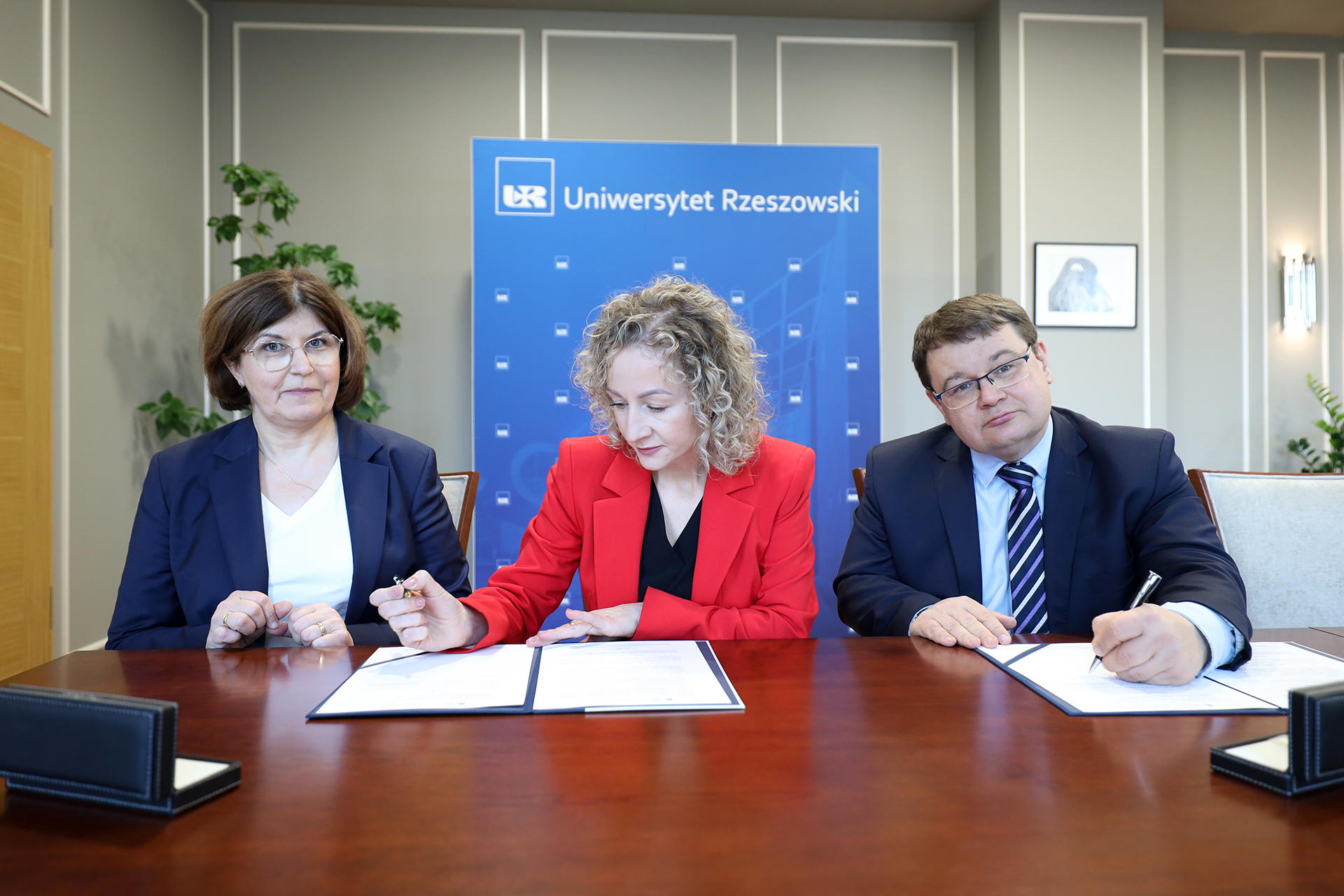 W podpisaniu dokumentu wzięli udział przedstawiciele obu instytucji. Uniwersytet Rzeszowski reprezentował Rektor, prof. dr hab. n. med. Adam Reich. Ze strony Stowarzyszenia Pomocy Dzieciom i Młodzieży, będącego liderem całego przedsięwzięcia, umowę sygnowały: Pani Joanna Ziobro – Kierownik projektu oraz Pani Jolanta Karpińska-Ciuba – Dyrektor Branżowego Centrum Umiejętności w dziedzinie pomocy społecznej.
