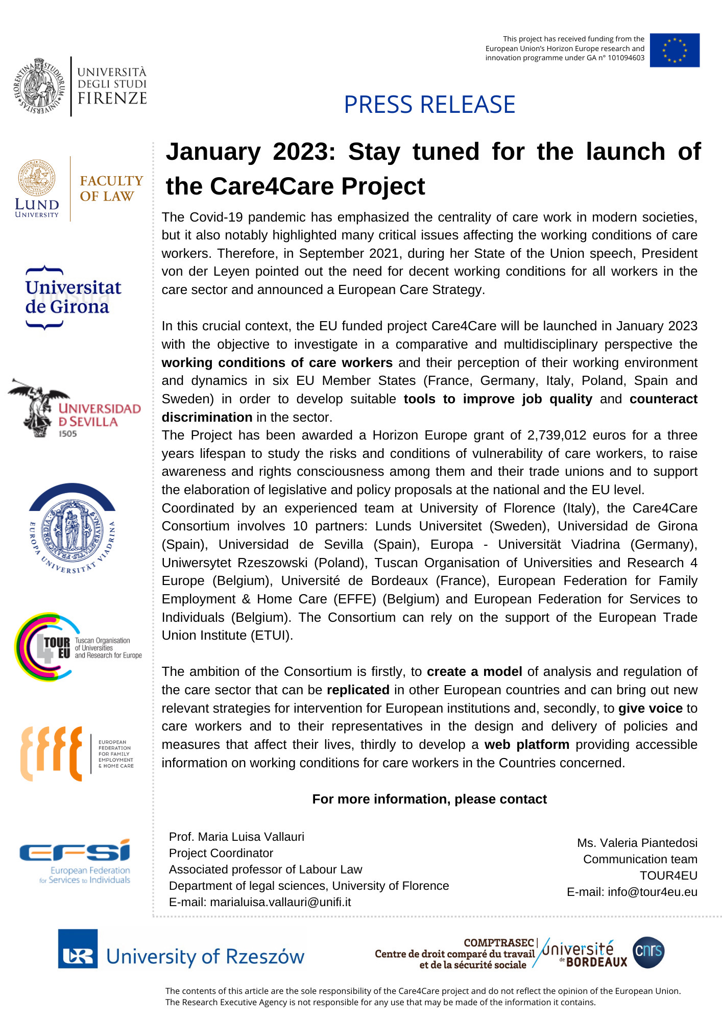 Projekt realizowany będzie przez Uniwersytet Rzeszowski z 9 partnerami z Włoch, Szwecji, Hiszpanii, Niemiec, Francji i Belgii. Liderem projektu jest Uniwersytet Florencki.