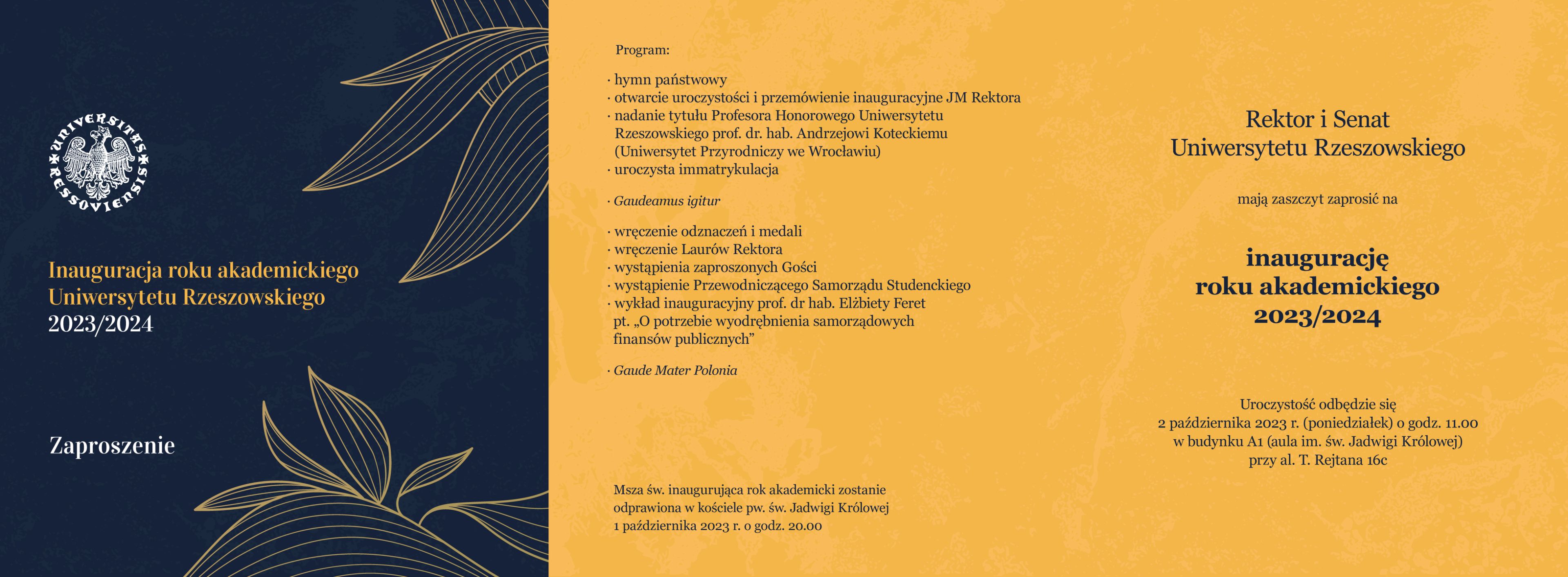 Rektor i Senat Uniwersytetu Rzeszowskiego mają zaszczyt zaprosić na inaugurację roku akademickiego 2023/2024