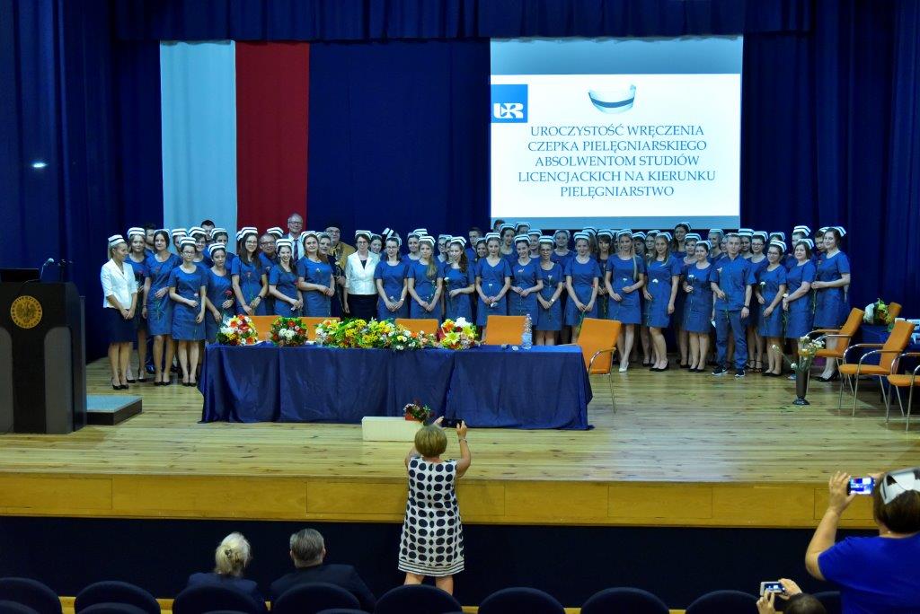 Kulminacyjnym punktem uroczystości, po złożeniu przyrzeczenia pielęgniarskiego zawartego w Kodeksie Etyki Zawodowej Pielęgniarski i Położnej Rzeczypospolitej Polskiej było nałożenie symbolicznych czepków studentom przez: dr n. o zdr. Annę Fąfarę – Opiekuna III roku – absolwentów, dr n o zdr. Małgorzatę Gajdek – Koordynatora Praktyk, dr n.med. Małgorzatę Marć – wice-Dyrektora Instytutu Pielęgniarstwa i Nauk o Zdrowiu; mgr Elżbietę Sułyk, mgr Anitę Drążek. Po otrzymaniu symbolicznych czepków oraz znaczków pielęgniarskich (od studentów II roku pielęgniarstwa) absolwenci odśpiewali hymn pielęgniarki przy profesjonalnym wsparciu Chóru Akademickiego Uniwersytetu Rzeszowskiego pod dyrekcją dr Katarzyny Sobas.