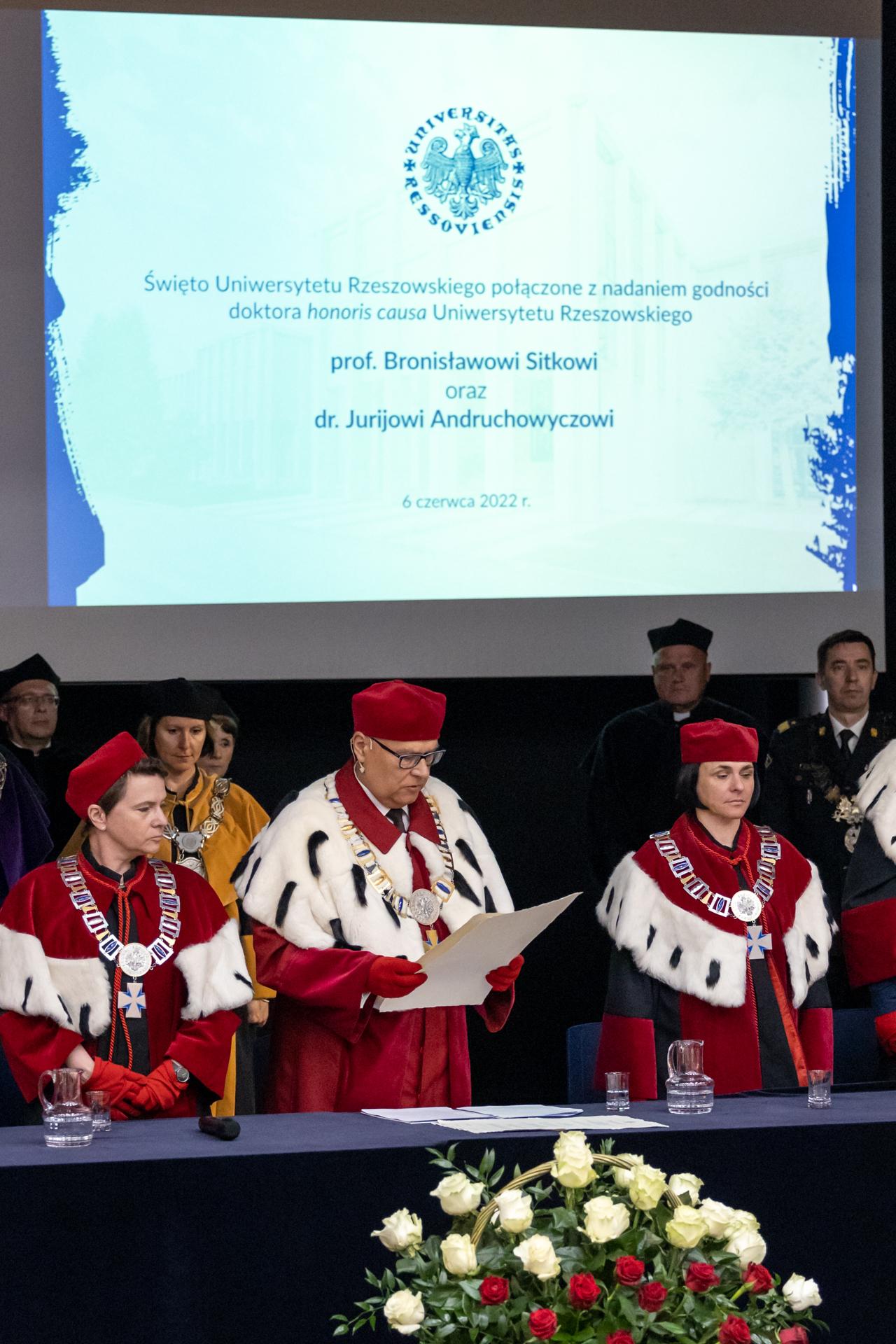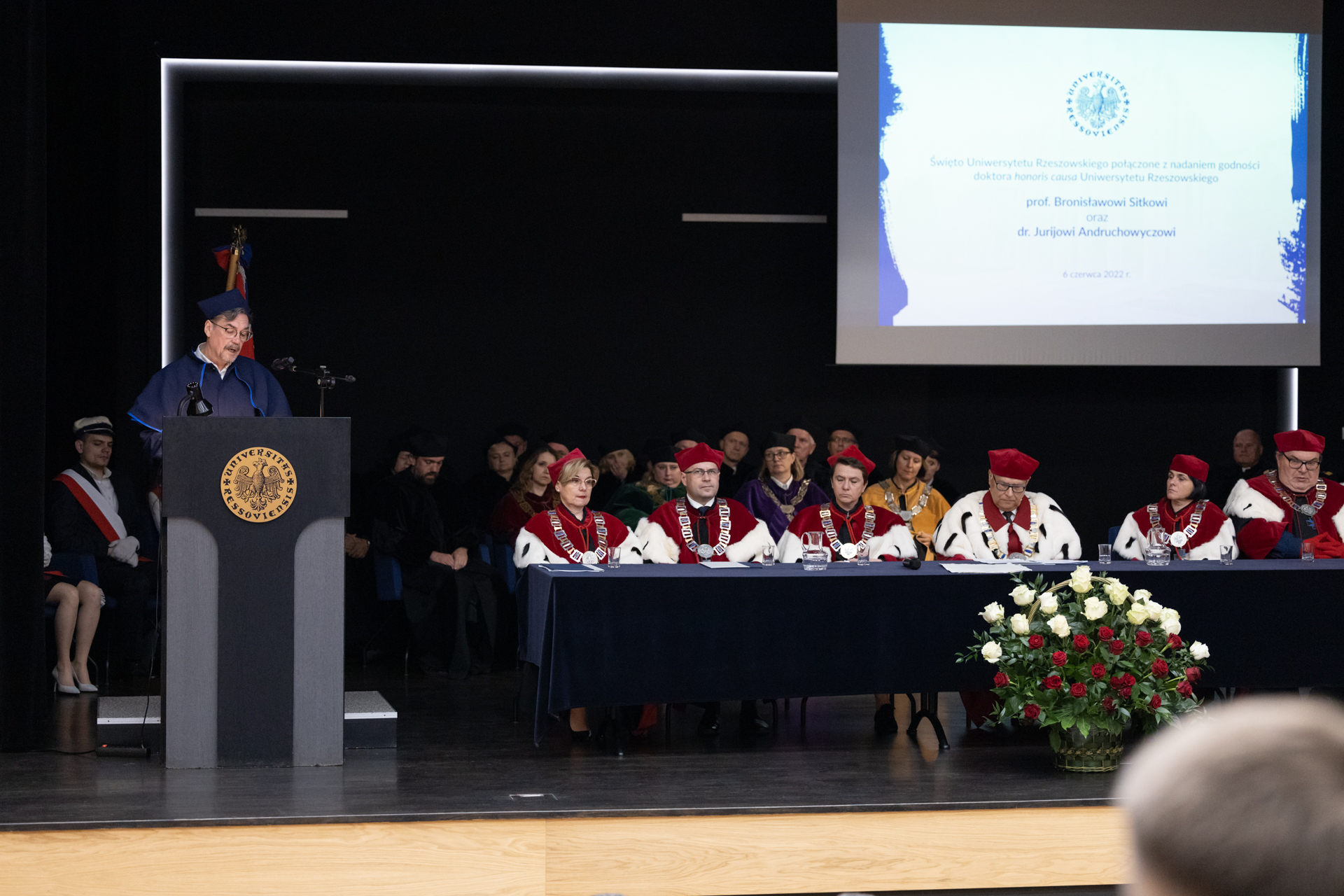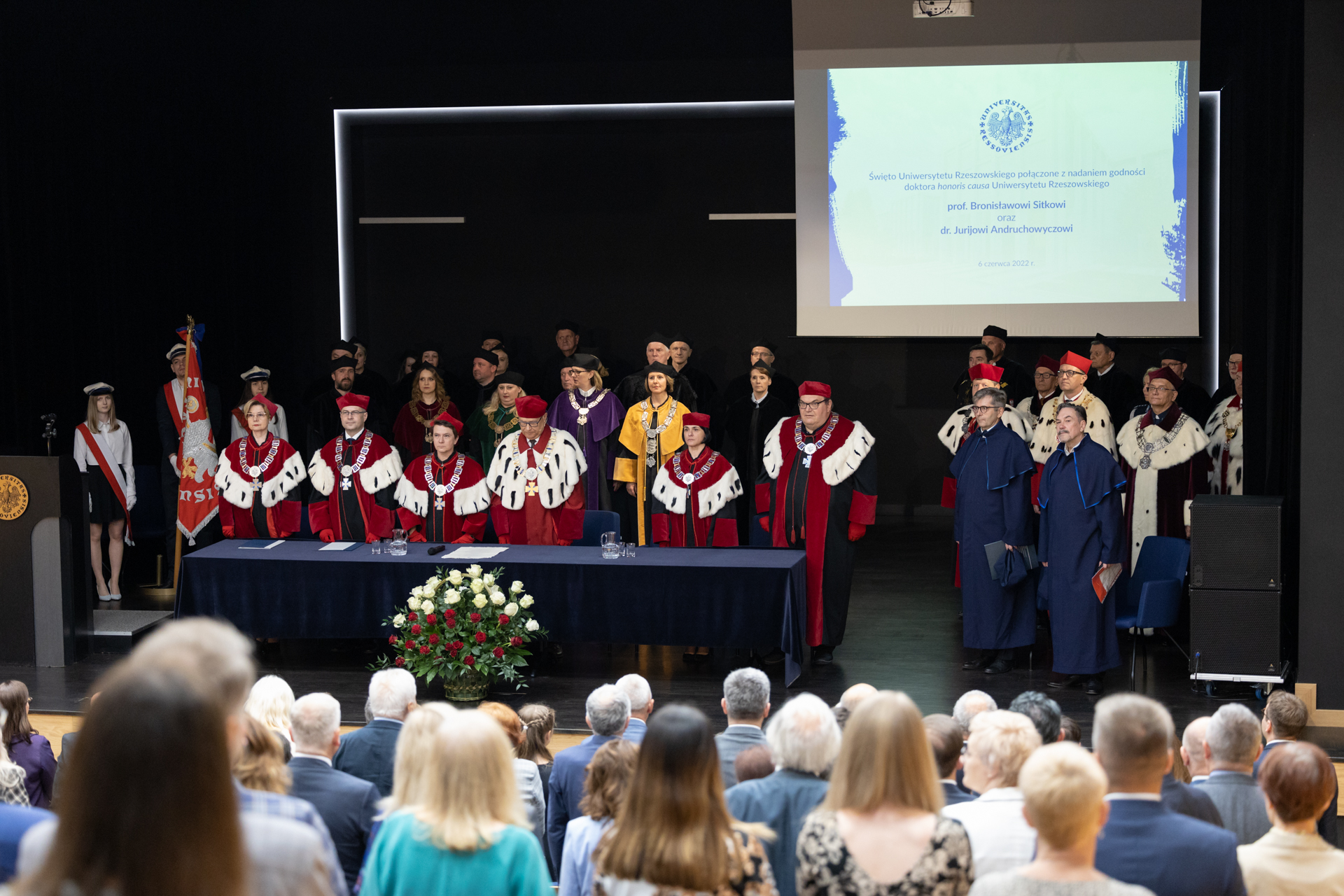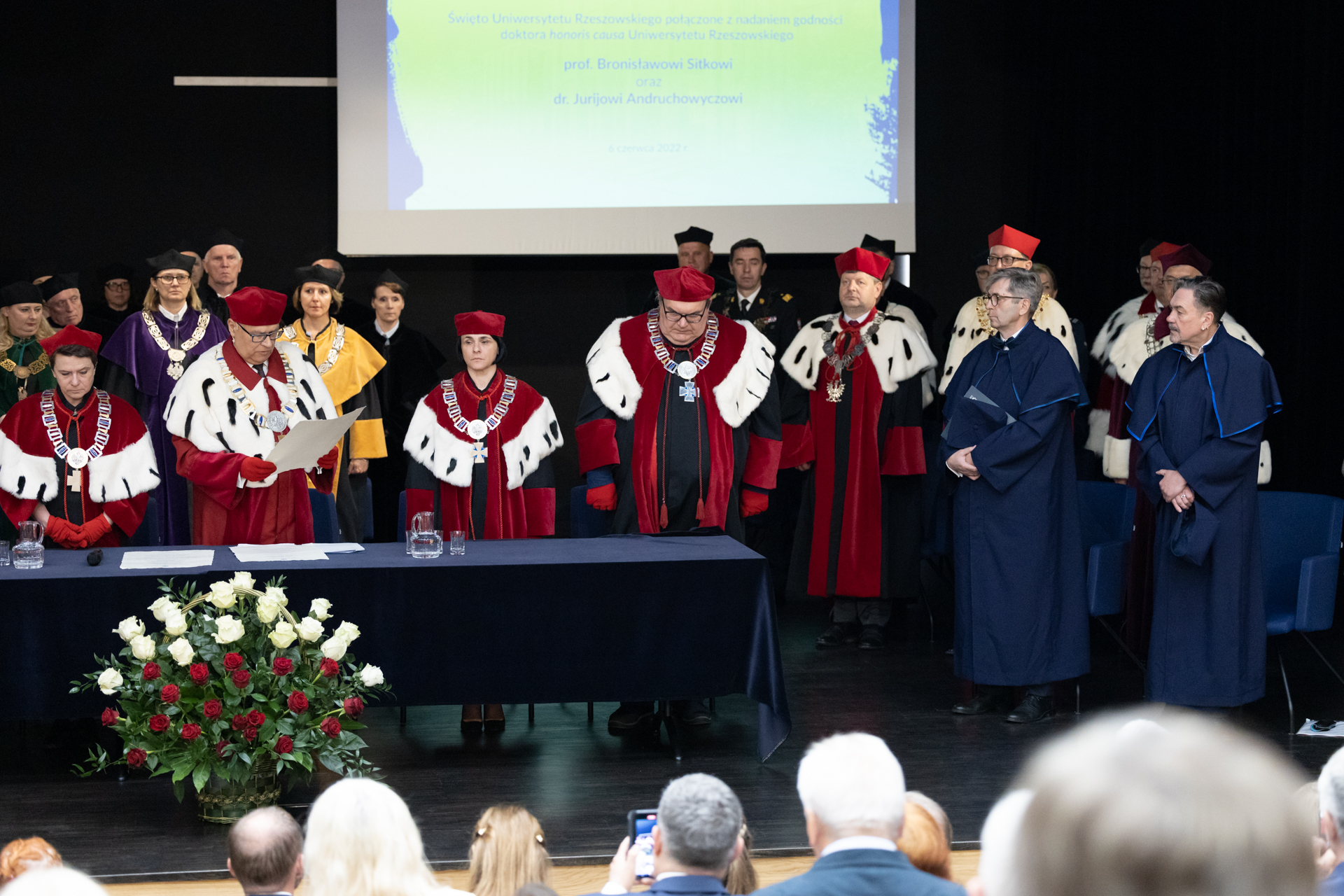 6 czerwca 2022 r. w Uniwersytecie Rzeszowskim odbyła się uroczystość nadania godności Doktora Honoris Causa prof. dr. hab. Bronisławowi Sitkowi oraz dr. Jurijowi Andruchowyczowi.