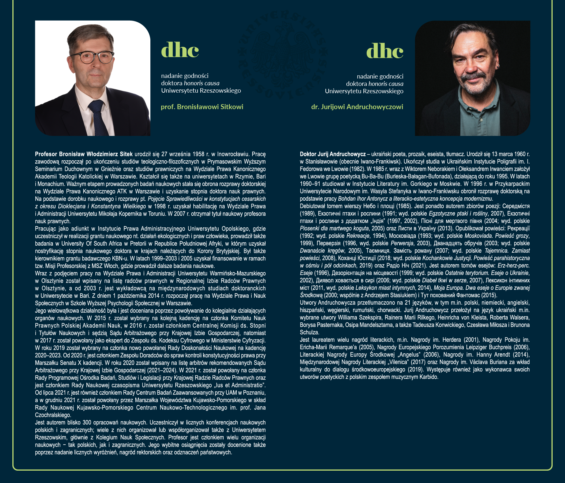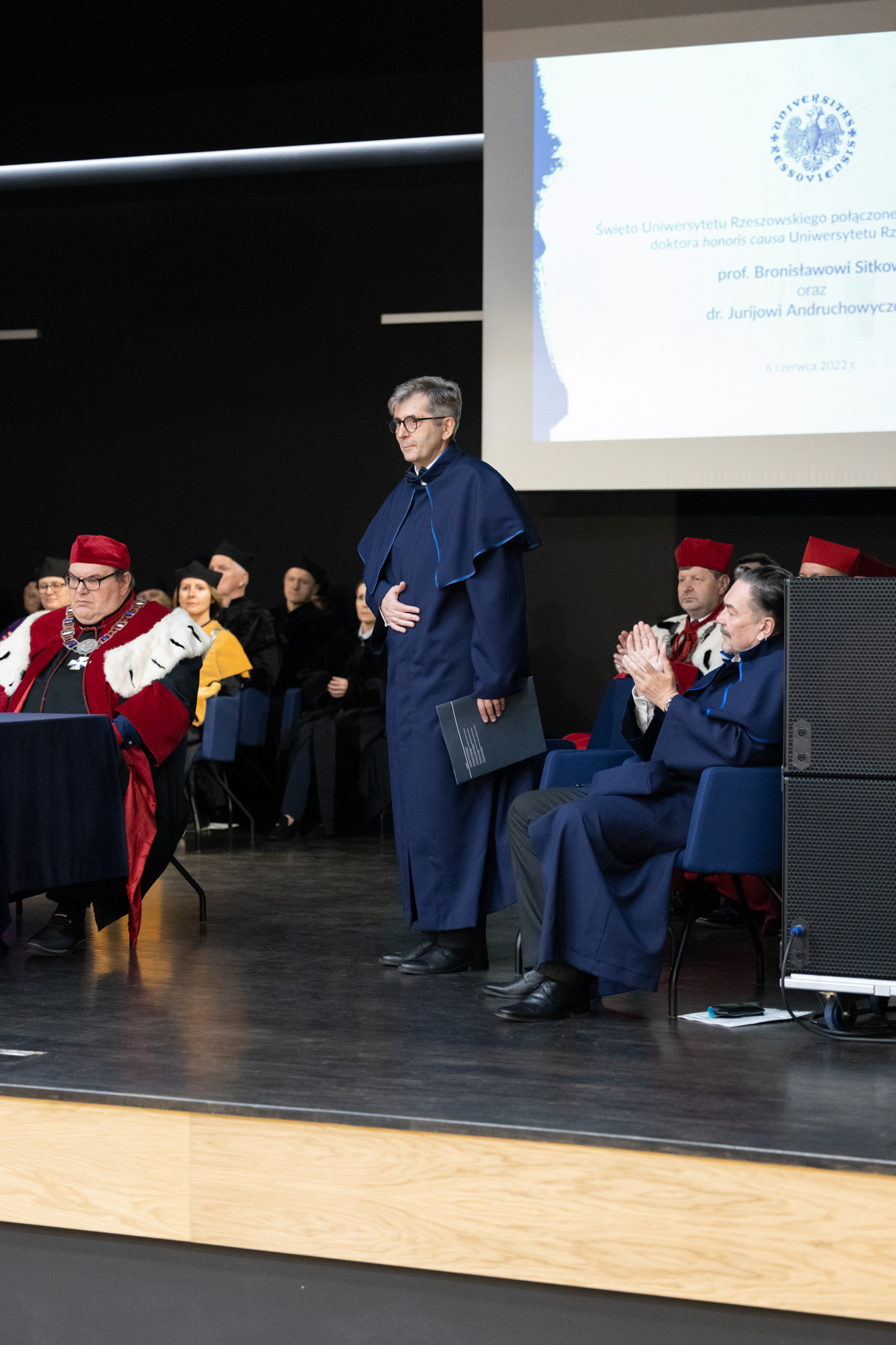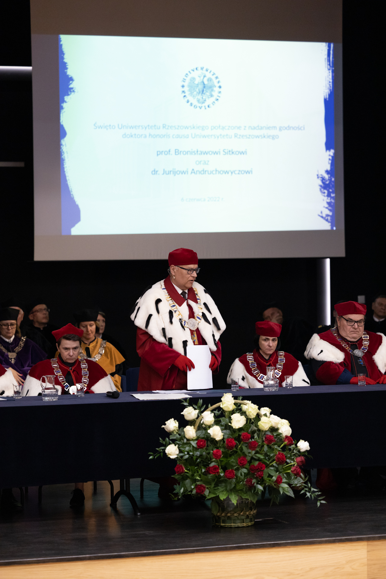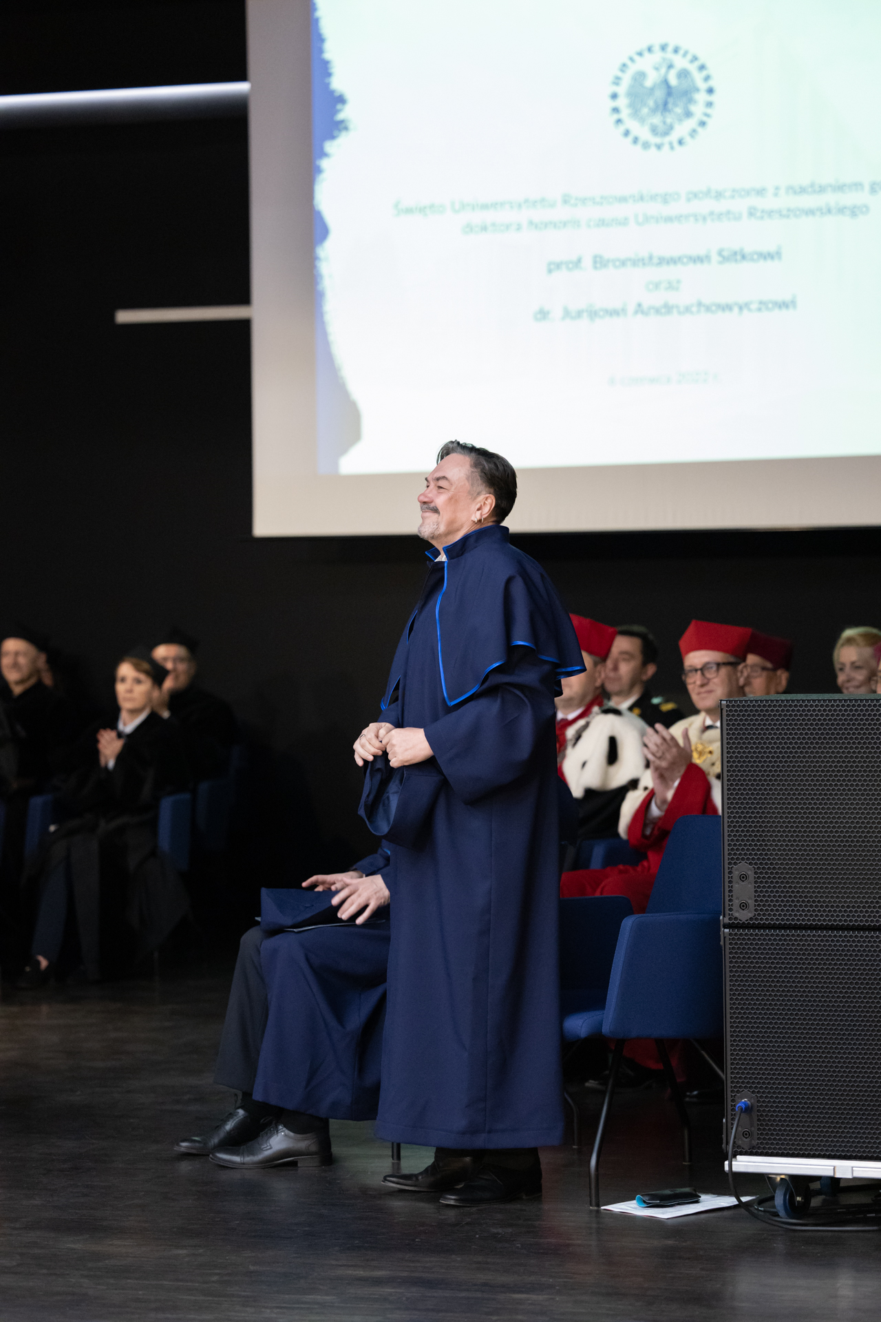 6 czerwca 2022 r. w Uniwersytecie Rzeszowskim odbyła się uroczystość nadania godności Doktora Honoris Causa prof. dr. hab. Bronisławowi Sitkowi oraz dr. Jurijowi Andruchowyczowi.