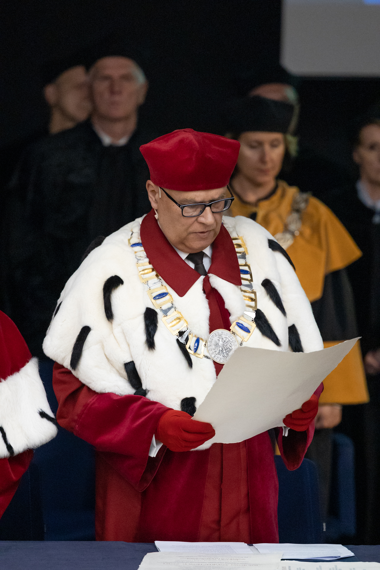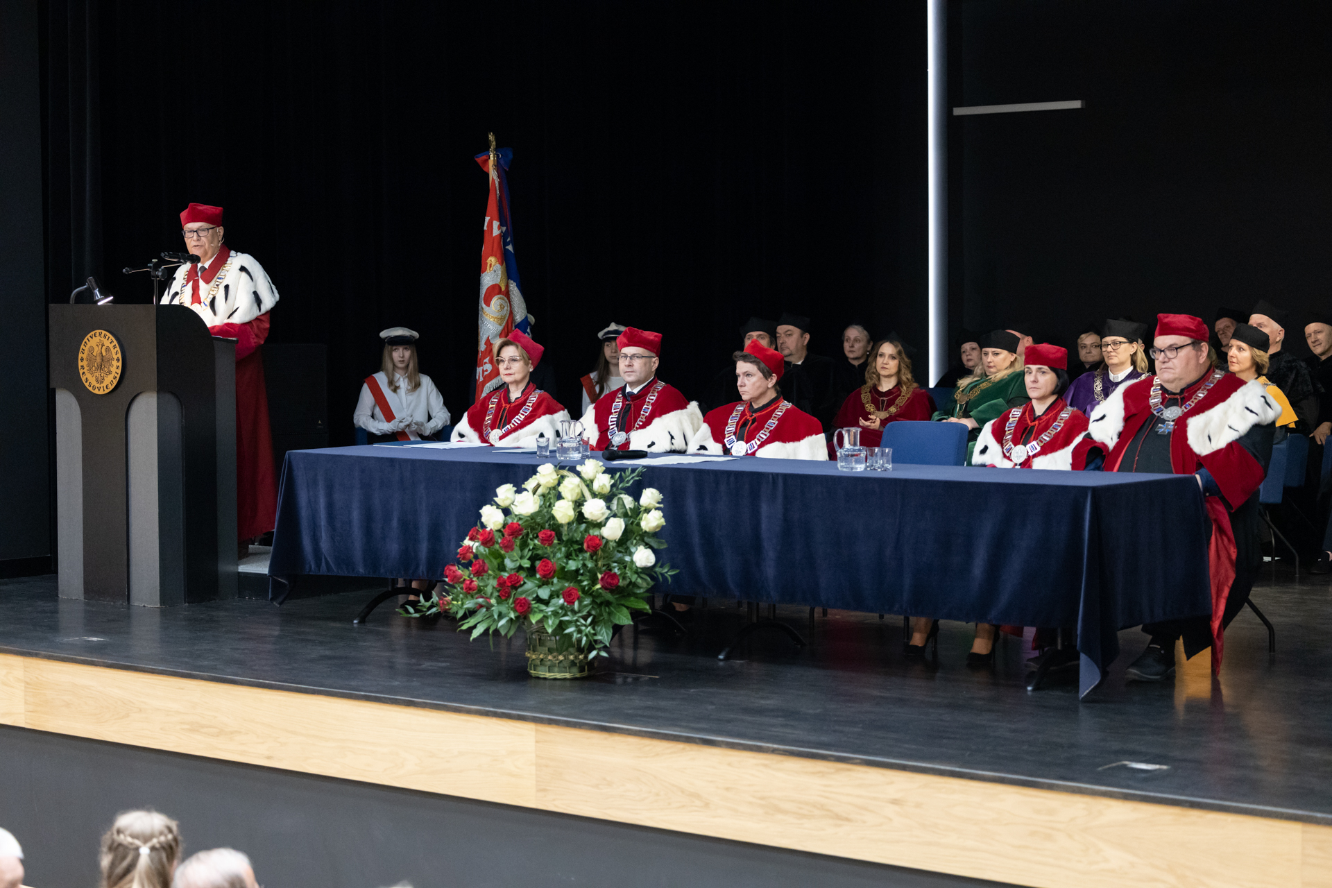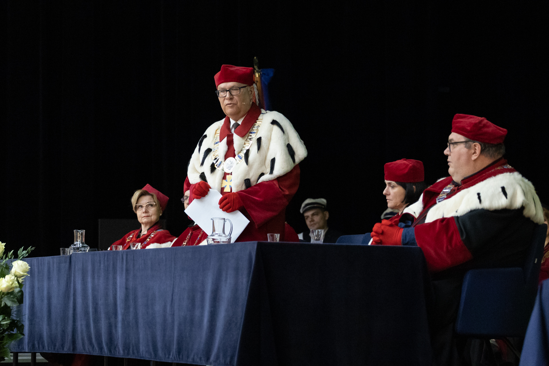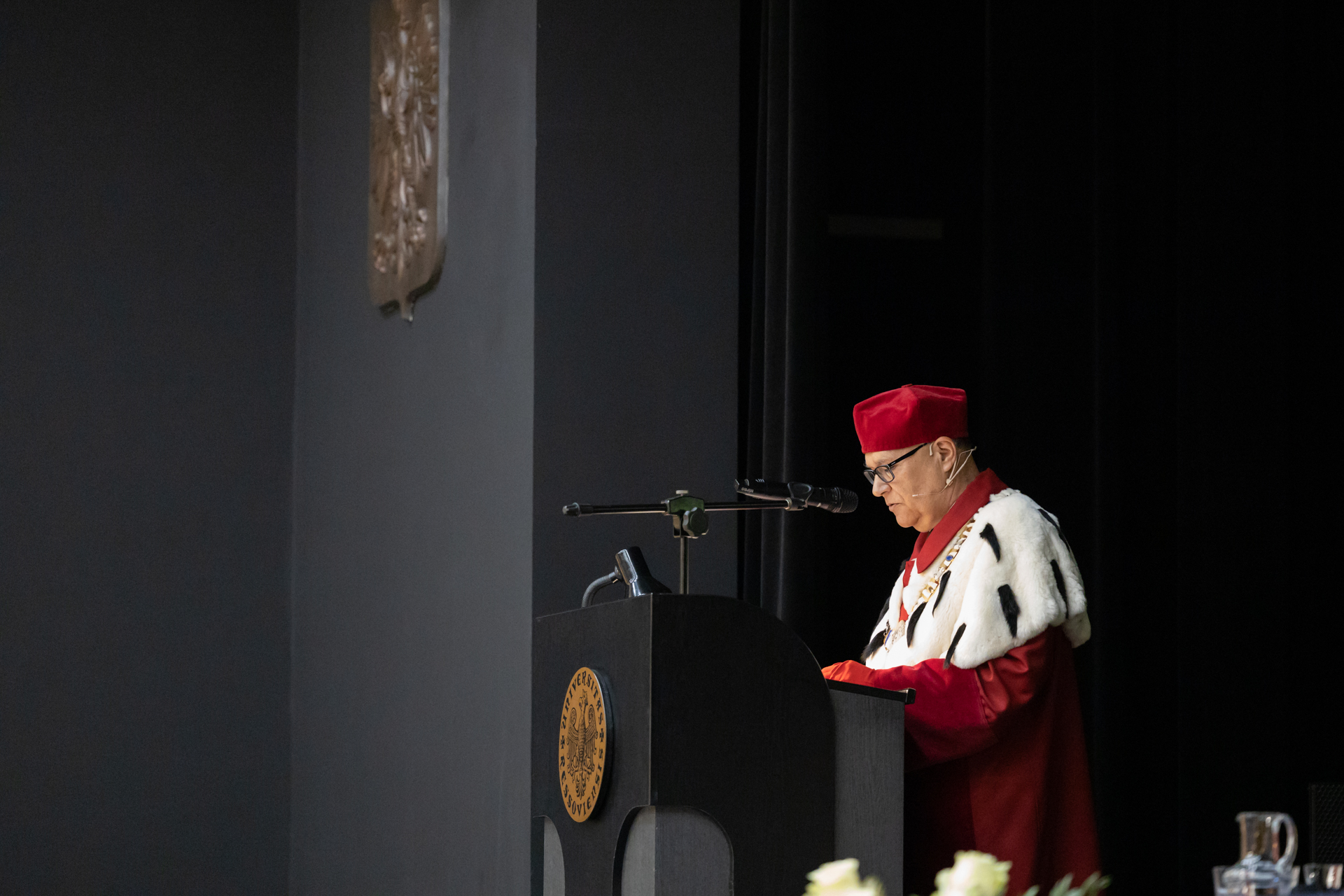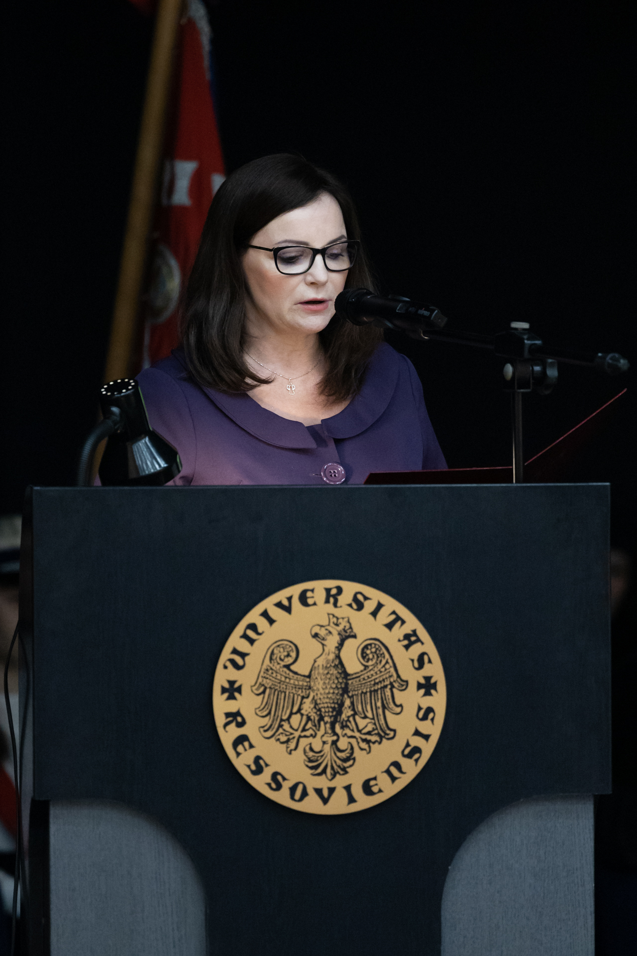 Po wysłuchaniu Gaude Mater Polonia JM prof. dr hab. Sylwester Czopek powitał zgromadzonych gości, a następnie przekazał głos reprezentującej wnioskujące o nadanie godności Doktora Honoris Causa profesorowi Bronisławowi Sitkowi Kolegium Nauk Społecznych dr hab. Elżbiecie Feret, prof. UR, Prorektor ds. KNS.