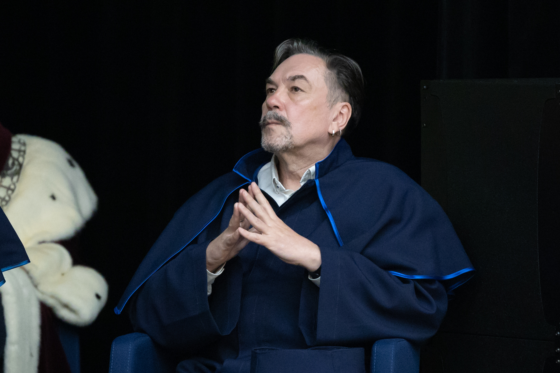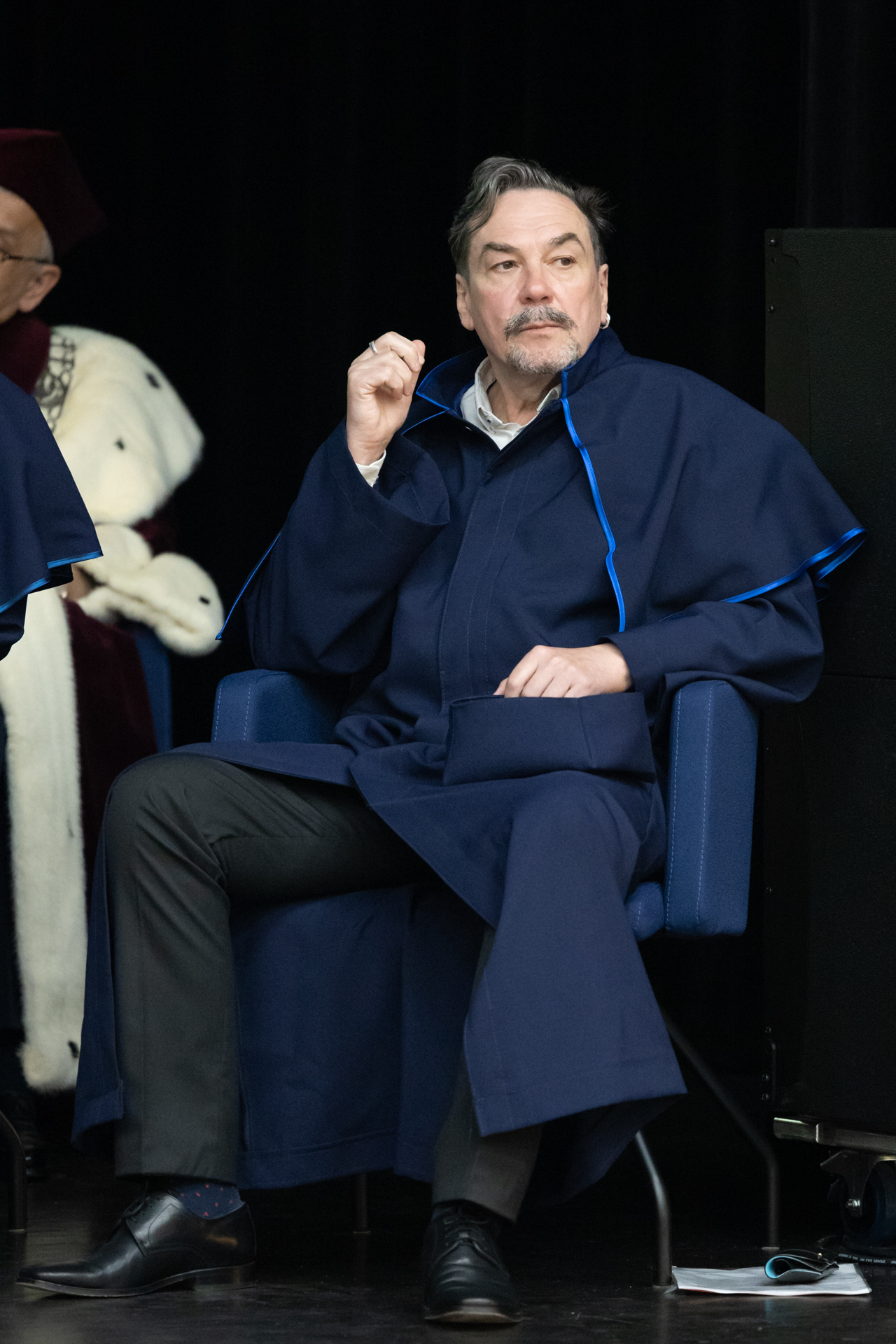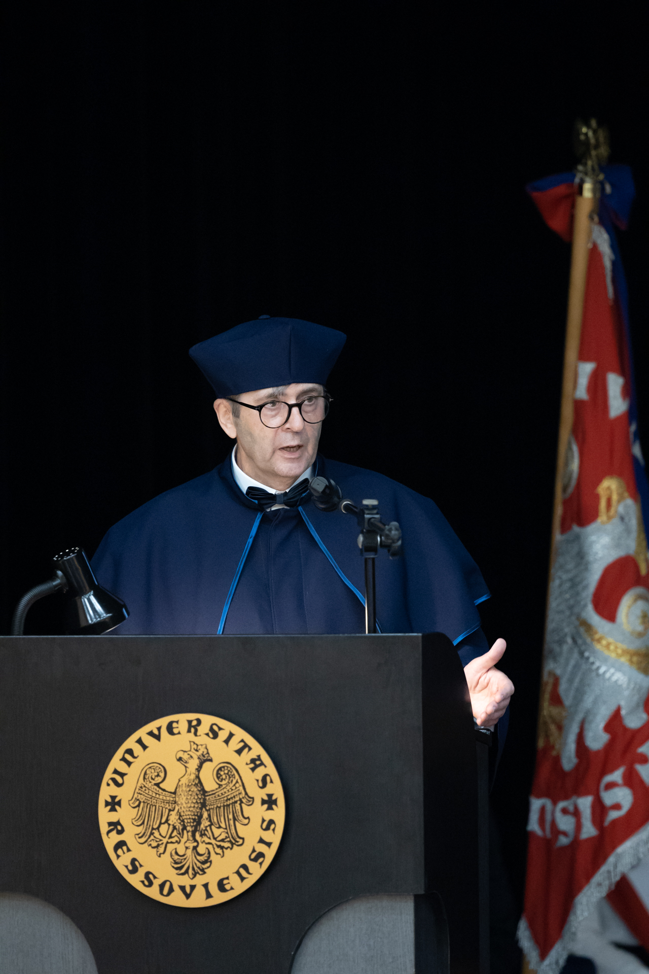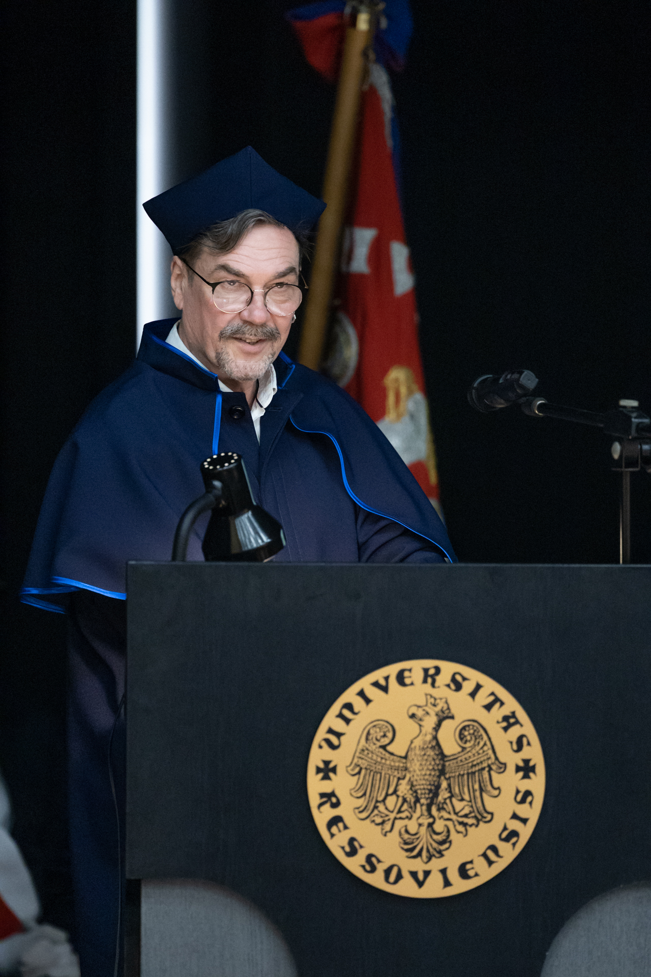 Drugą część uroczystości prowadził prof. dr hab. Paweł Grata – Prorektor ds. Kolegium Nauk Humanistycznych, które było wnioskodawcą nadania godności Doktora Honoris Causa UR dr. Jurijowi Andruchowyczowi. Profesor Paweł Grata przedstawił procedurę związaną z przewodem doktorskim. Laudację wygłosił prof. dr hab. Janusz Pasterski – Dyrektor Instytutu Polonistyki i Dziennikarstwa UR. Po oficjalnym wręczeniu dyplomu głos zabrał dr Jurij Andruchowycz.