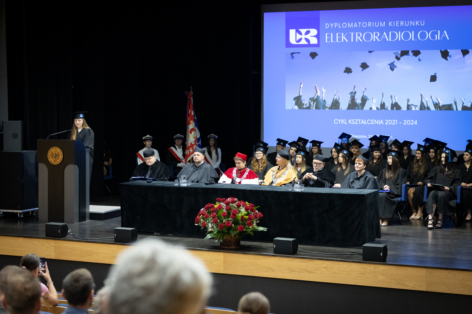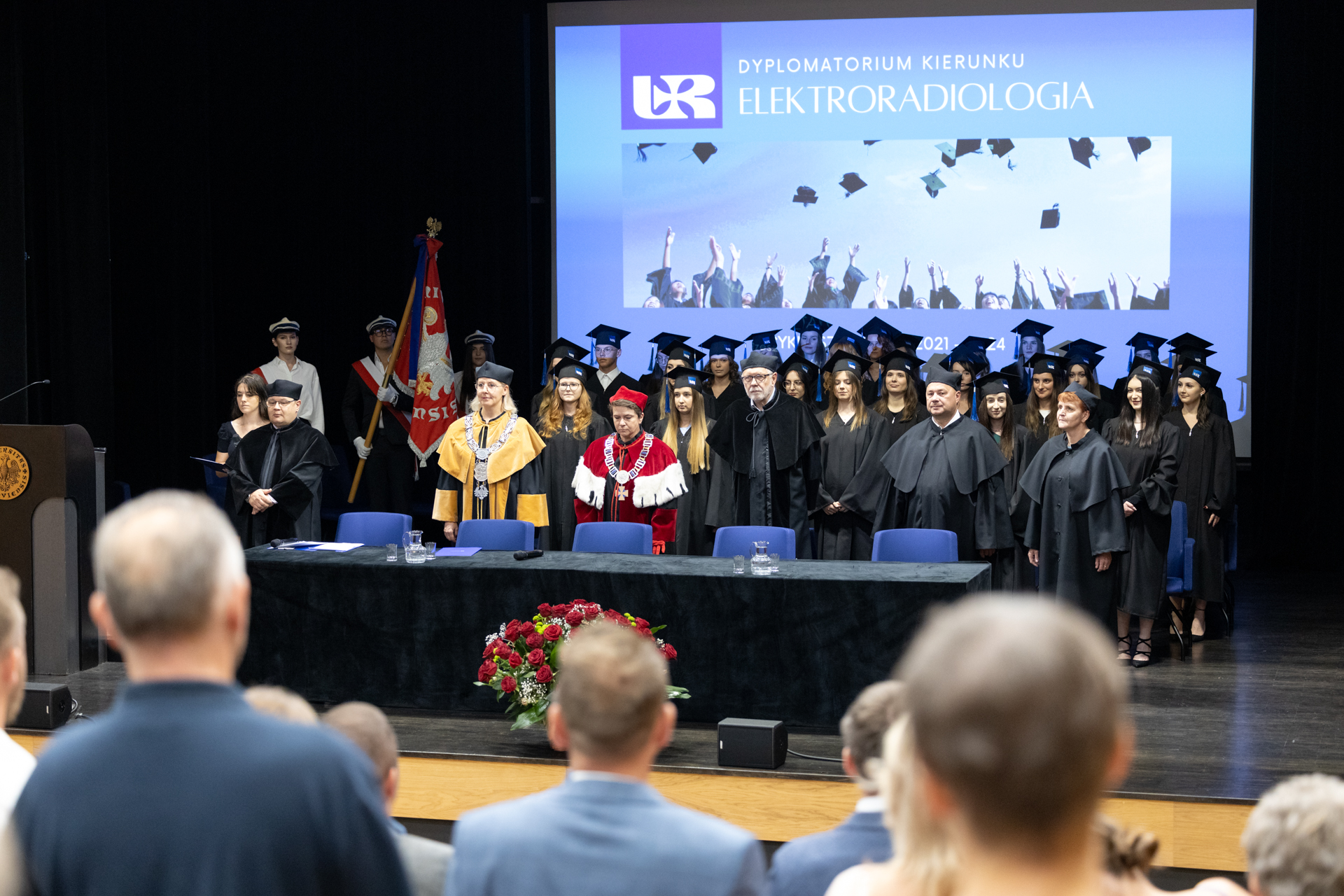 W dniu 24.07.2024 r. w Auli im. Świętej Jadwigi Królowej Uniwersytetu Rzeszowskiego odbyła się uroczystość wręczenia dyplomów licencjata absolwentom oraz listów gratulacyjnych dziekana Kolegium Nauk Medycznych dla wyróżnionych studentek za osiągnięcia naukowe i organizacyjne. Tegoroczne dyplomatorium było drugim uroczystym wręczeniem dyplomów absolwentom kierunku elektroradiologia.