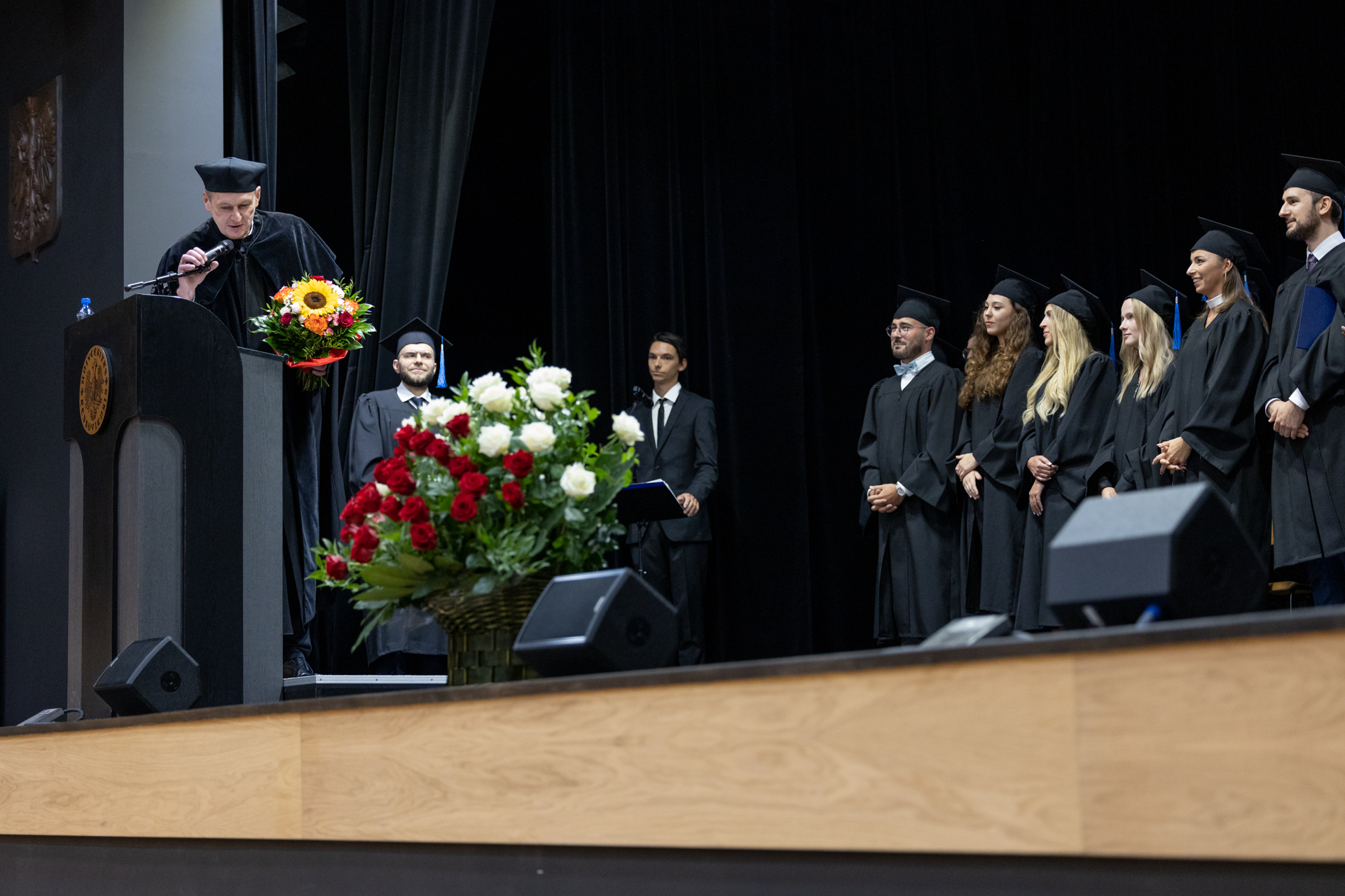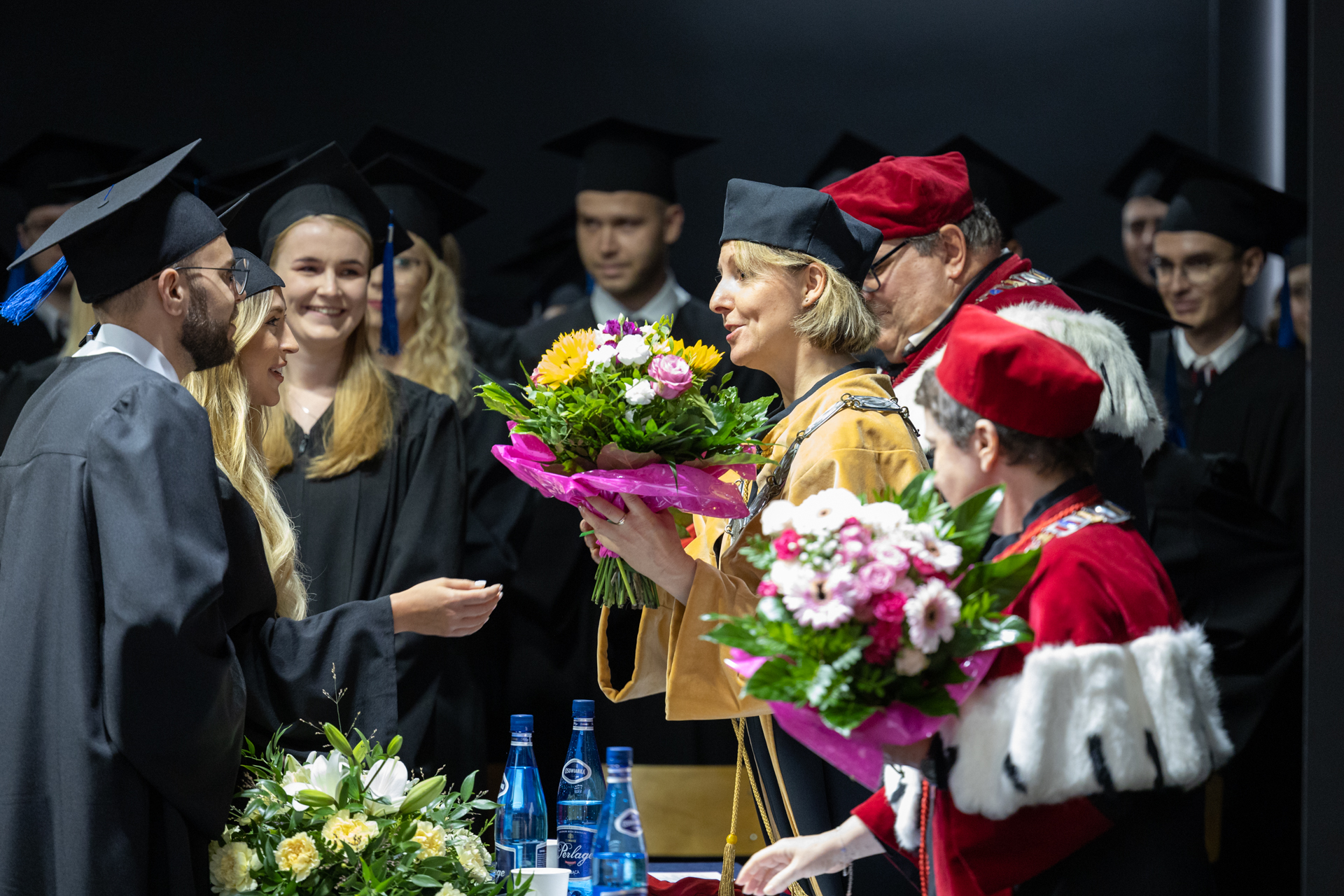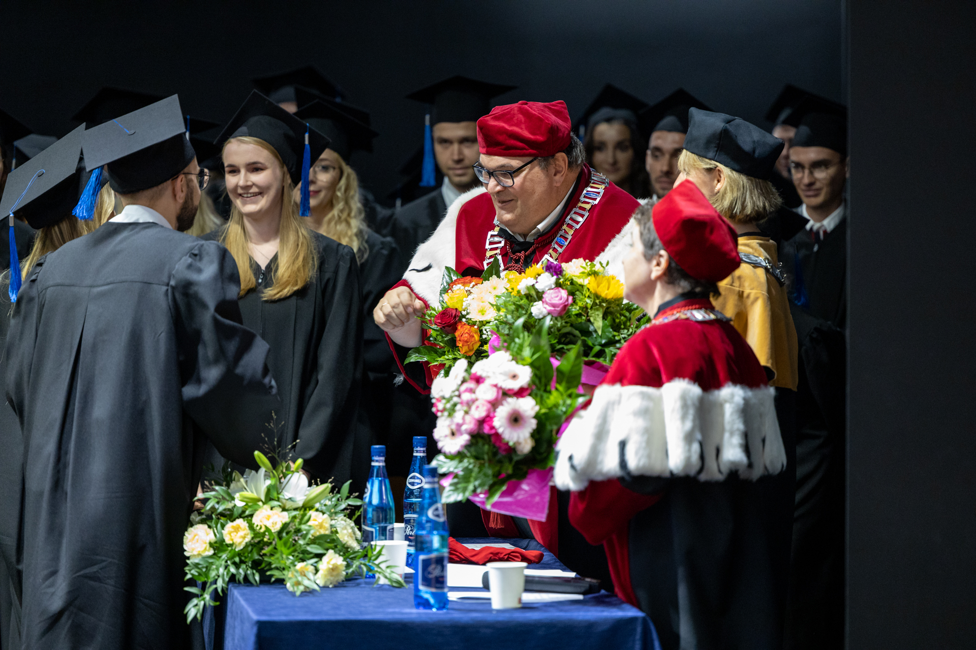 Dzisiejsza uroczystość to zwieńczenie i podsumowanie sześcioletniego złożonego procesu dydaktycznego. Gratulujemy i życzymy sukcesów w pełnieniu misji lekarskiej. Dziękujemy za zaufanie i wybór naszej Uczelni. Mamy nadzieje, że czas nauki owocnie wykorzystają Państwo na swojej drodze zawodowej, a przyjaźnie nawiązane w czasie studiów przetrwają długie lata.