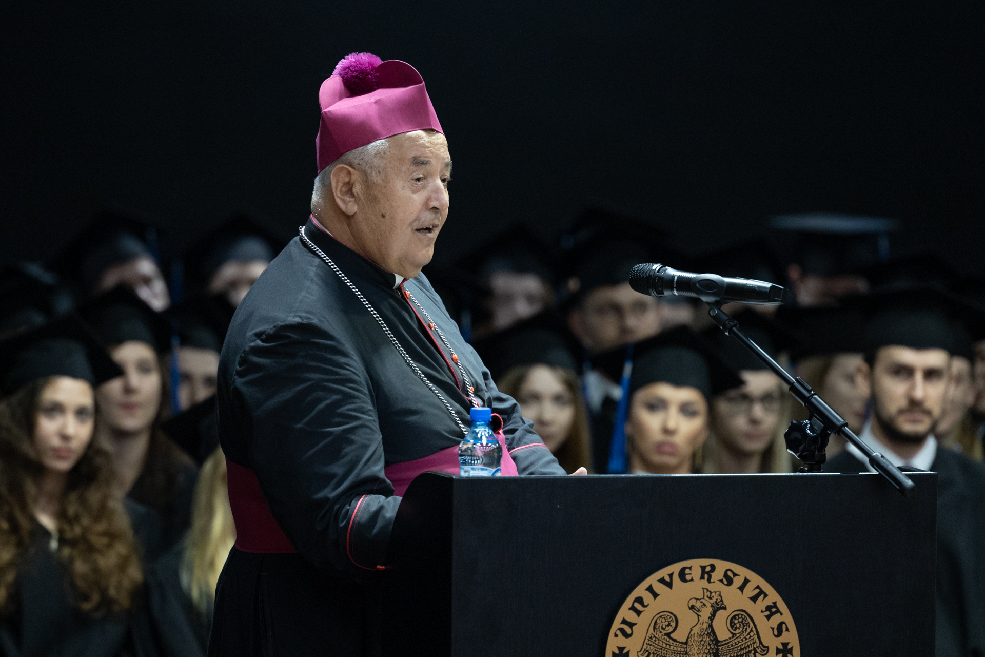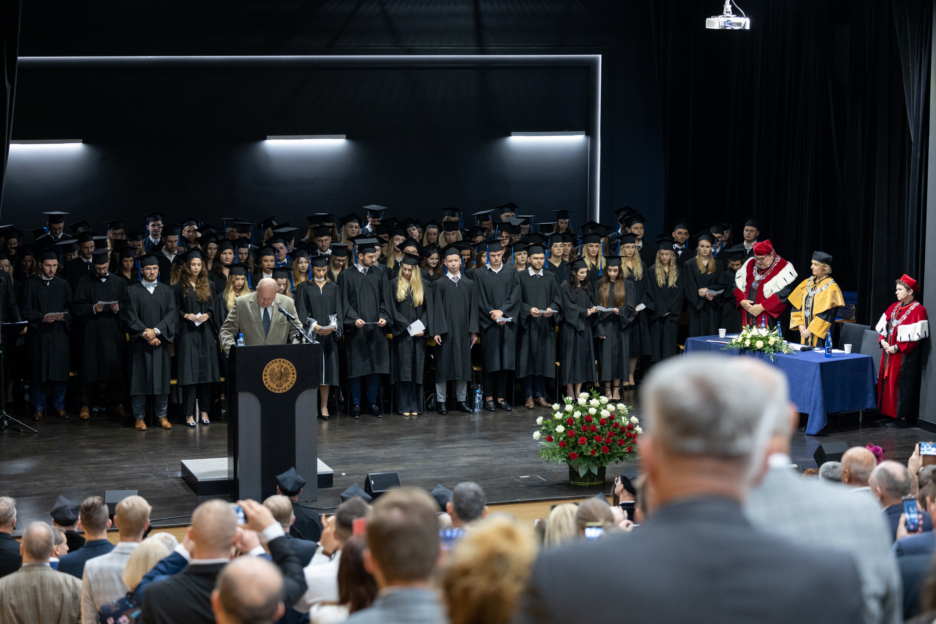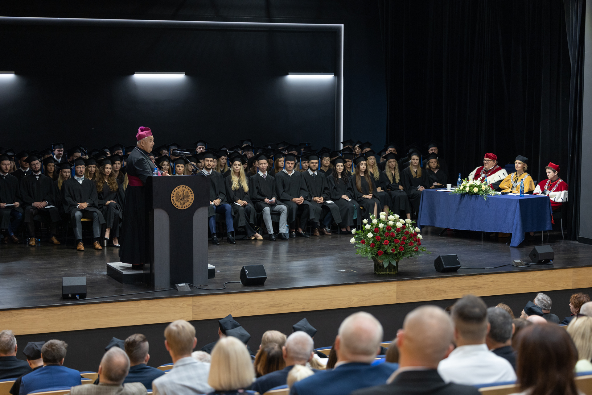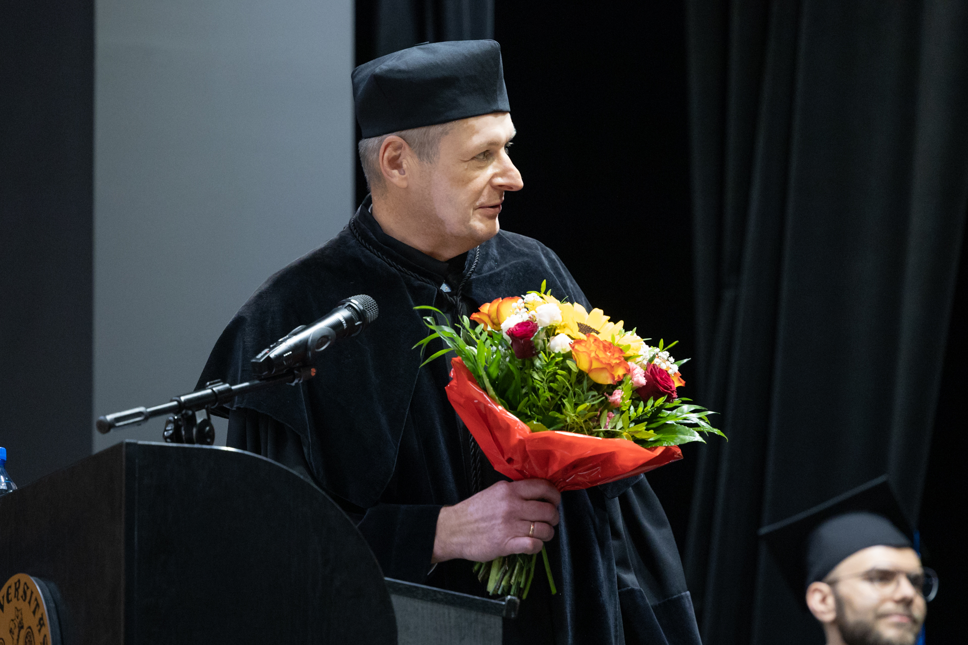 Dzisiejsza uroczystość to zwieńczenie i podsumowanie sześcioletniego złożonego procesu dydaktycznego. Gratulujemy i życzymy sukcesów w pełnieniu misji lekarskiej. Dziękujemy za zaufanie i wybór naszej Uczelni. Mamy nadzieje, że czas nauki owocnie wykorzystają Państwo na swojej drodze zawodowej, a przyjaźnie nawiązane w czasie studiów przetrwają długie lata.