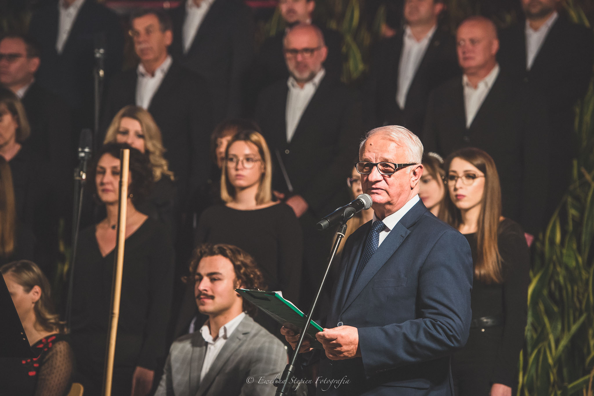 Skoro więc młodość in Auditorio A nulla apparuit, należało oczekiwać świeżej i niebanalnej prezentacji pieśni i piosenek patriotycznych, wybrzmiałych tego wieczora w tak licznych miejscach w Polsce. Rudymentem całego przedsięwzięcia był wybór zarówno utworów przeznaczonych do wykonania jak i autorów ich aranżacji. Obu tych najważniejszych selekcji dokonała Katarzyna Sobas, określając także aparat wykonawczy, który w warstwie instrumentalnej skonkretyzowany został w ramach tria jazzowego (Tomasz Jachym – fortepian, Jakub Kozłowski – kontrabas, gitara basowa, Mateusz Gębski – perkusja) oraz kwartetu smyczkowego Lejdis Quartet (Natalia Musz – skrzypce I, Natalia Kmita – skrzypce II, Ola Jarosińska – altówka, Monika Bieda-Kapias – wiolonczela). W warstwie wokalnej zaprezentować mogły się połączone chóry: Chór Akademicki UR, Chór Akord ZNP i SCK w Mielcu i Podkarpacki Chór Męski oraz znakomici soliści: Agnieszka Sobas i Kacper Bator. Pierwszą część koncertu wypełniły utwory zaaranżowane przez Macieja Janasa, pianistę i kompozytora związanego z krośnieńskim środowiskiem muzycznym. Jako pierwsza, tego listopadowego wieczoru, zabrzmiała „Pieśń konfederatów barskich” ze słowami: Stawam na placu z Boga ordynansu, (…) Dla wolności ginę, wiary swej nie minę. Pieśń szczególnie mocno związana z Podkarpaciem i działaniami barżan, którzy w nieodległej niegdyś od Rzeszowa wsi Pobitno, stoczyli jedną ze swoich bitew. Nostalgiczny i pełen zadumy nastrój wprowadziło wykonanie pieśni „Dziś do Ciebie przyjść nie mogę”, będącej swego rodzaju hymnem żołnierzy Armii Krajowej. Zdecydowanie radośniejszy, a nawet żartobliwy charakter pojawił się podczas wykonania utworów: „Dorota” oraz „Jak to na wojence ładnie”.