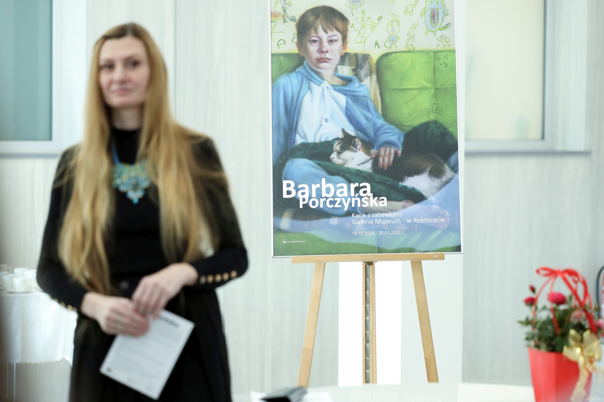 W dniu 20.01.2026 r. w Galerii Muzeum przy Rektoracie odbył się wernisaż wystawy dr Barbary Porczyńskiej pt. „Kącik z zabawkami”. Ekspozycja zaprezentowała najnowsze prace artystki, w których – charakterystycznie dla jej twórczości – osobiste doświadczenie kobiety, matki i artystki splata się z refleksją nad codziennością i procesem twórczym.