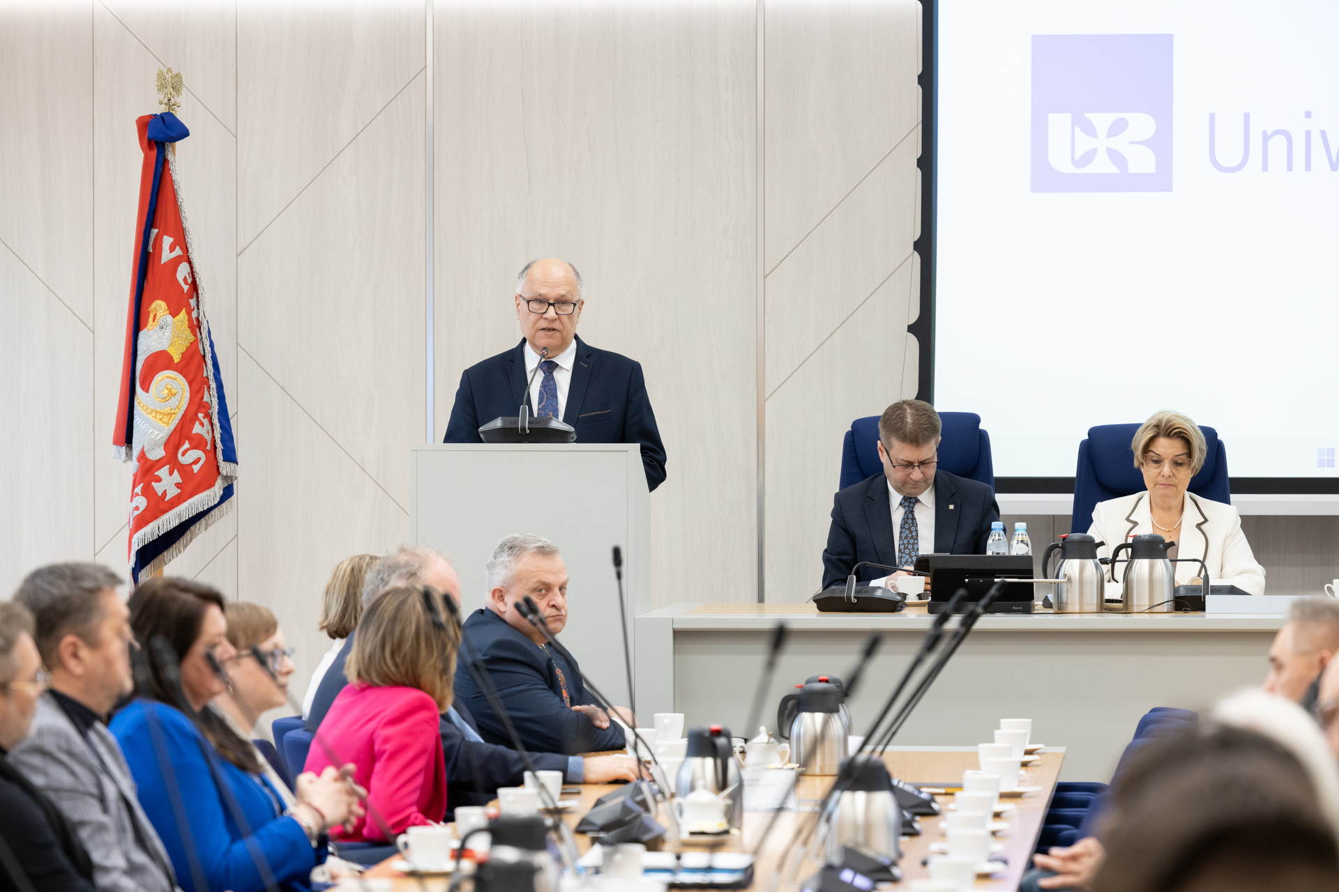 25 kwietnia br., na posiedzeniu Senatu Uniwersytetu Rzeszowskiego zostały uroczyście wręczone listy gratulacyjne i decyzje o przyznaniu stypendium Ministra Nauki 18 beneficjentom. Równie doniosłym momentem posiedzenia Senatu było przekazanie Medalu Wielkiego Uniwersytetu Rzeszowskiego Panu Władysławowi Ortylowi, Marszałkowi Województwa Podkarpackiego.